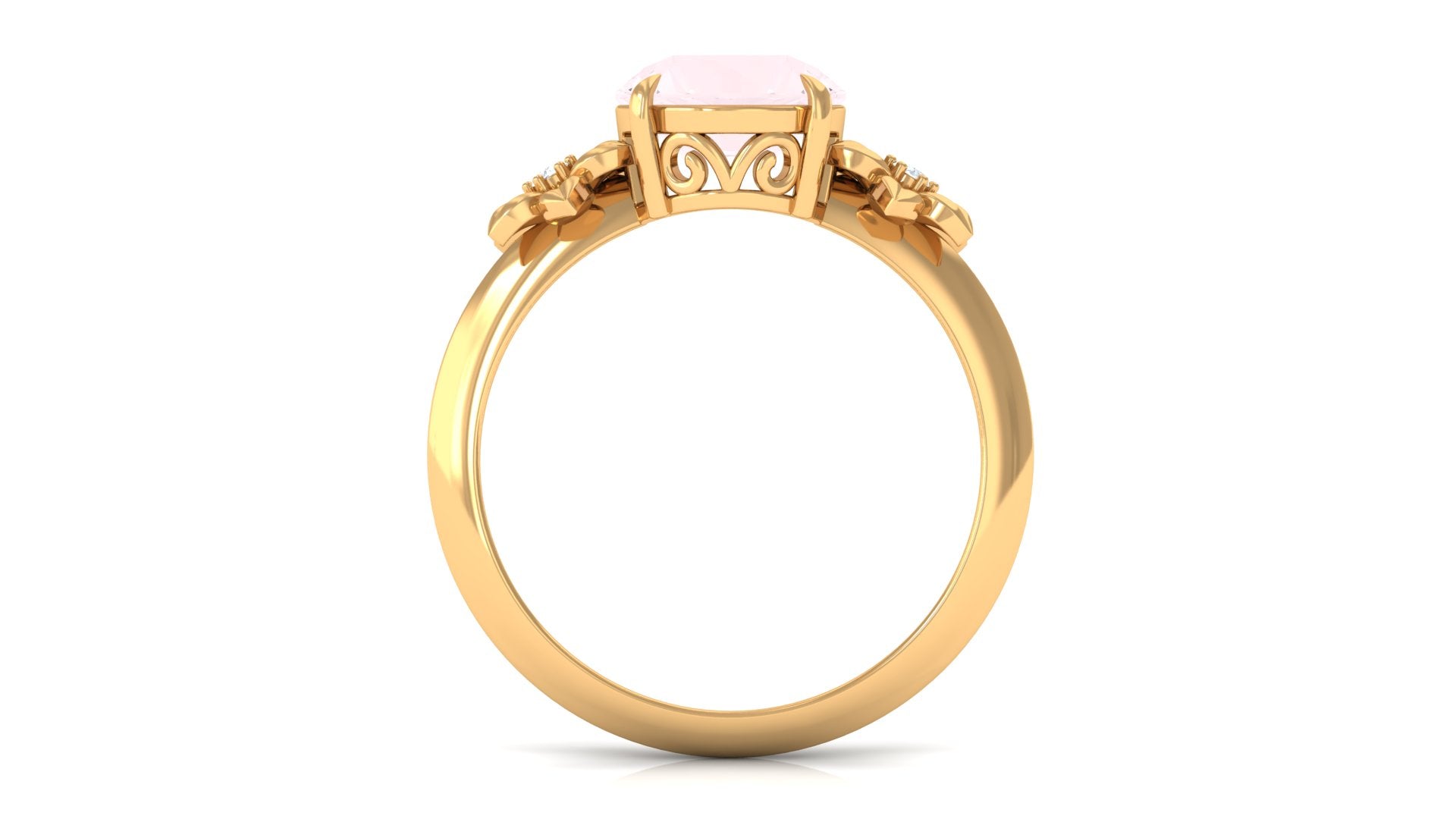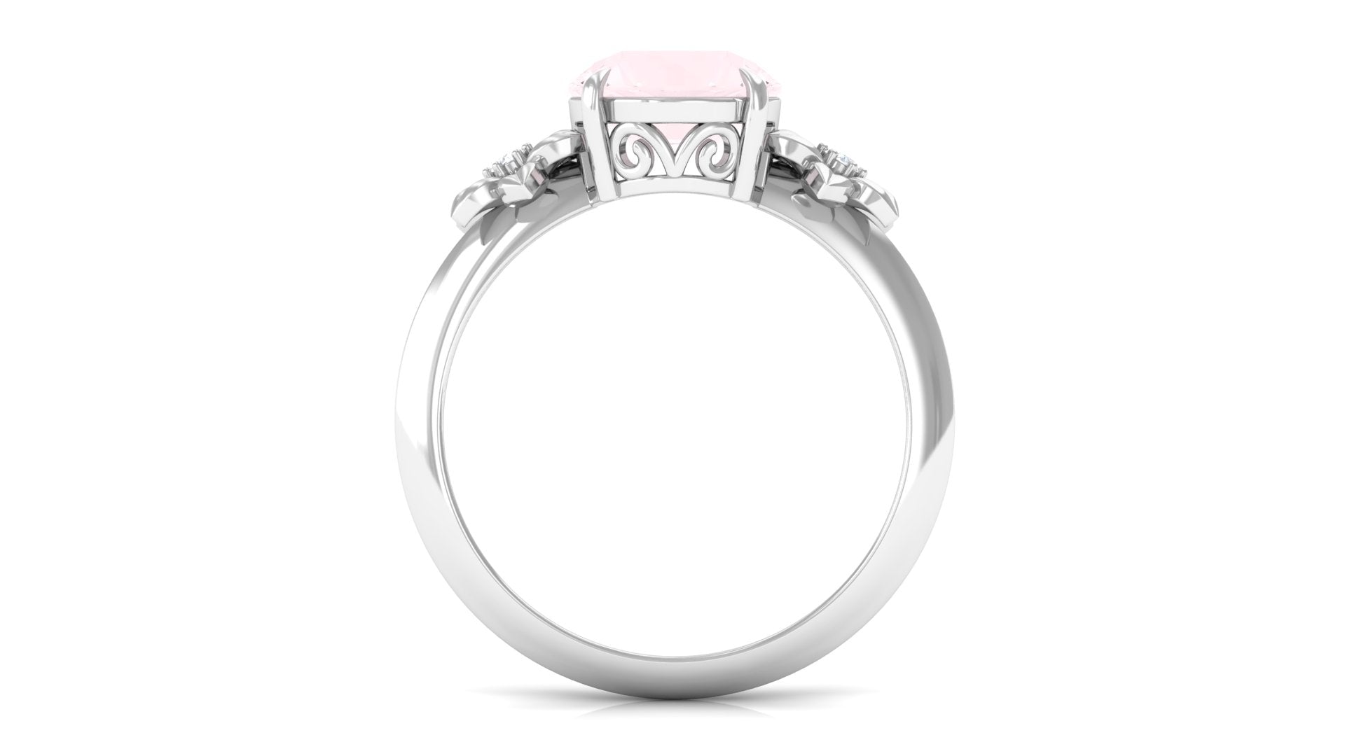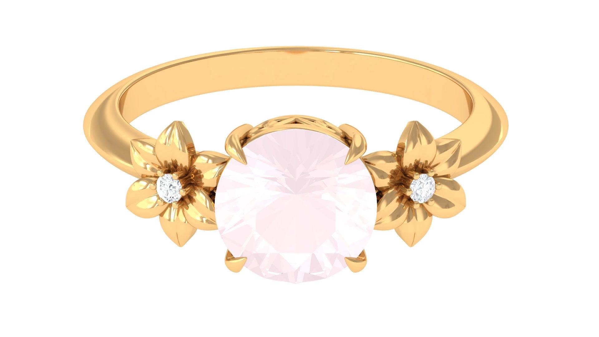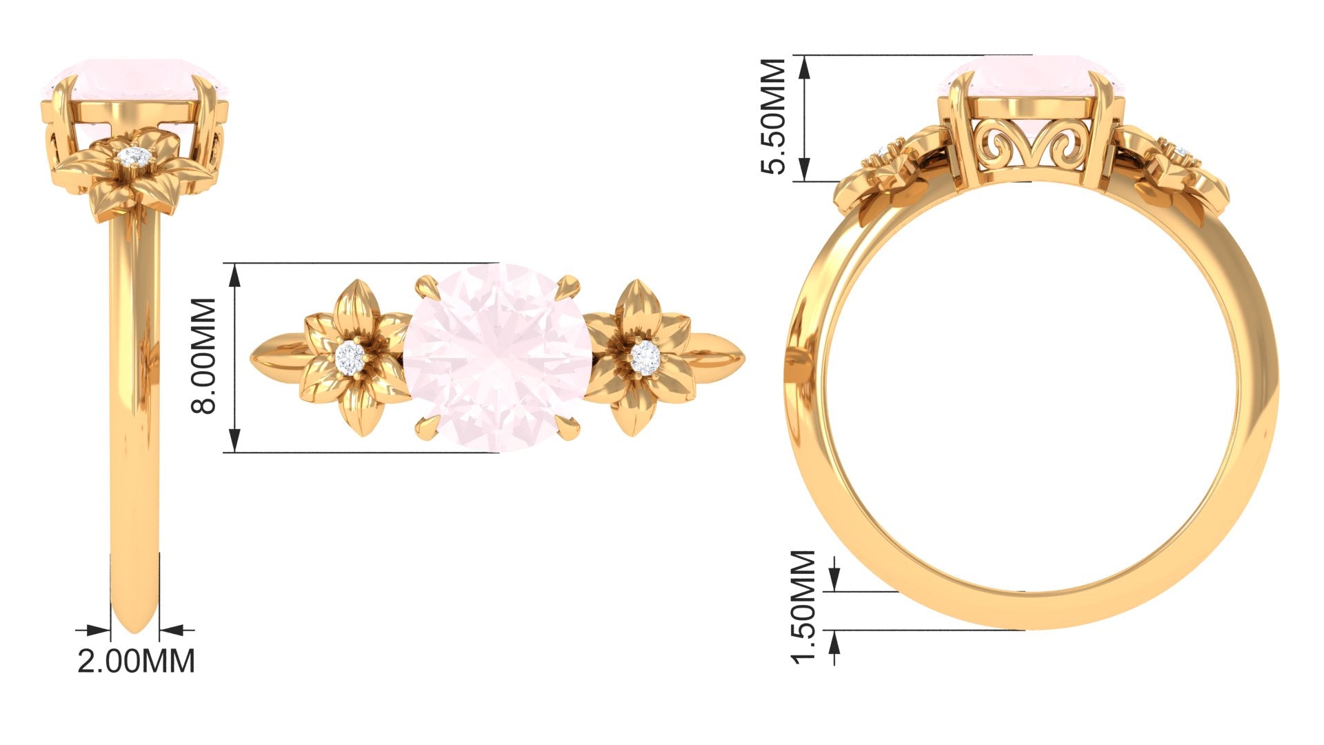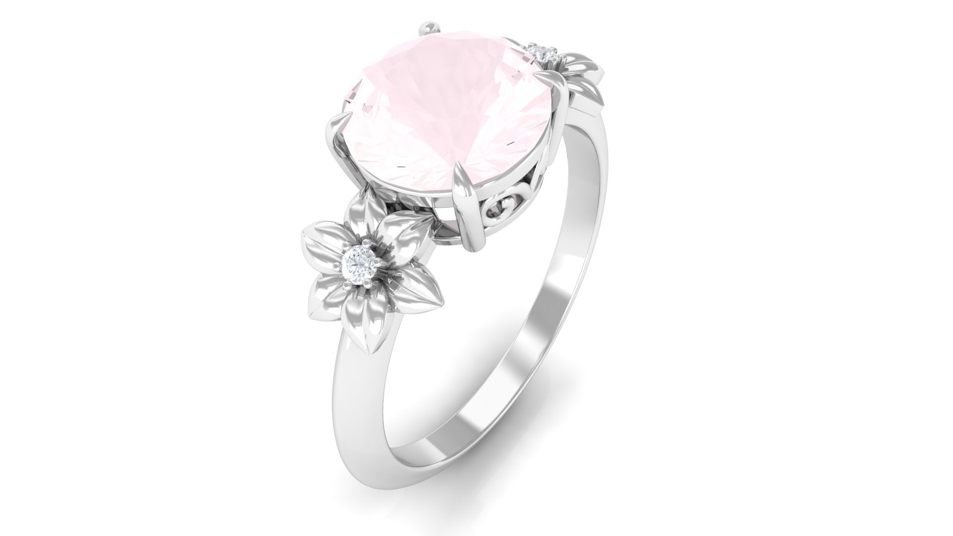 2 CT Round Rose Quartz Solitaire Flower Engagement Ring with Diamond