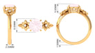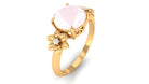 This elegant engagement ring features a round rose quartz center stone in claw setting, with sparkling Diamond gemstone in a delicate gold flower shape on either side. The rose quartz fairy pink color adds a touch of elegance, while the Diamond adds a brilliant touch of sophistication. The flower shape gives the ring a feminine and romantic feel, making it a perfect choice for nature-loving couples. With its expert craftsmanship and attention to detail, this rose quartz and Diamond ring is sure to be a cherished symbol of love and commitment for years to come.