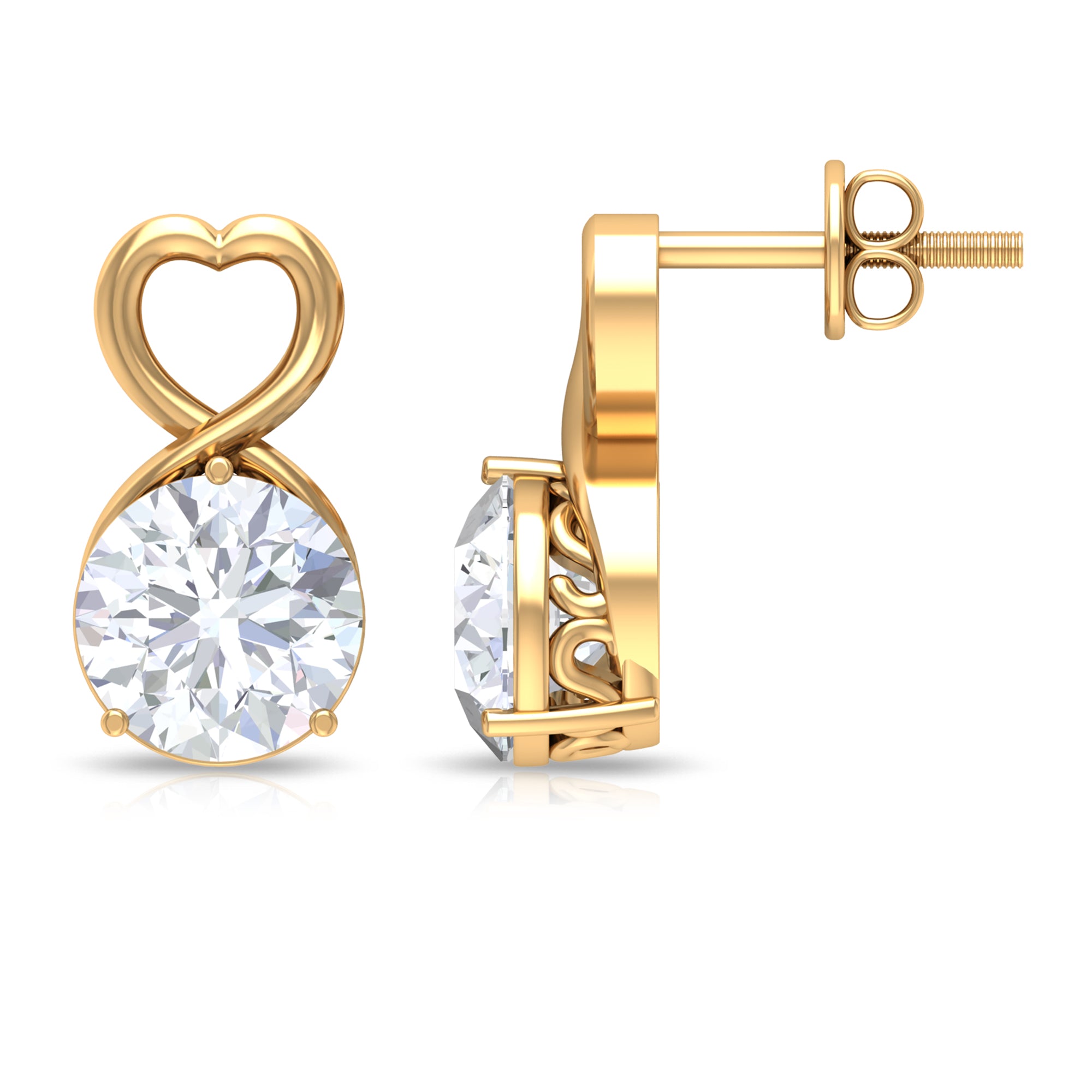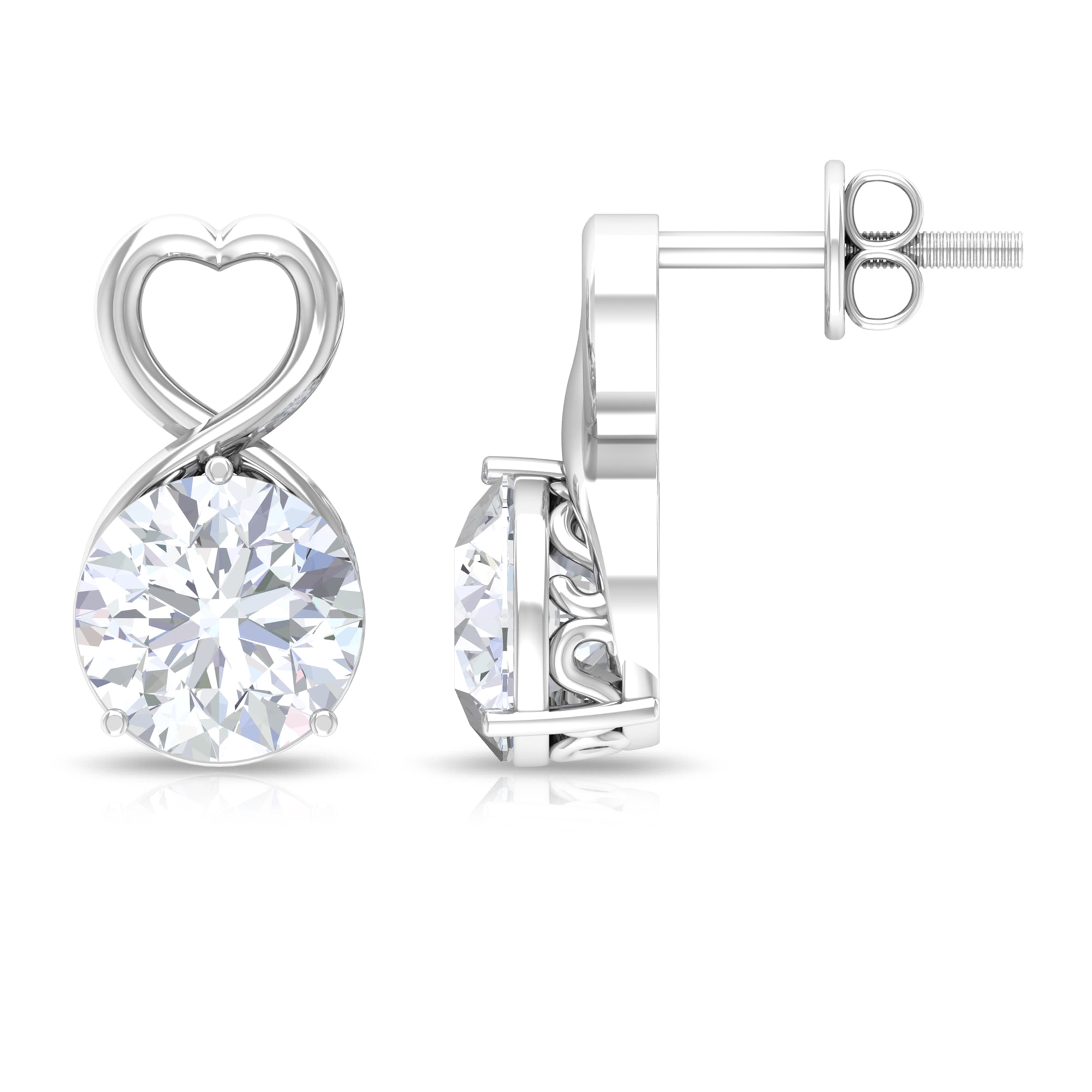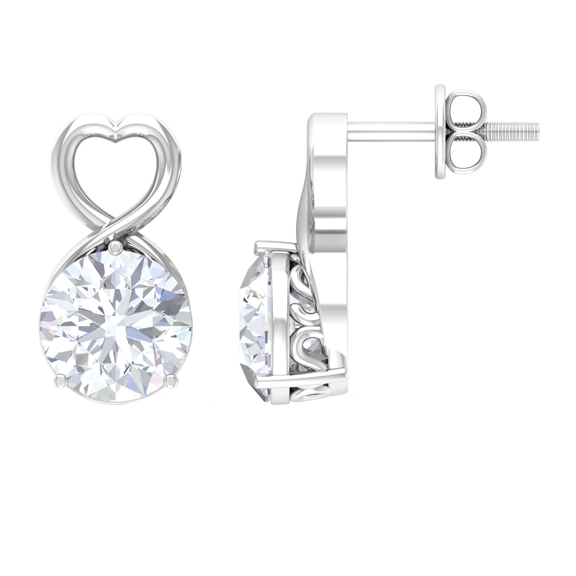 2 CT Round Shape Solitaire Moissanite Heart Stud Earrings