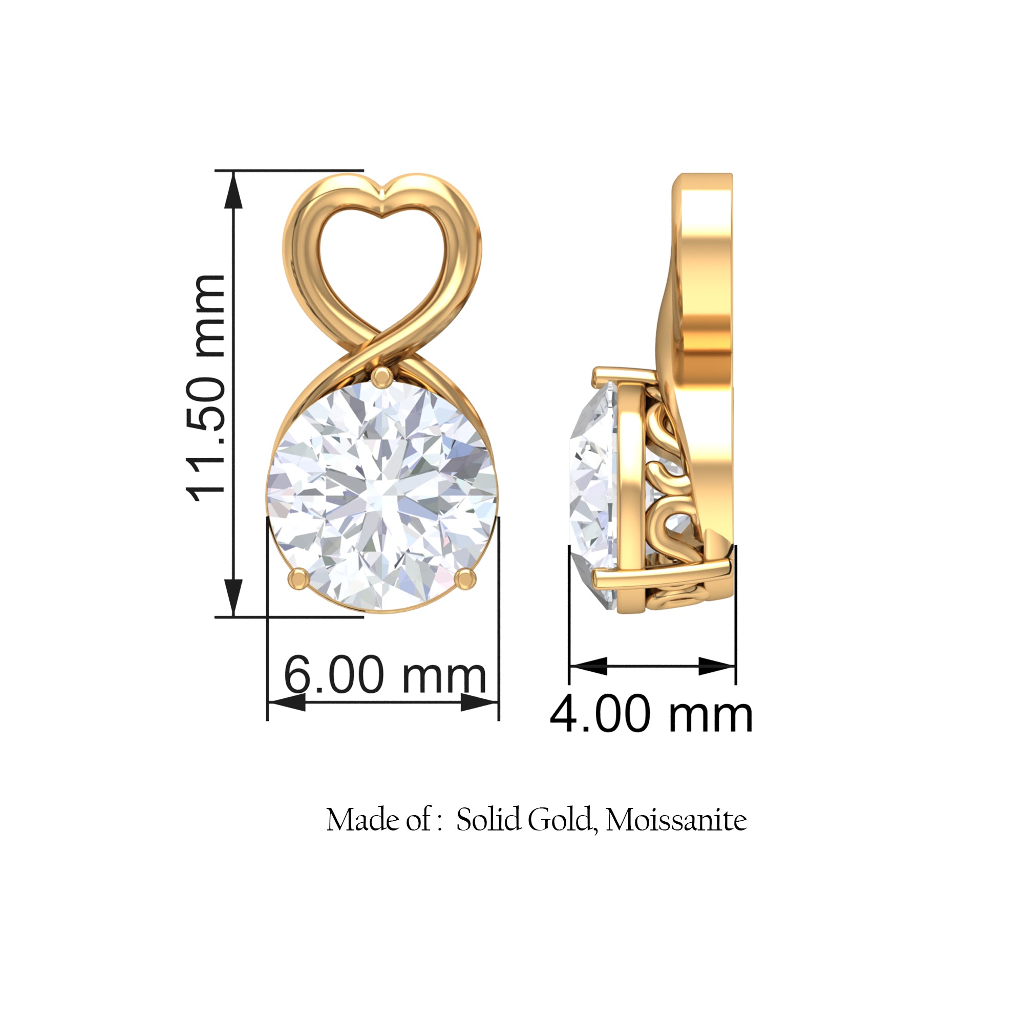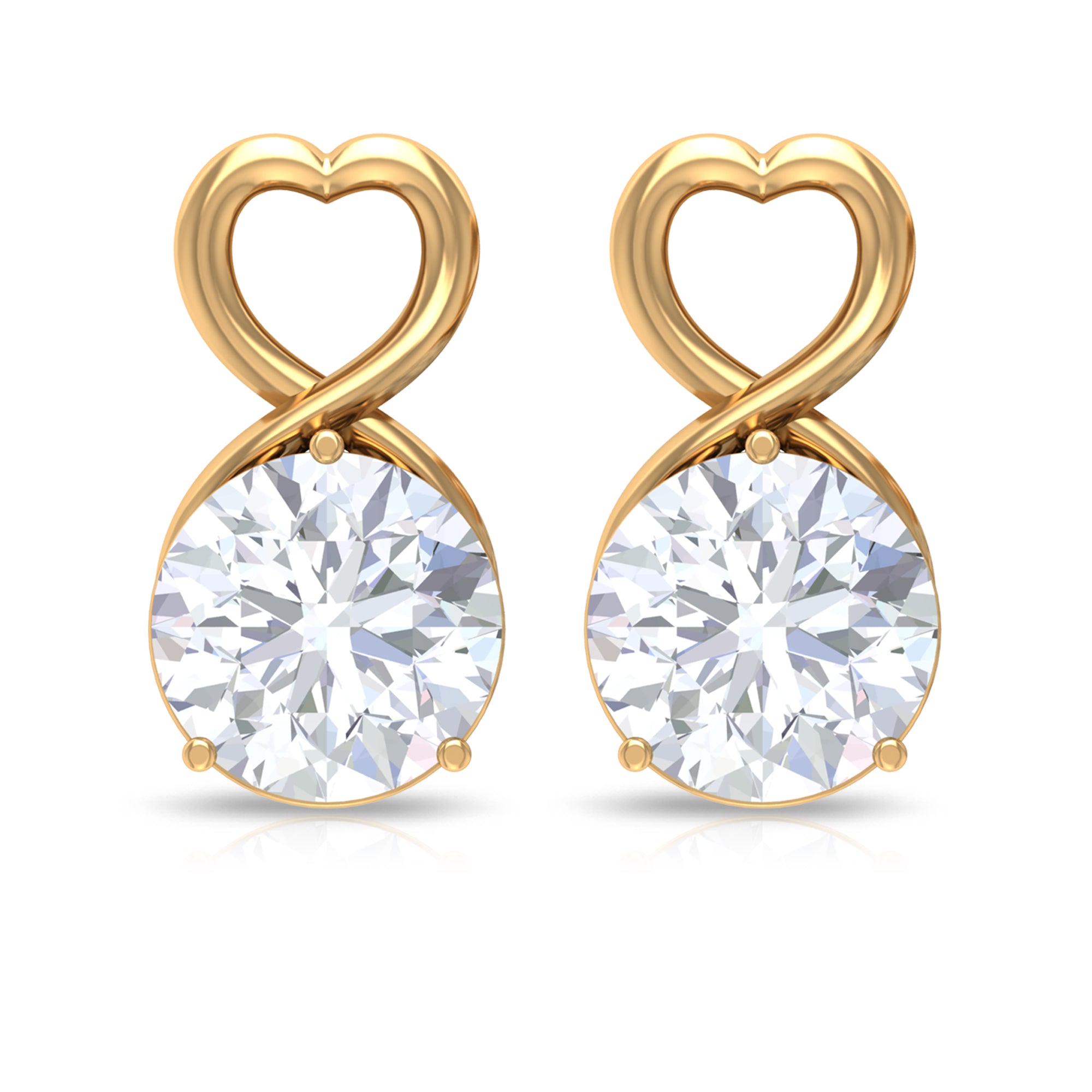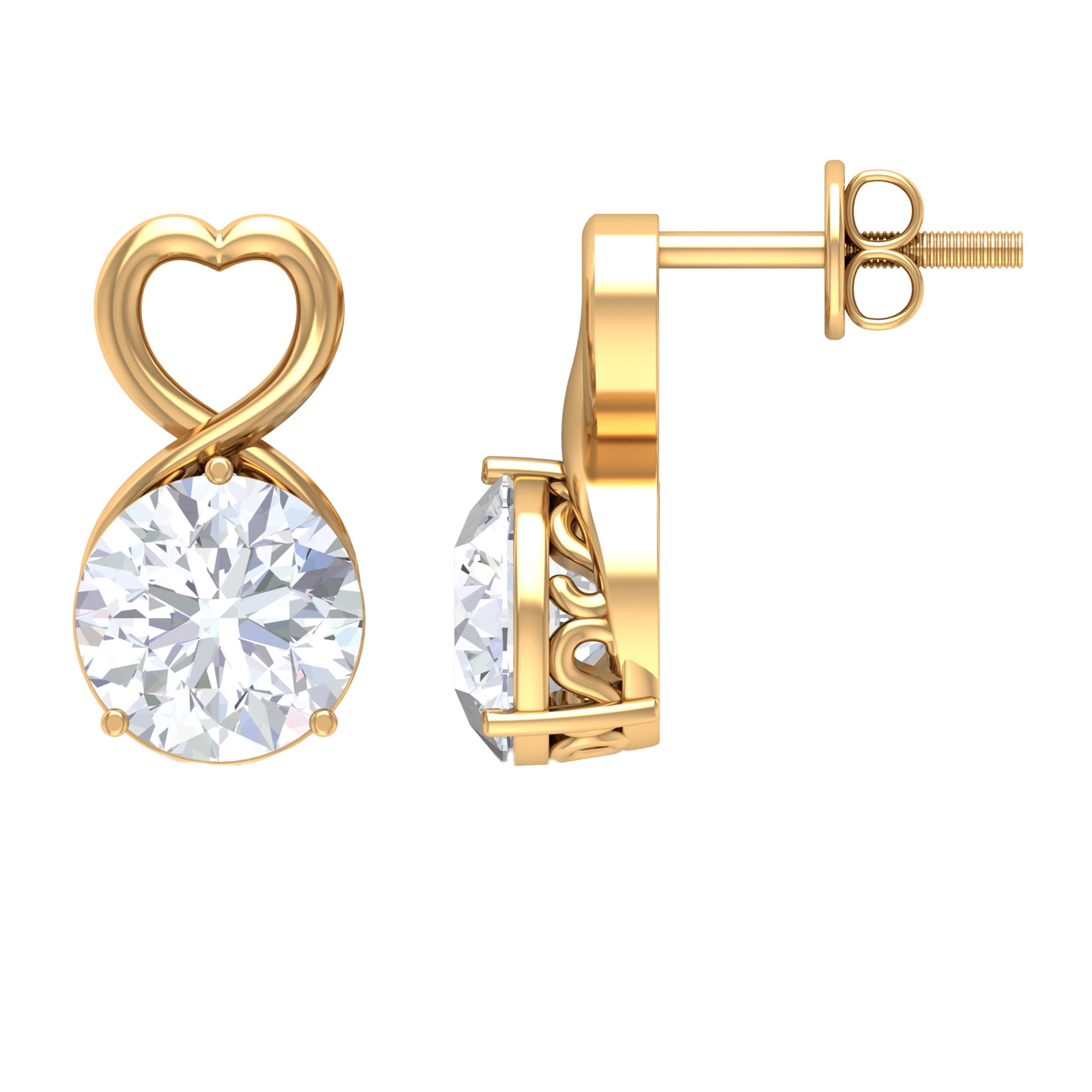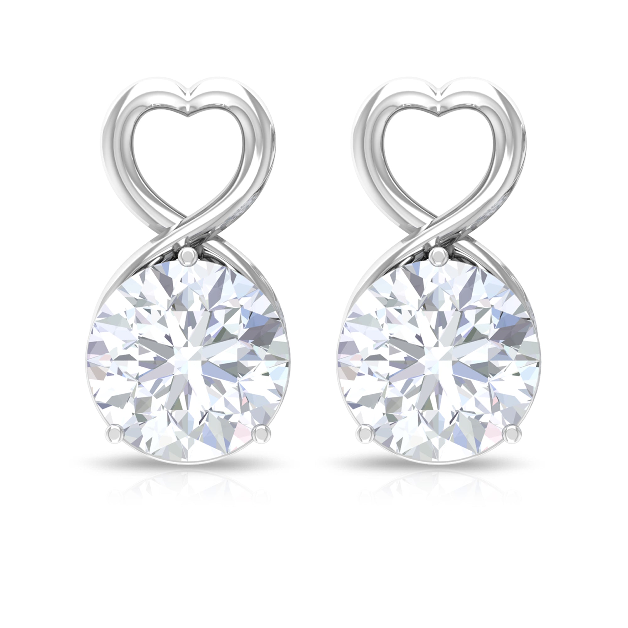 2 CT Round Shape Solitaire Moissanite Heart Stud Earrings