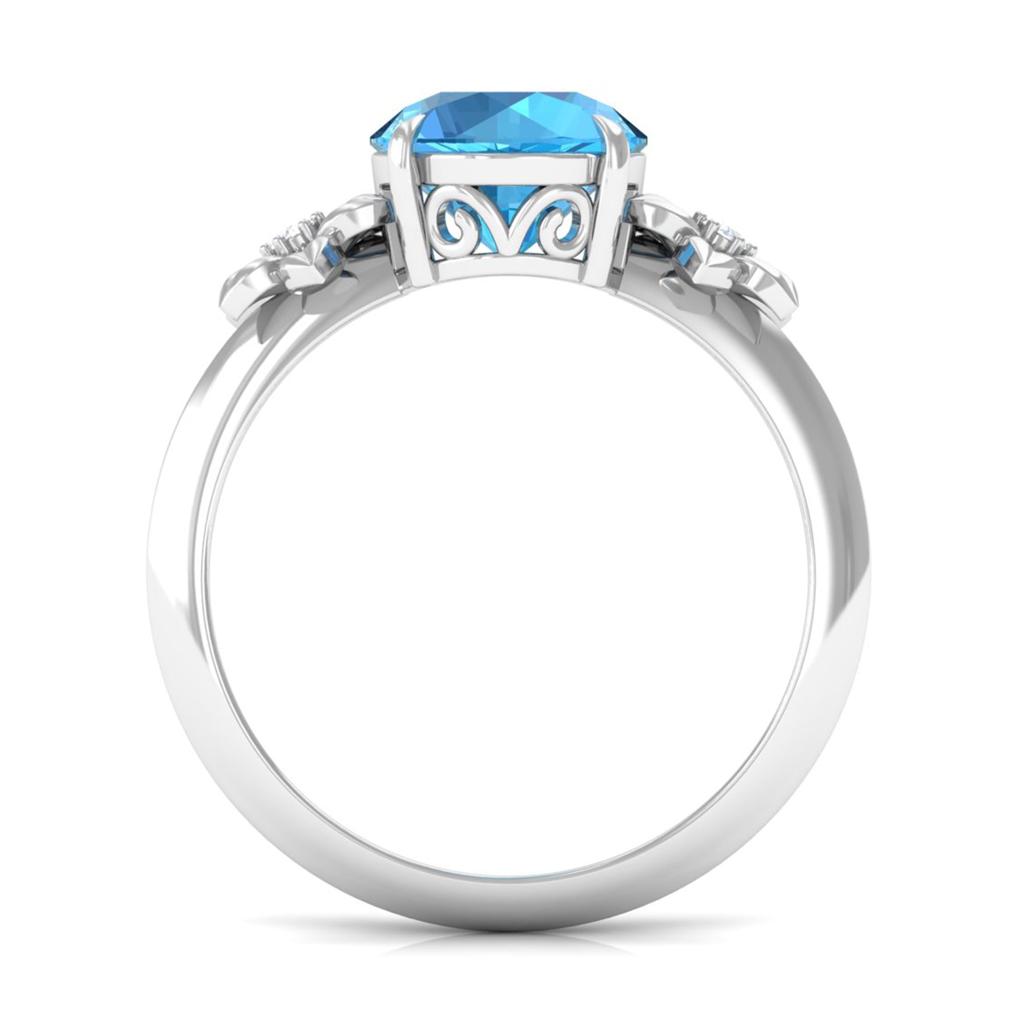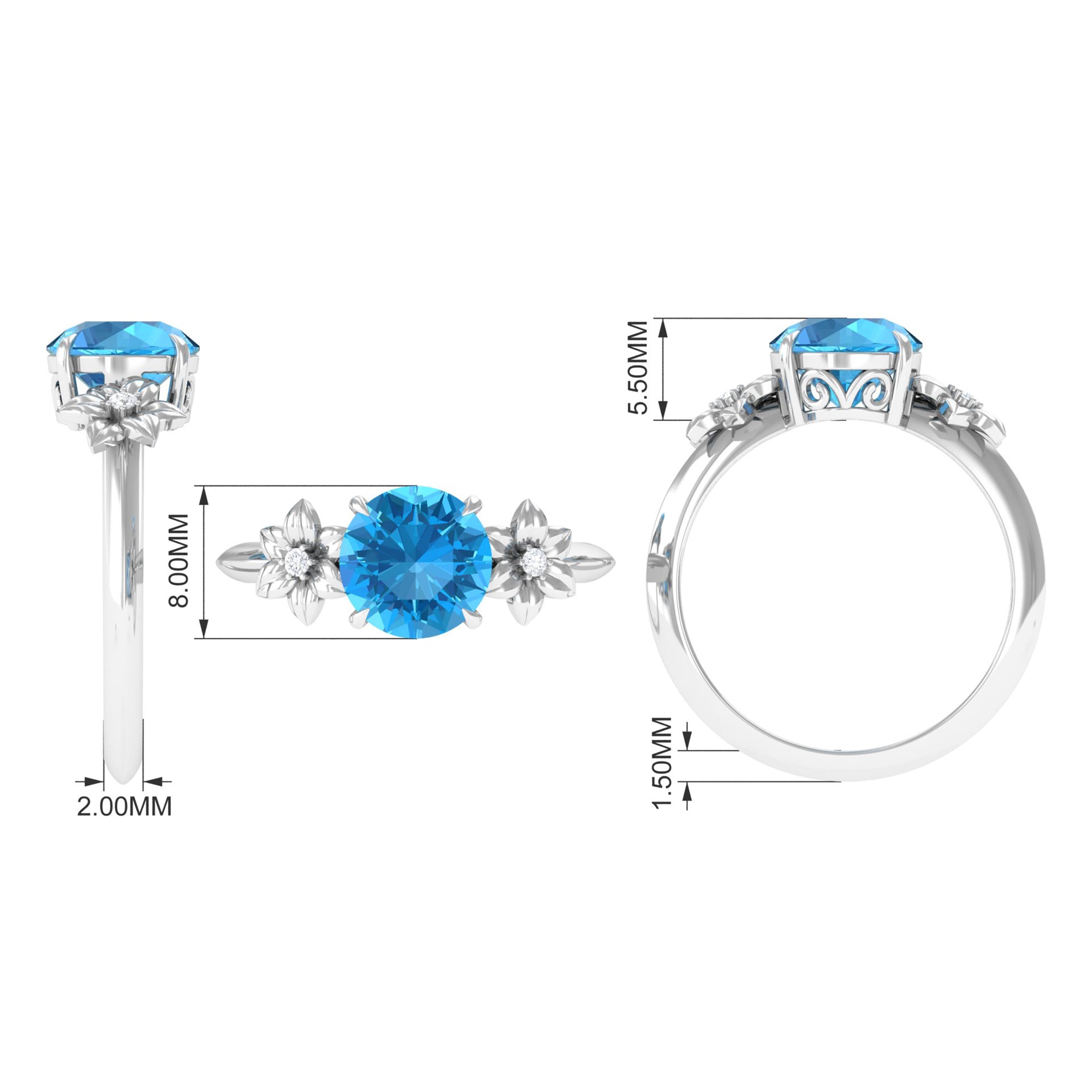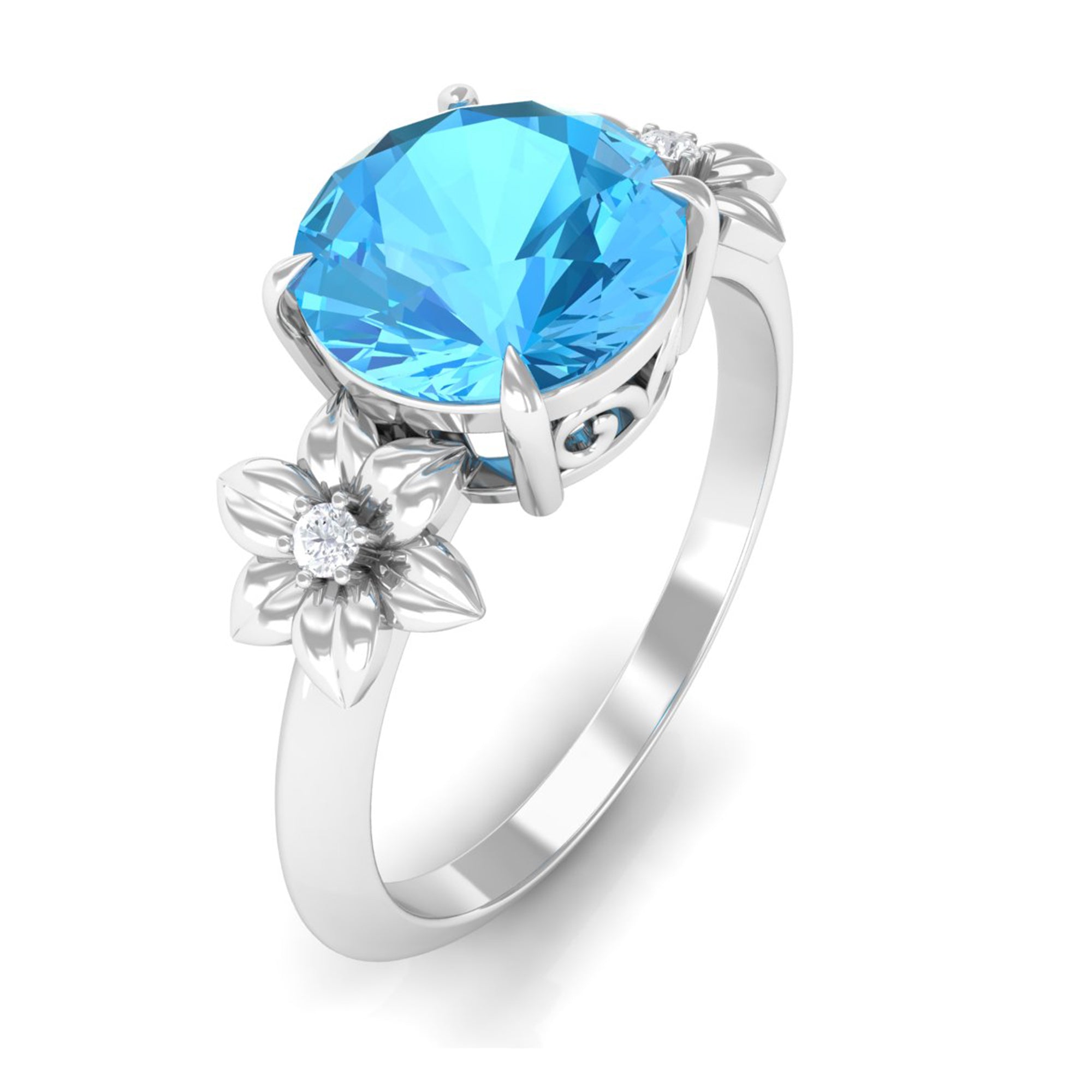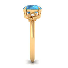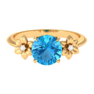 2 CT Round Swiss Blue Topaz Solitaire Flower Engagement Ring with Diamond