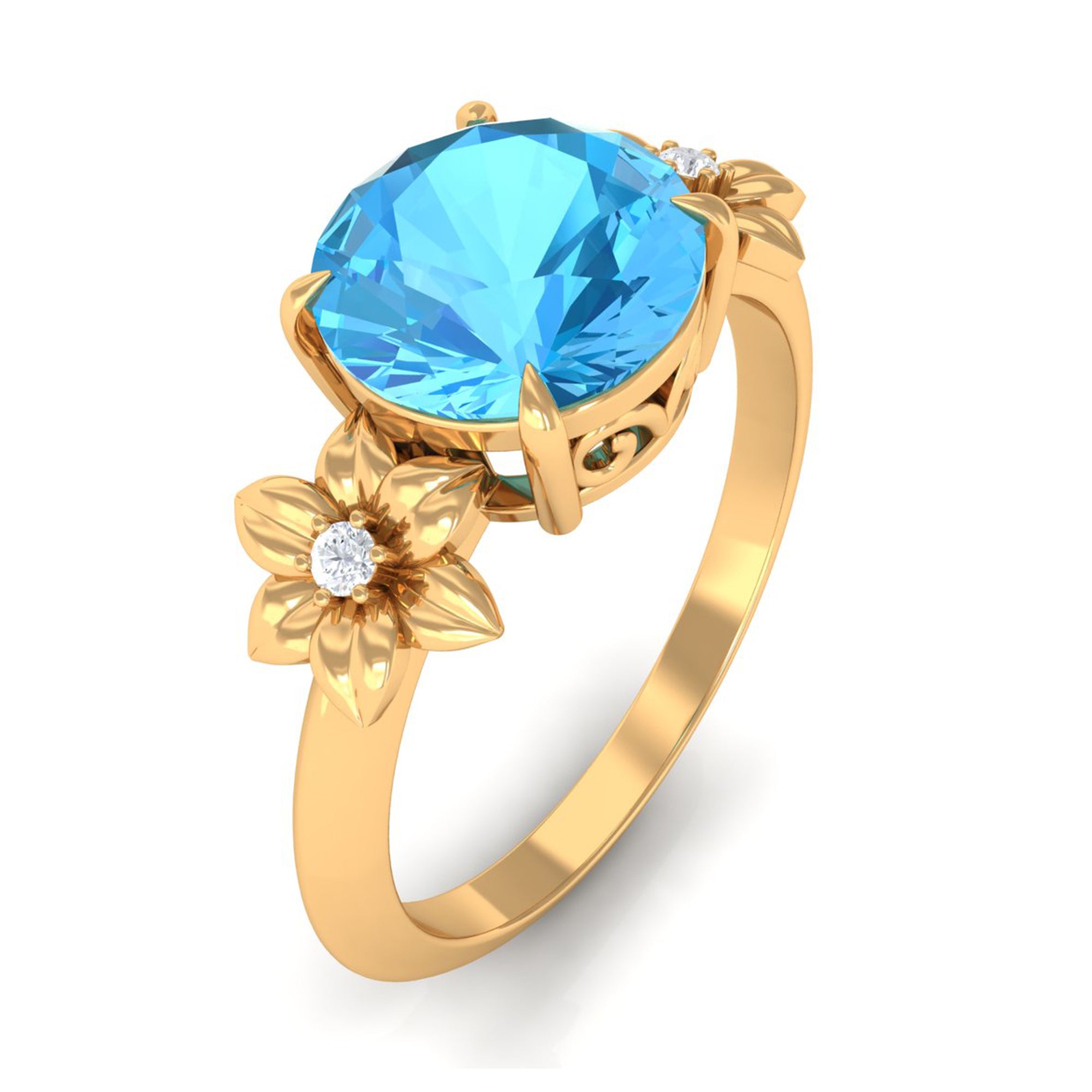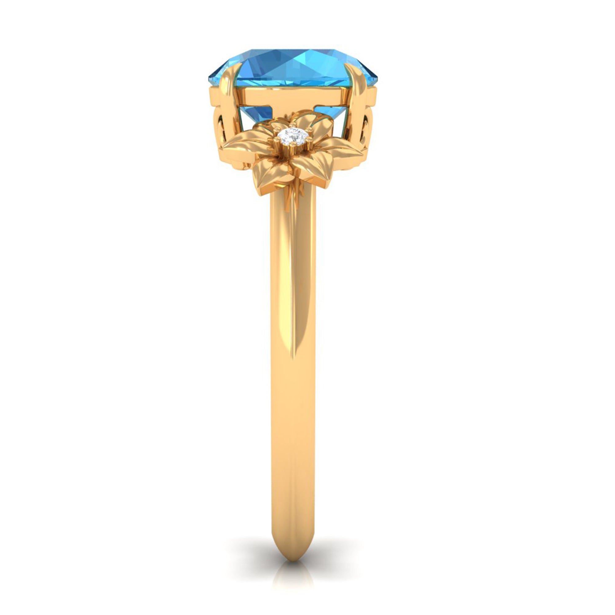 Give her a memorable gift with this Solitaire Ring featuring a round-cut Swiss Blue Topaz solitaire accented with Diamond stones in a flower design set in a Claw Setting. Crafted from high-quality metal, this beautiful ring is sure to make her smile.