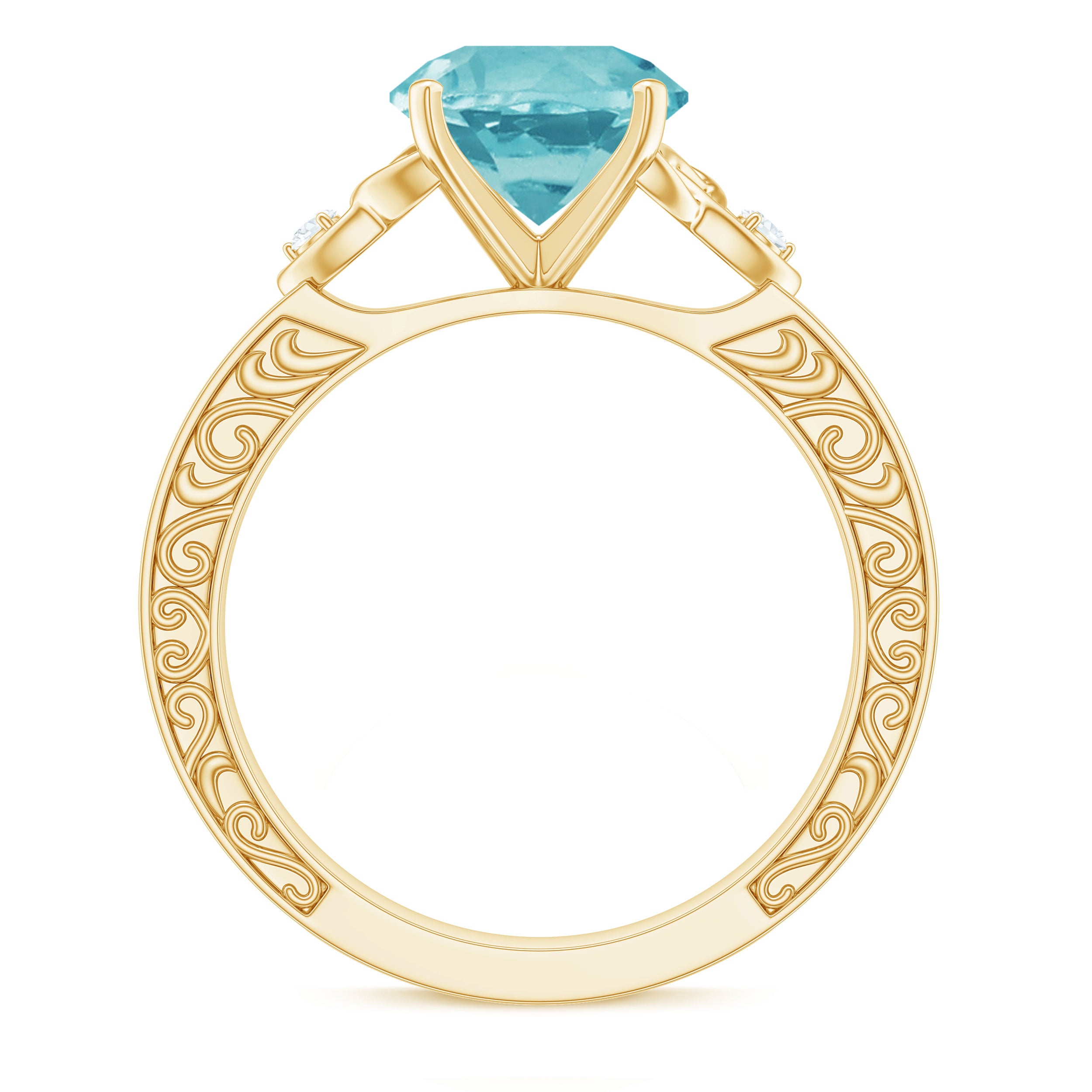 This stunning Sky Blue Topaz Engagement Ring features a gorgeous Round Shape sky blue topaz in the center with sparkling Diamond on both sides. The band is crafted from gold and is adorned with beautiful Celtic Knot detailing for added elegance. Perfect for the love of your life, this ring symbolizes your love and commitment for a lifetime.