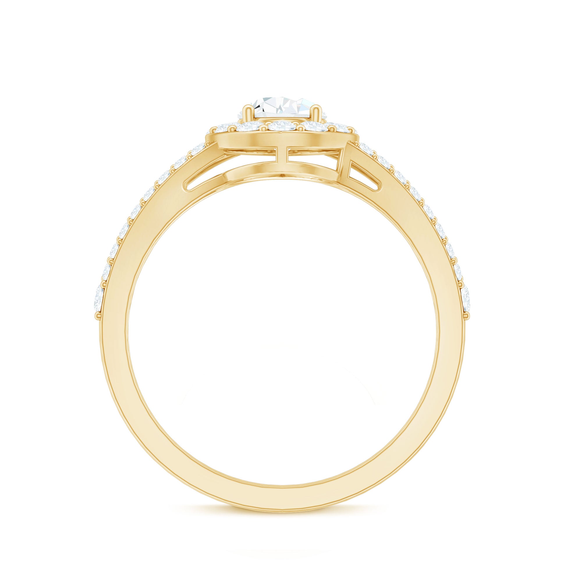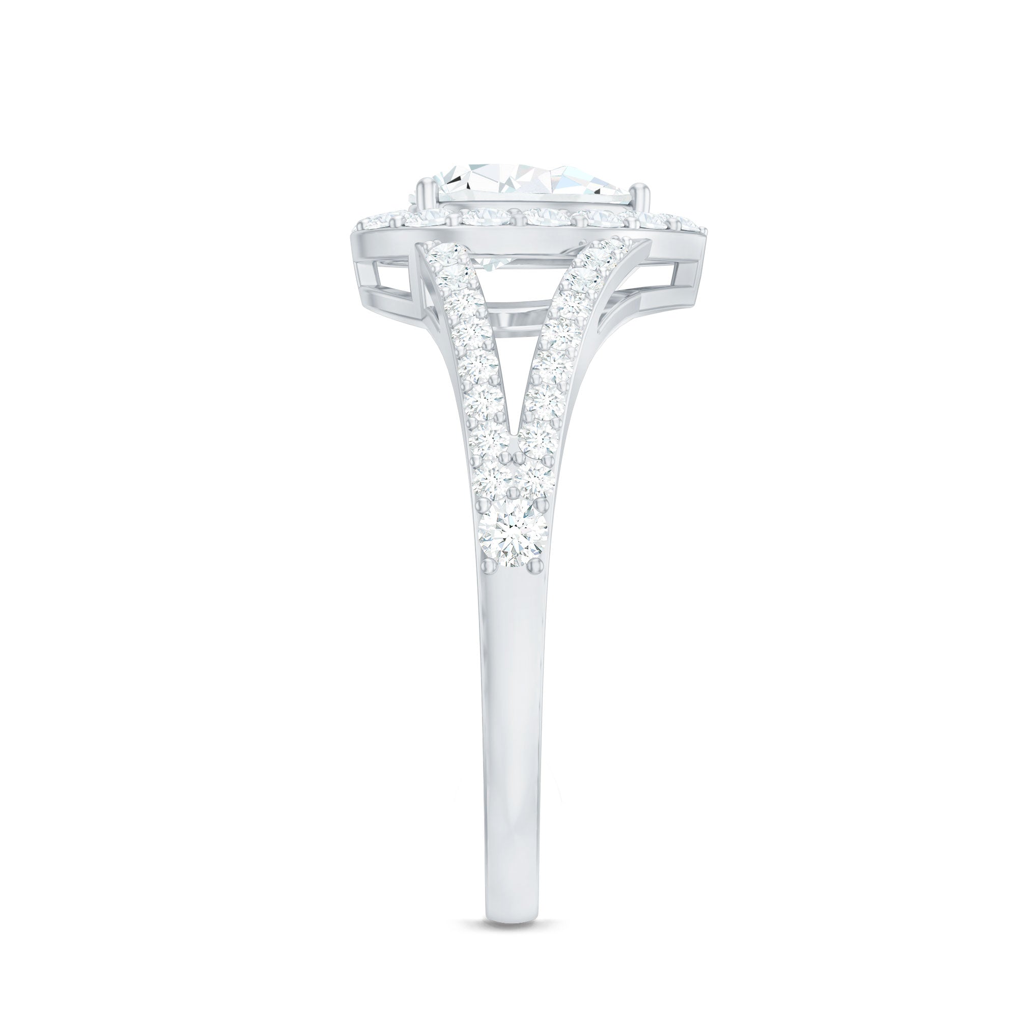 Add enduring meaning for your partner to be for many years to come by presenting this Zircon Engagement Ring. The radiance of Pear Cut zircon is enough to accentuate your look, it has Round Cut zircon forming halo and side stones on split shank elegantly to add more charm to the ring. Give a captivating appeal to your partners look with this sparkling Zircon Teardrop Ring.