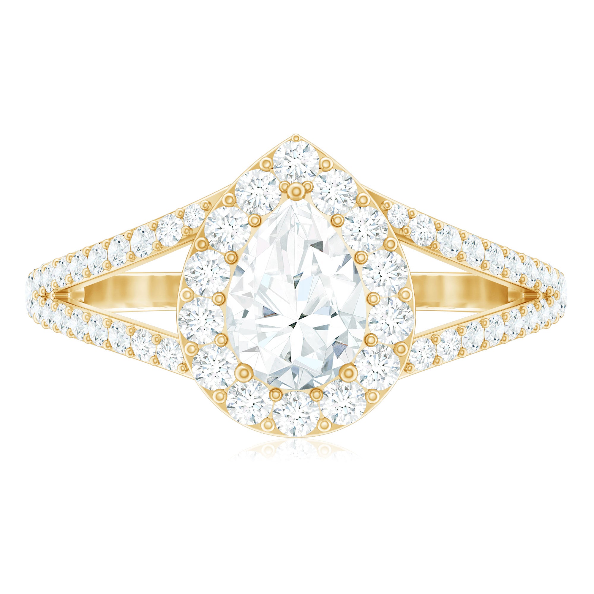 2 CT Split Shank Zircon Teardrop Engagement Ring in Gold