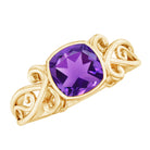 2 CT Vintage Inspired Cushion Cut Amethyst Solitaire Ring