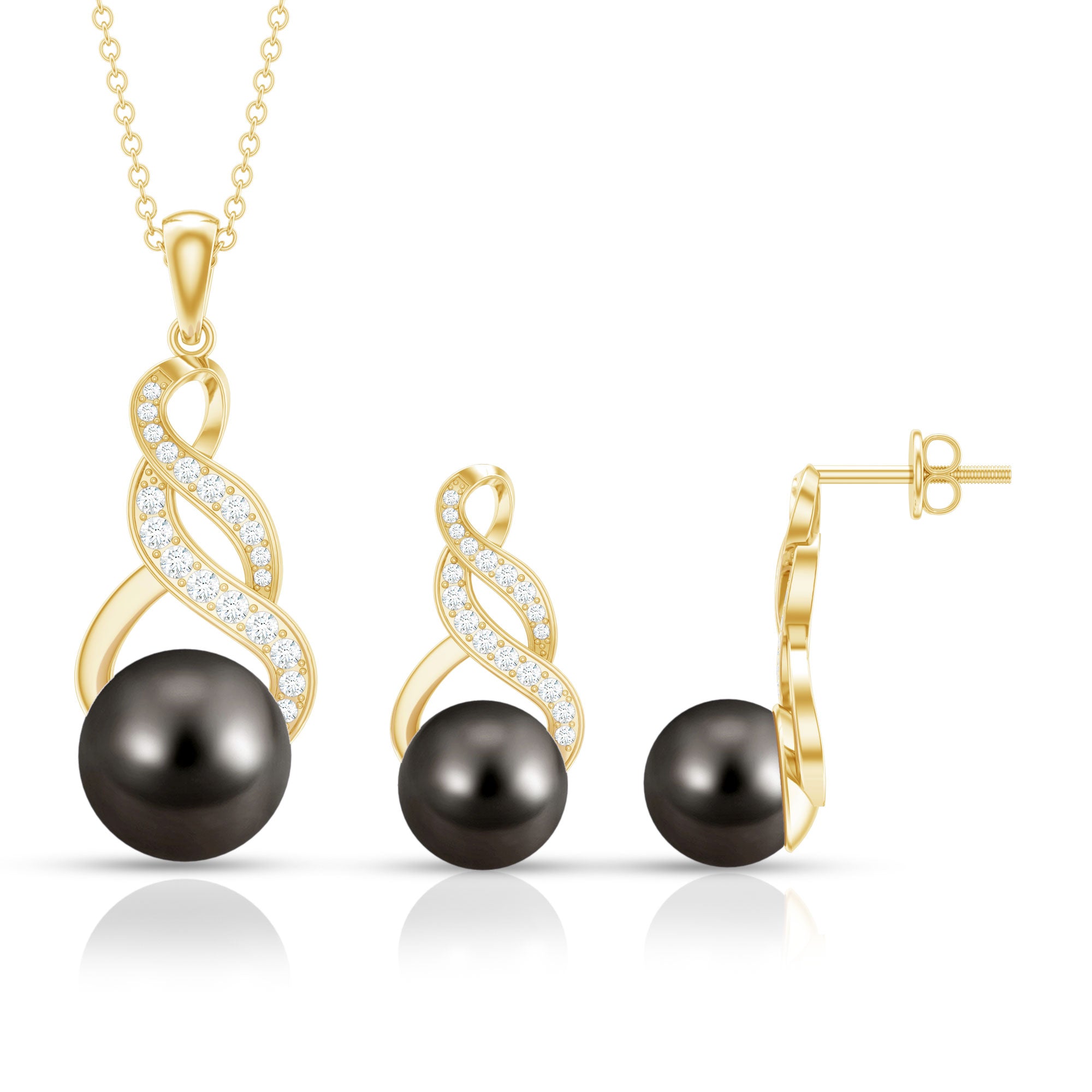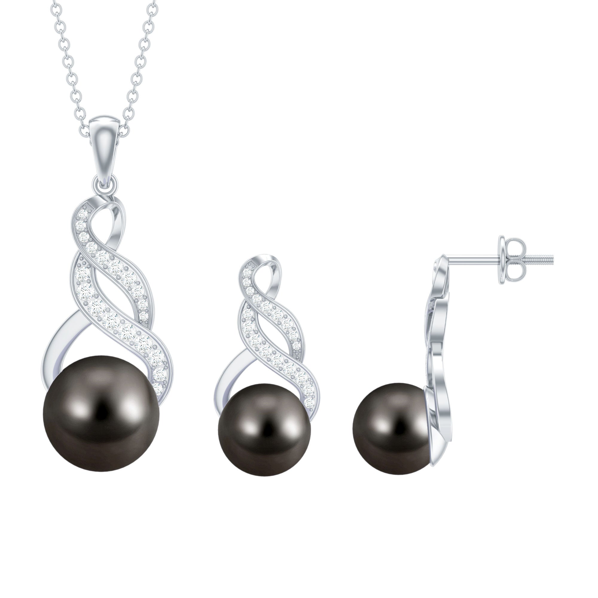 24.25 CT Natural Tahitian Pearl Bridal Infinity Drop Jewelry Set with Moissanite