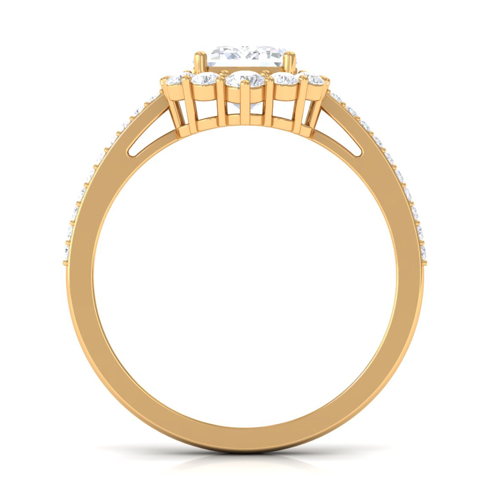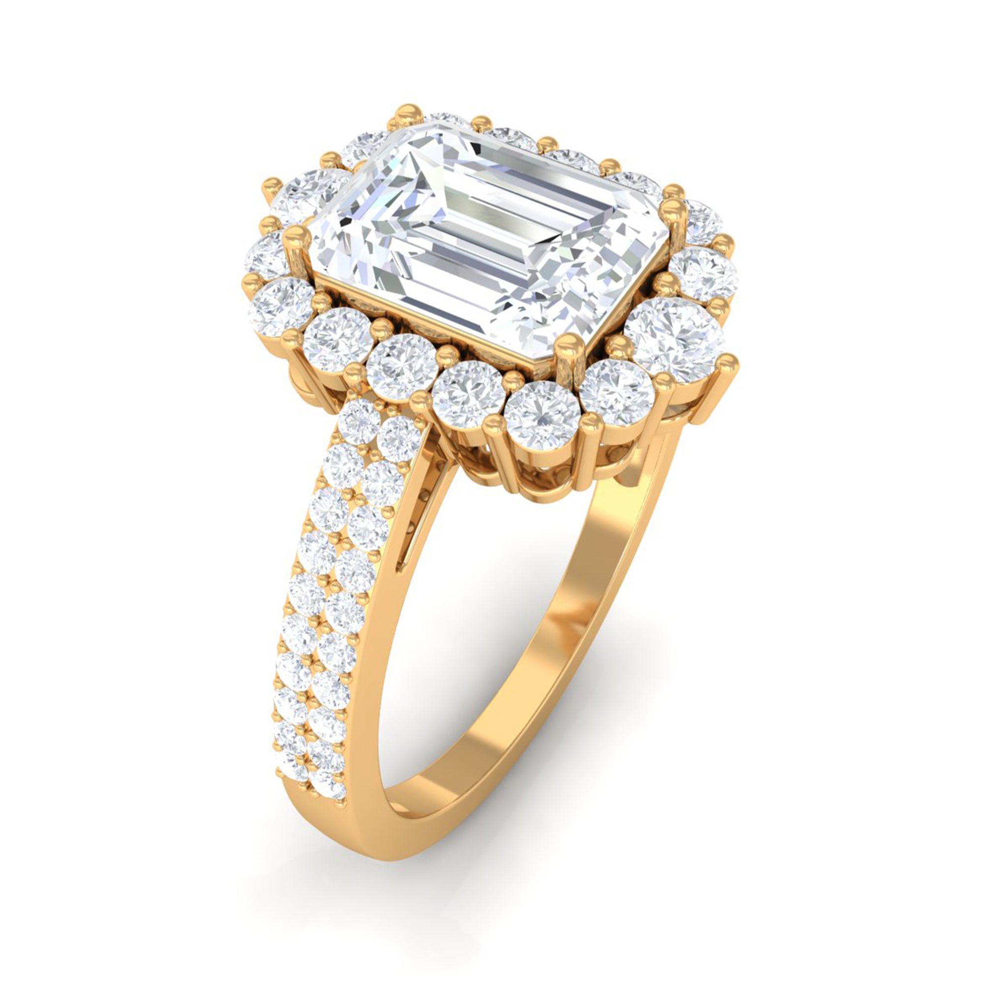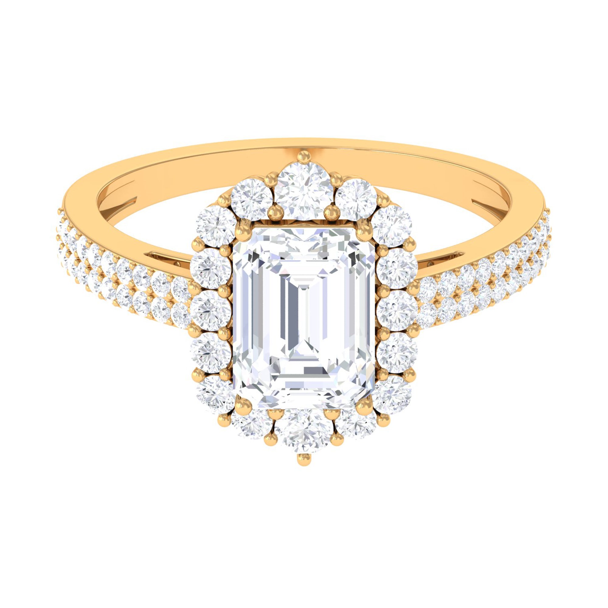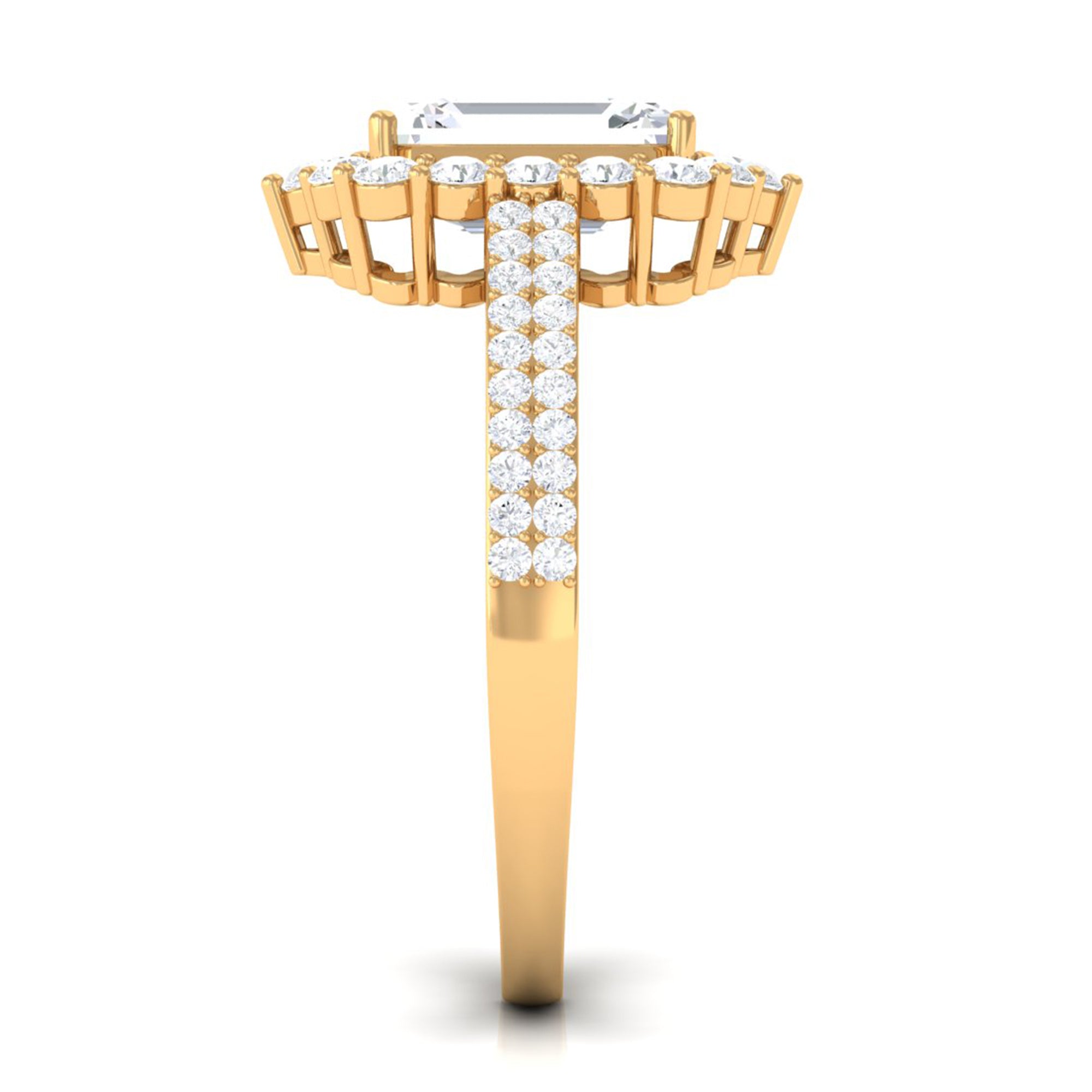 Big ring for your big days, adorn your hand with this beautiful Cubic Zirconia Engagement Ring. Embellished with Octagon Cut Zircon in Prong Setting with Round Zircon Halo and Side Stones to make this ring a piece of alluring fine jewelry. This Statement Engagement Ring is composed in Gold.