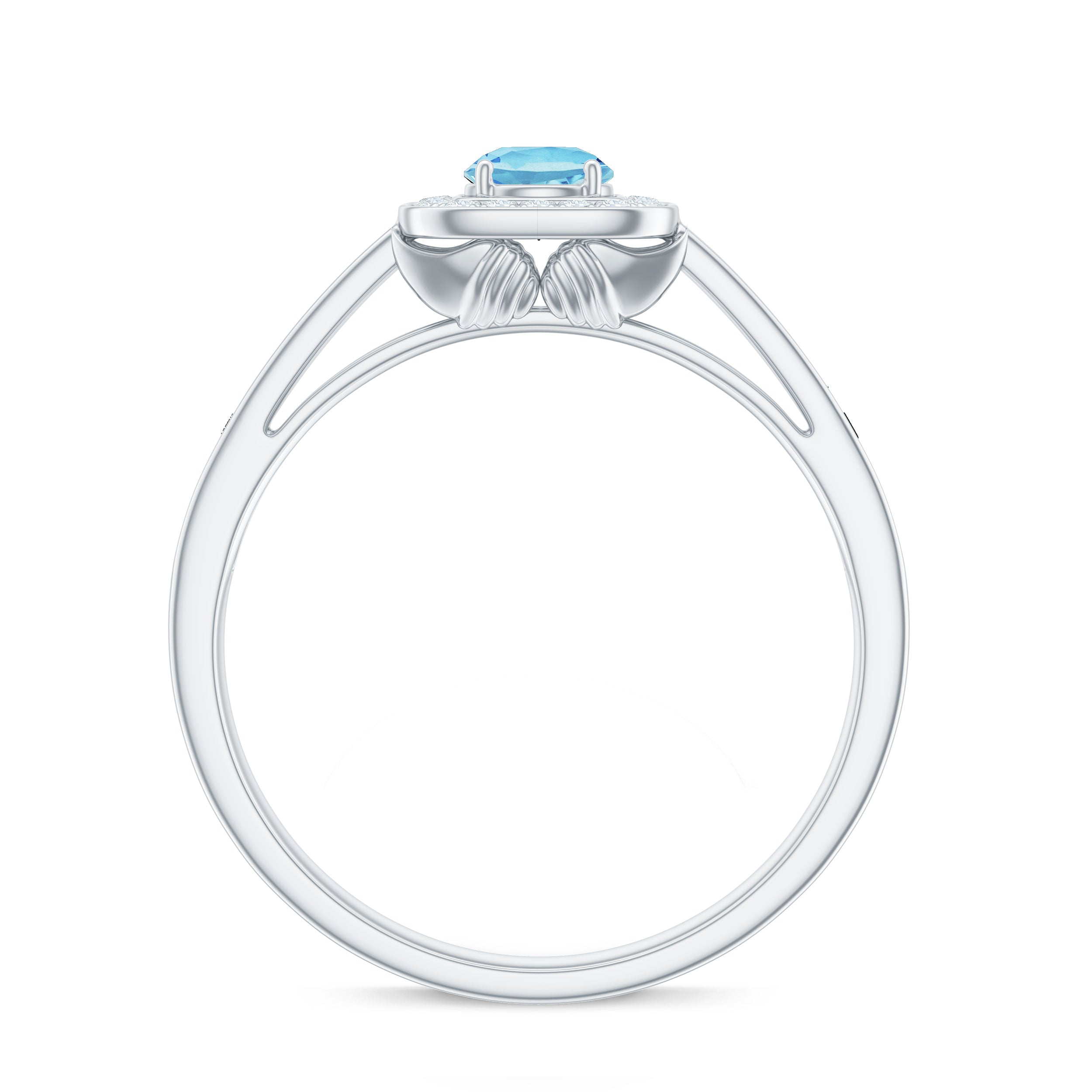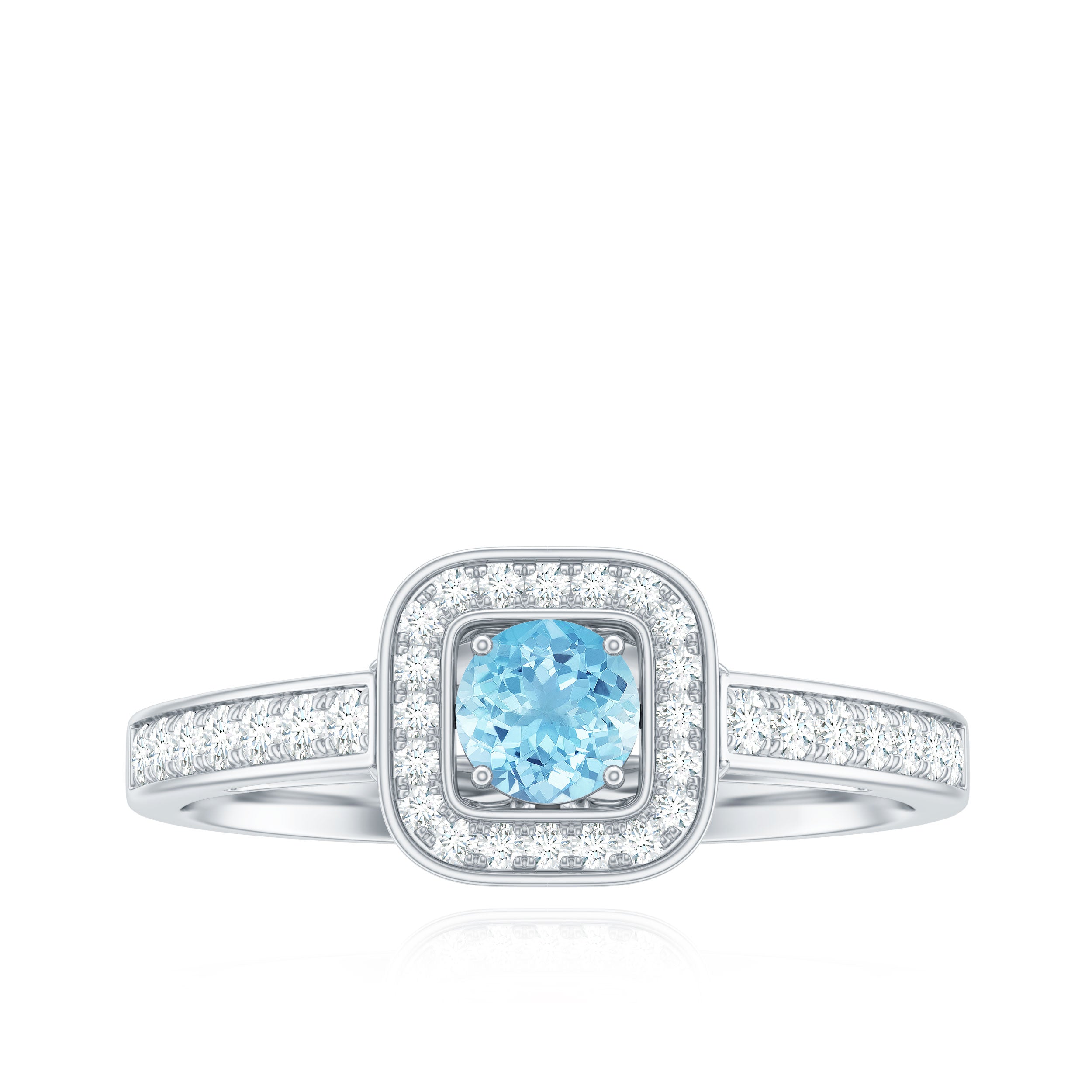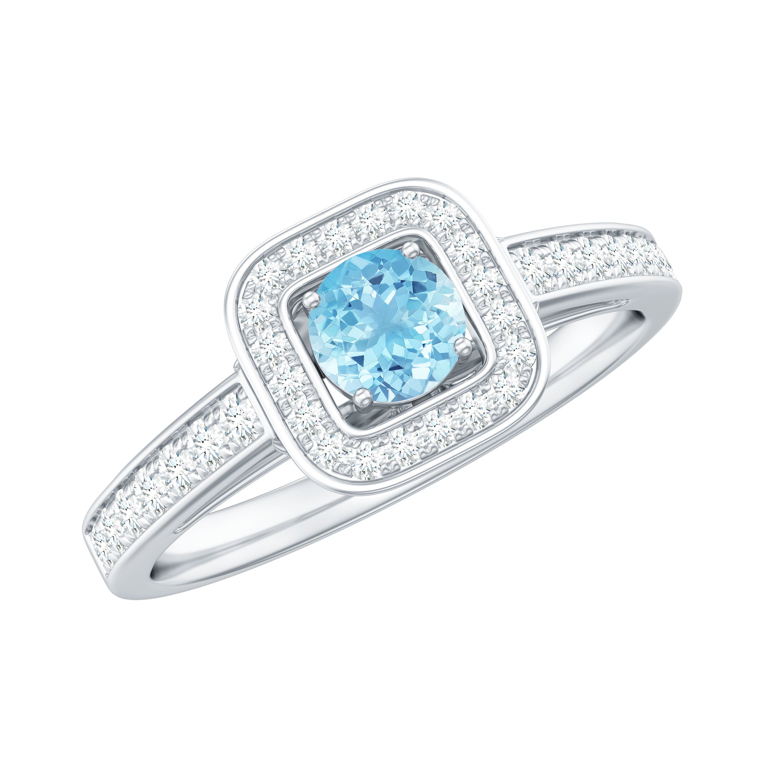 3/4 Carat Round Aquamarine and Diamond Halo Promise Ring