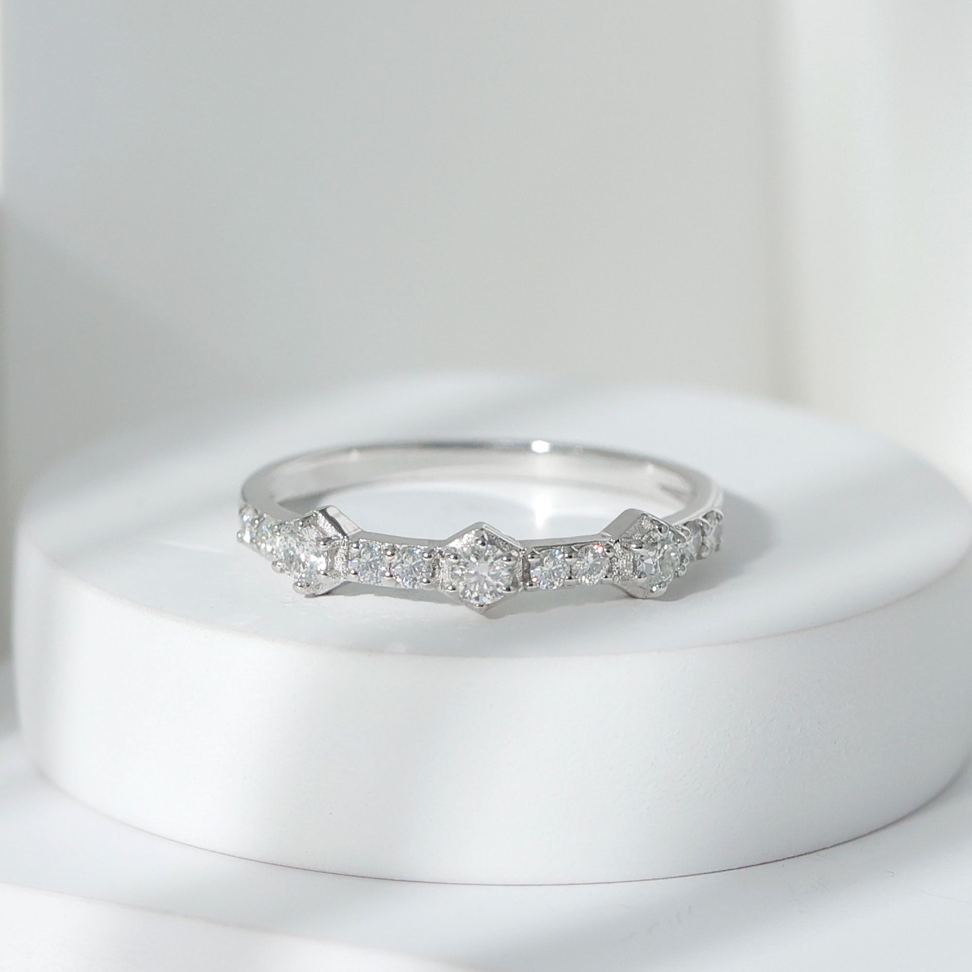 This Half Eternity Band Ring is a great choice for her to enhance your love. Featuring Round Shape Moissanite set in a prong setting, this Semi Eternity Ring is suitable for any occasion. Made of Gold Metal, this Moissanite Half Eternity Ring offers a luxurious appearance. The Moissanite Ring for Women will provide an elegant finishing touch to any outfit.