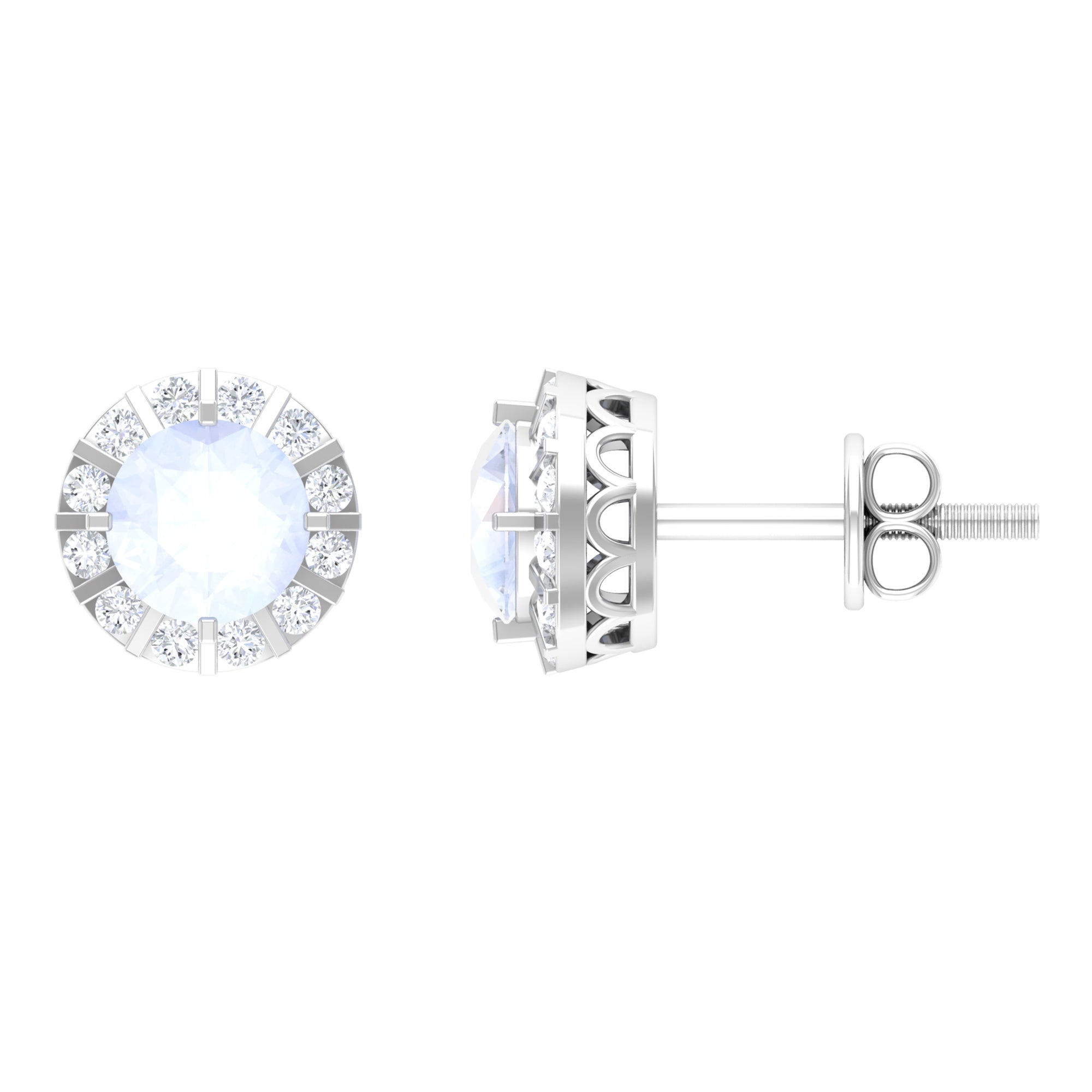Look Different in these Antique Earrings with a Round Shape Moonstone as Solitaire and round shape Diamond forming unique and Antique stud earrings will add charm to your look.