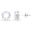 3/4 CT Antique Moonstone and Diamond Stud Earrings