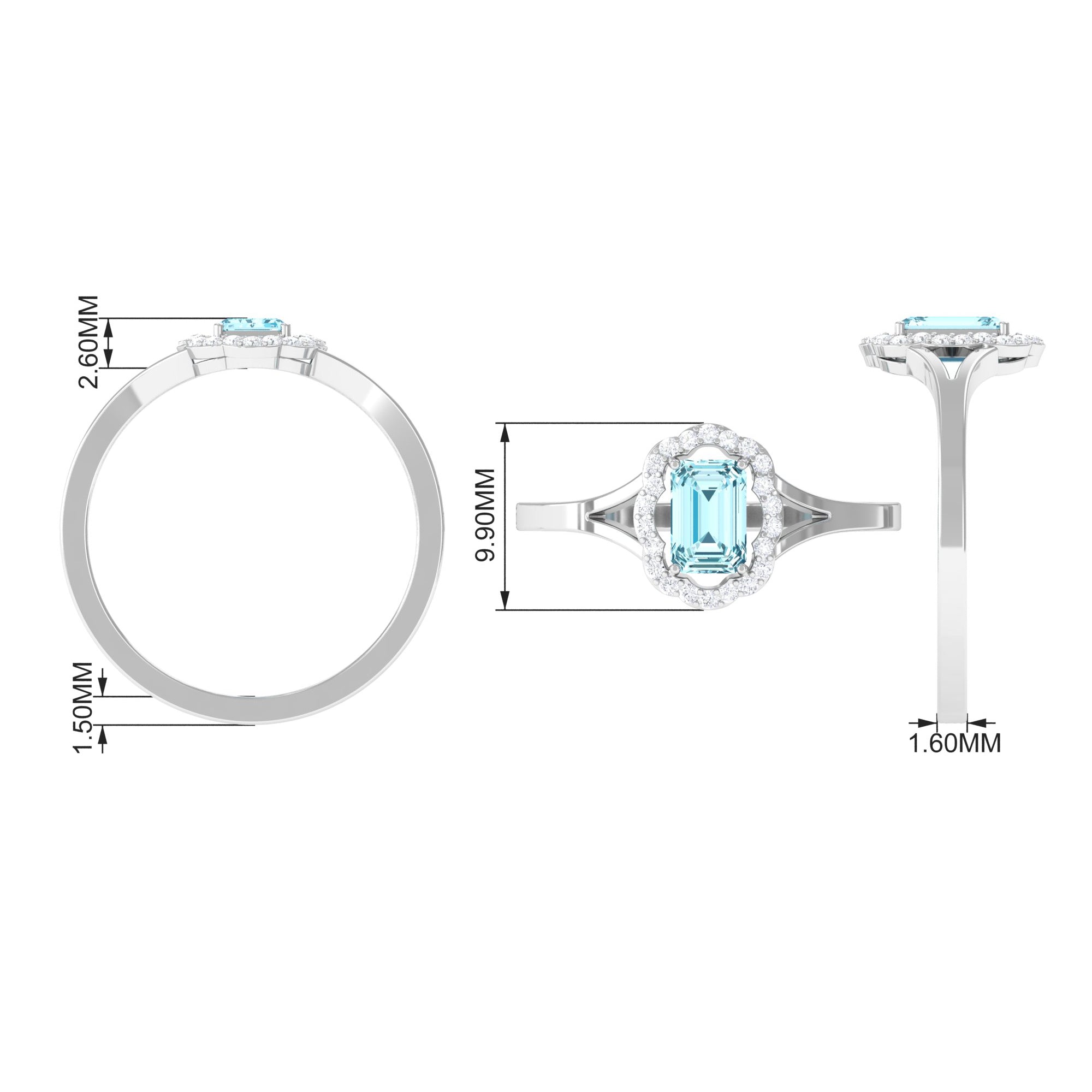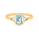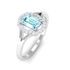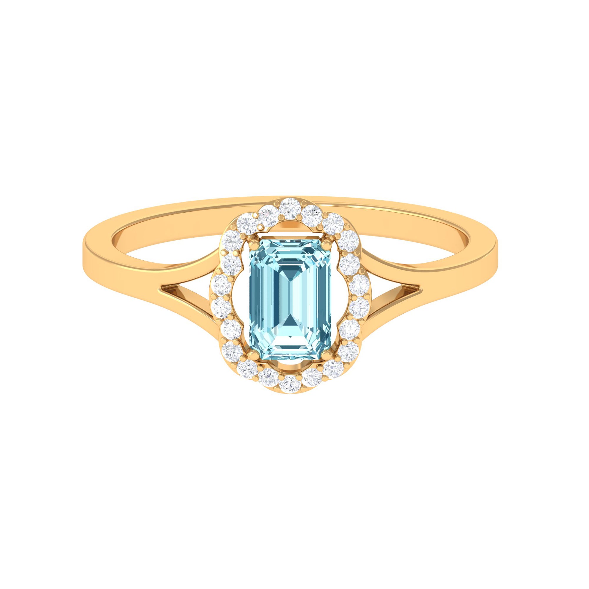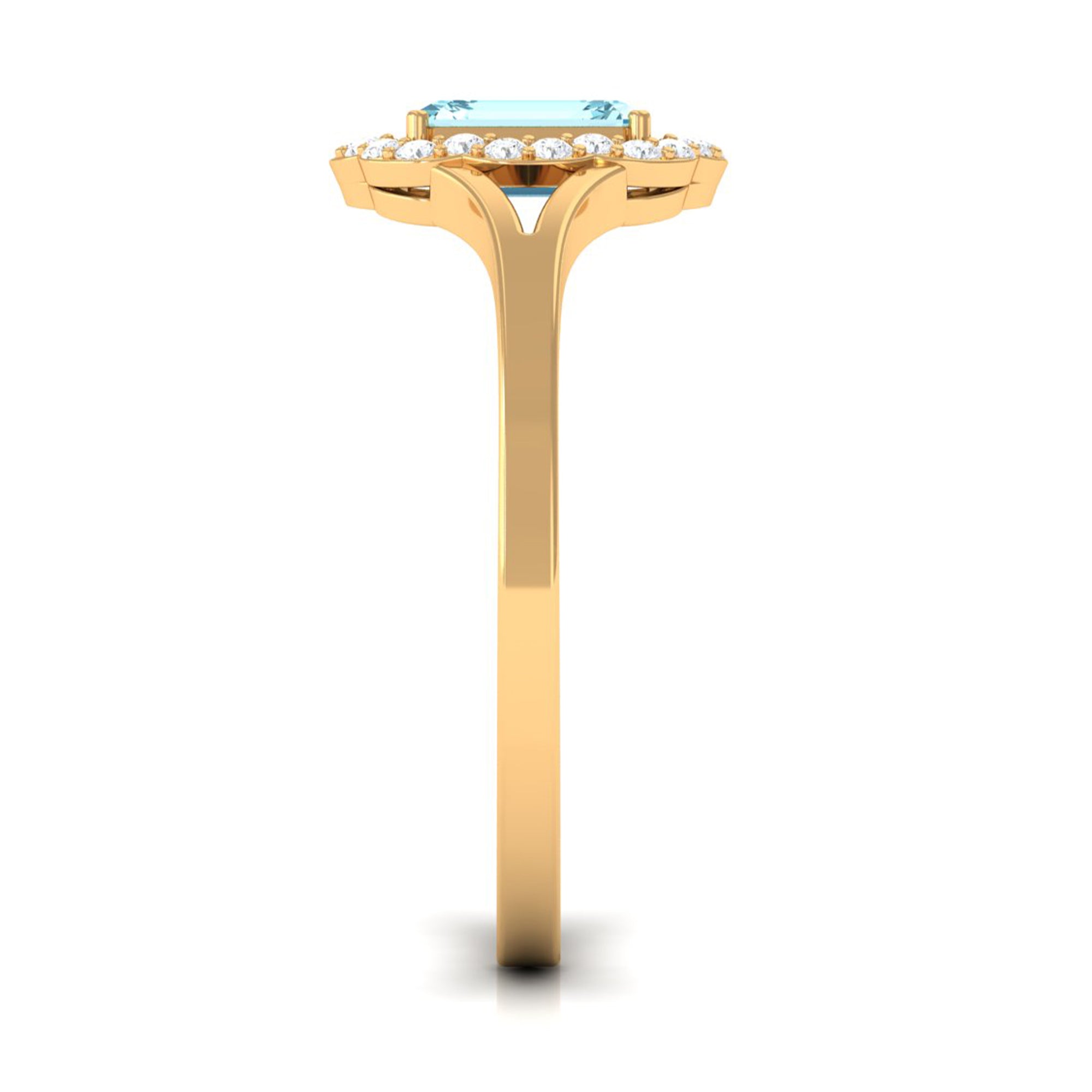 Get this beautiful Floral Halo Engagement Ring for your beloved for the special occasion. This Engagement Ring is crafted with Octagon Cut Aquamarine as a center stone with Round Shape Diamond as Floral Halo. It is crafted to make for a charming jewelry accessory for special occasions.