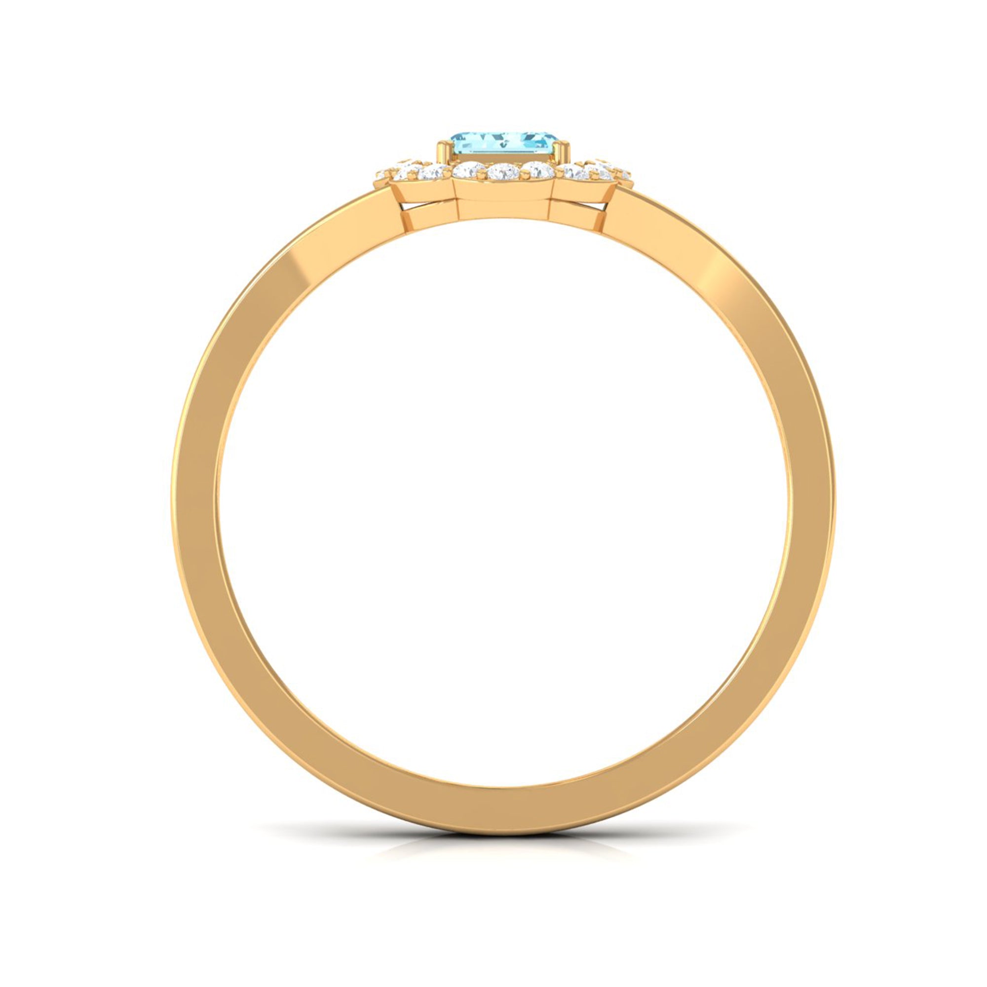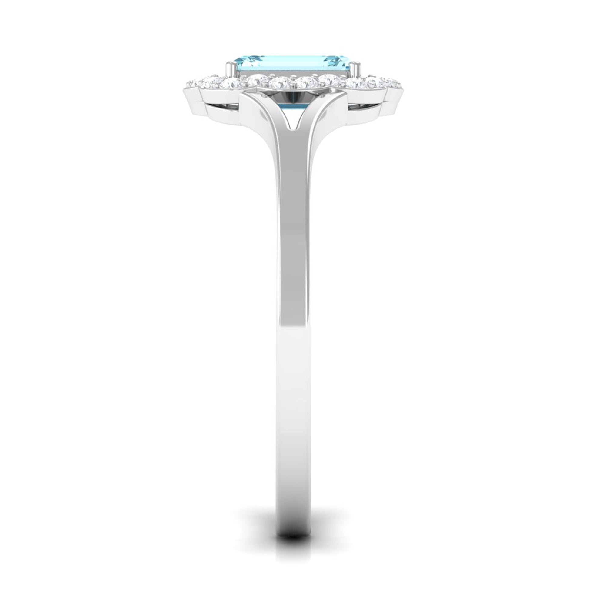 3/4 Ct Aquamarine Floral Halo Engagement Ring with Diamond