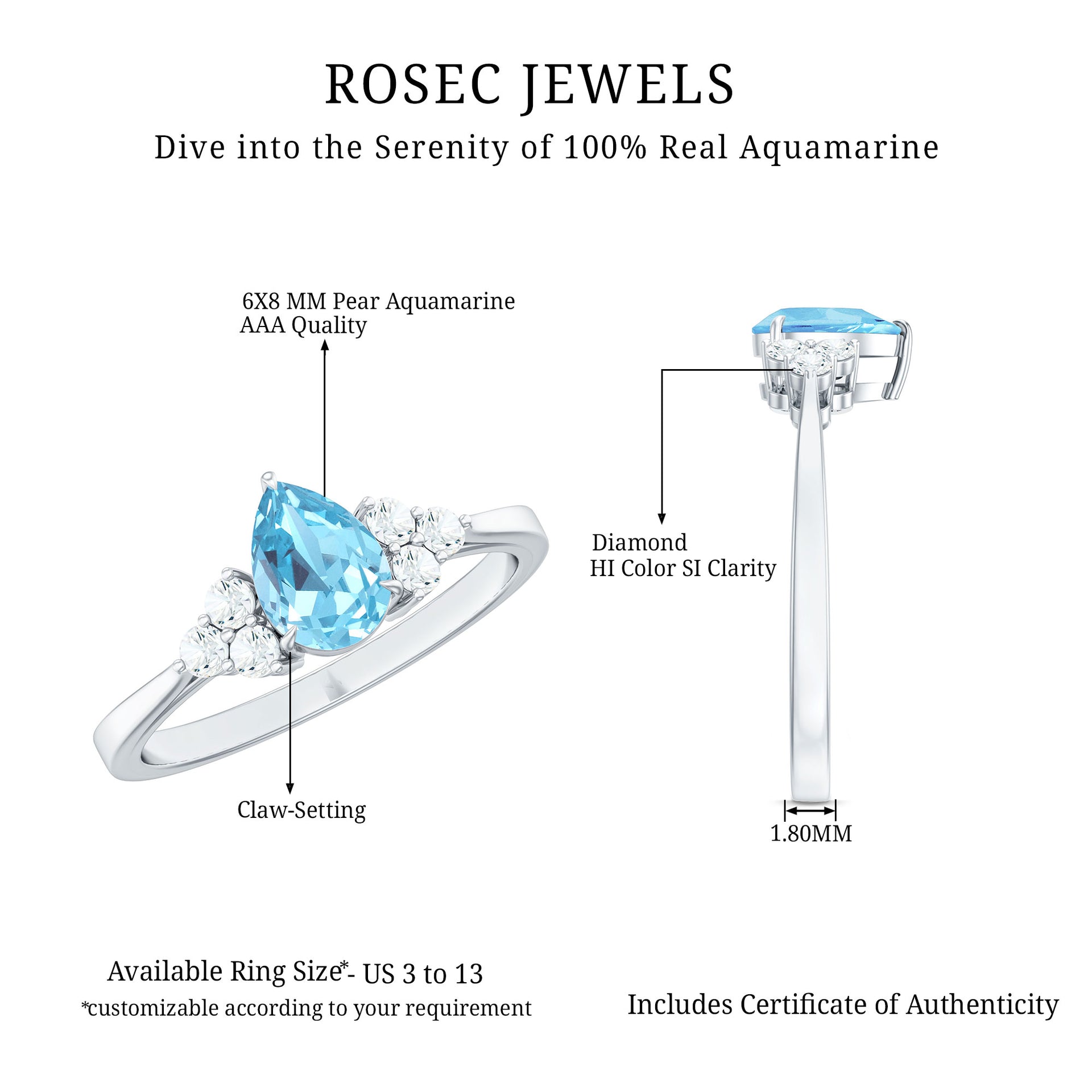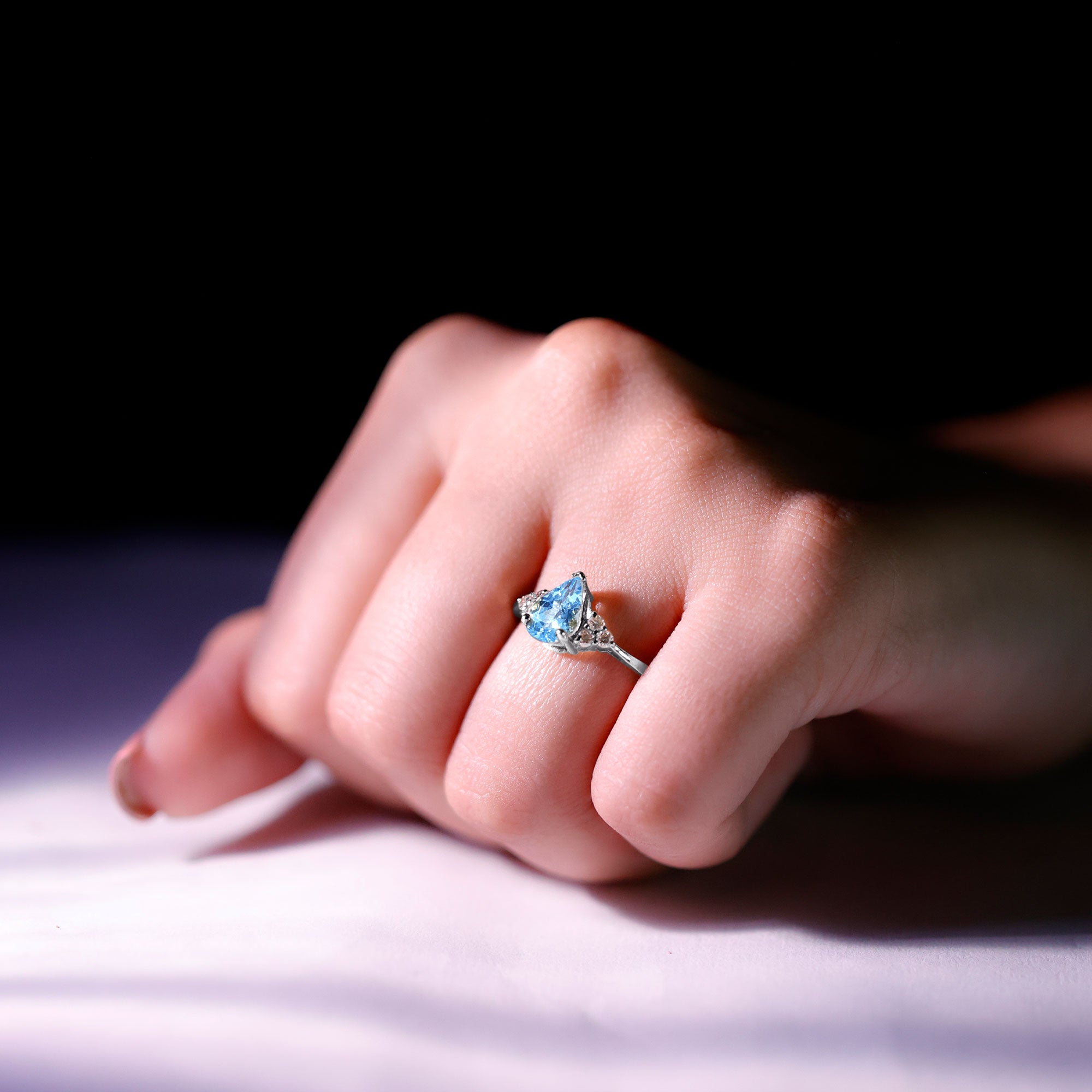 3/4 CT Aquamarine Solitaire Engagement Ring with Diamond Trio