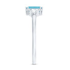 You will be able to add a captivating appeal to your look by adding Aquamarine Solitaire Engagement Ring. An Octagon Cut Aquamarine decorates the center of this Solitaire Engagement Ring. The side of the ring is studded with a Baguette and Round Diamond.