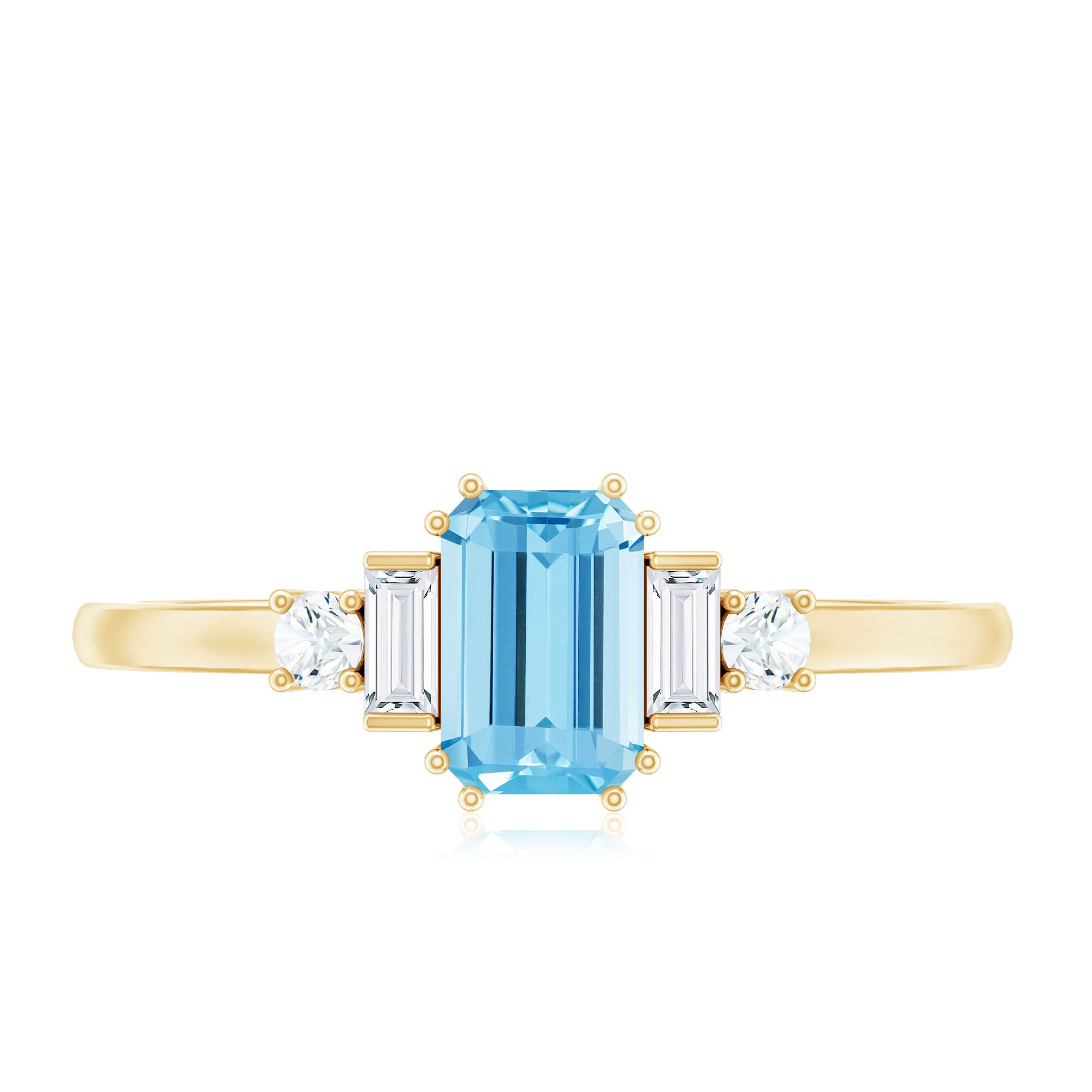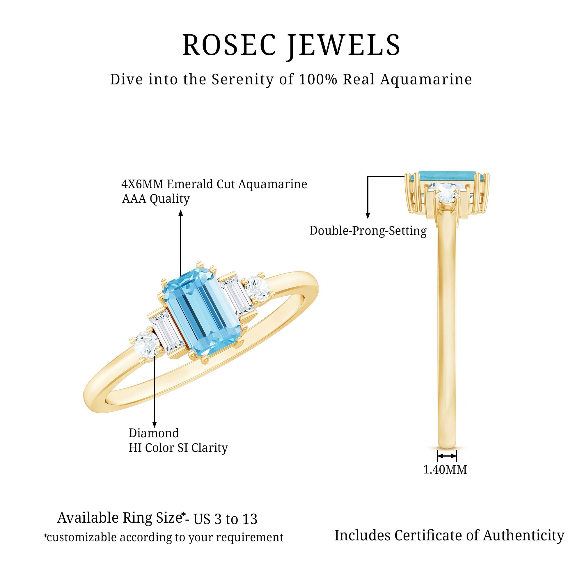 3/4 CT Aquamarine Solitaire Engagement Ring with Diamond