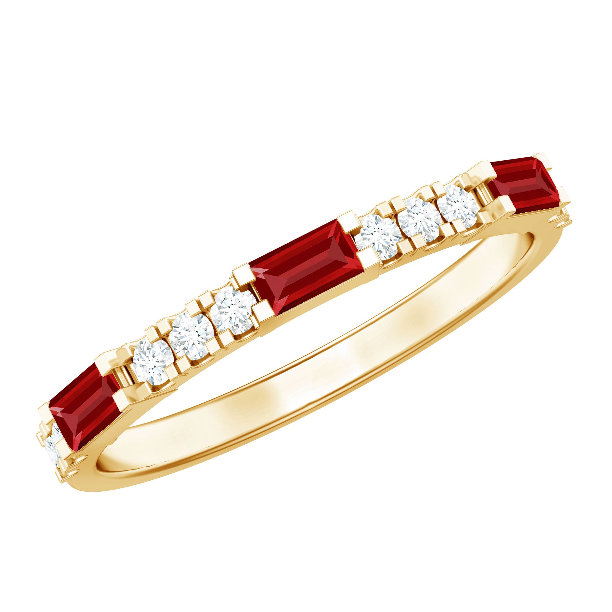 3/4 CT Baguette Cut Lab Grown Ruby Stackable Ring with Diamond