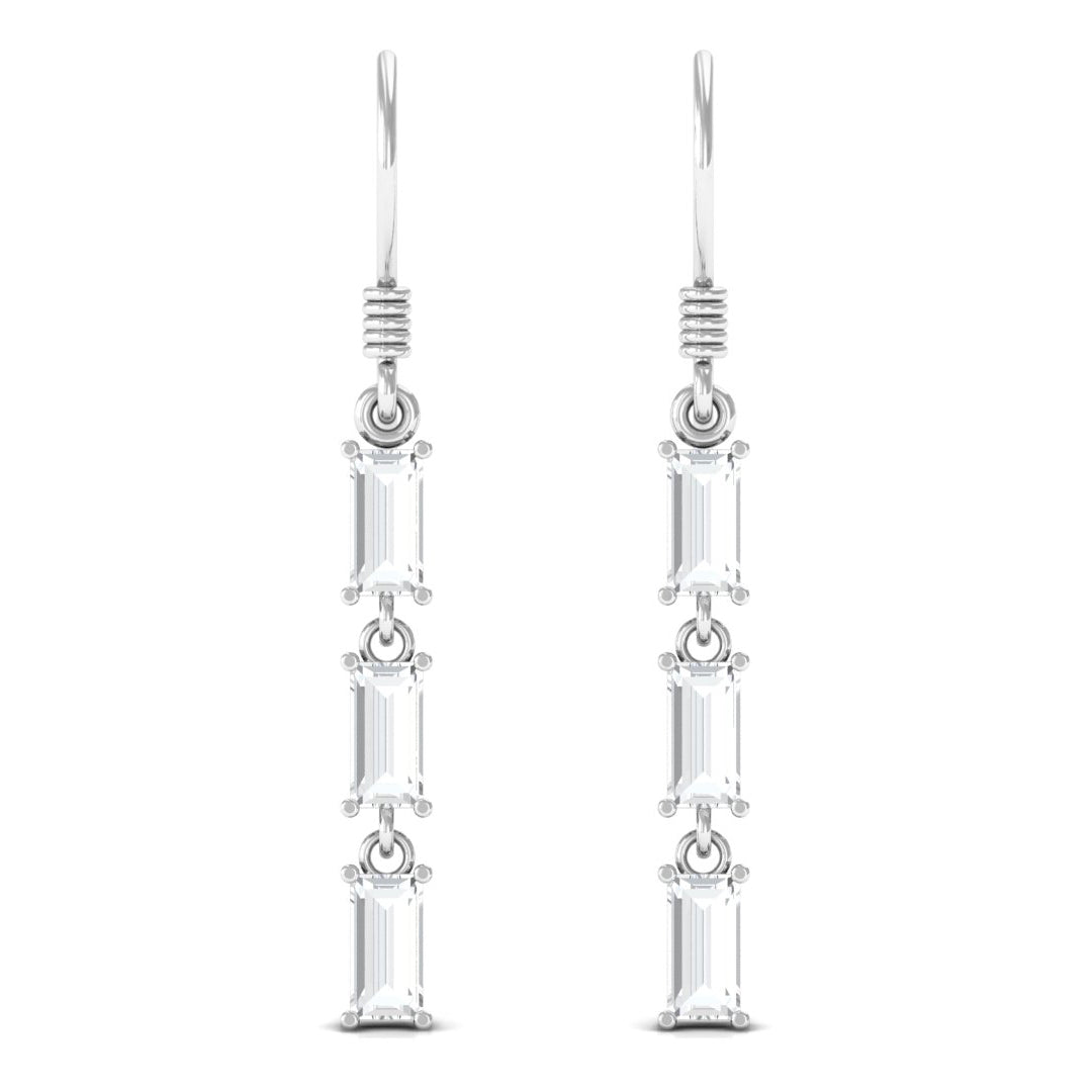 3/4 CT Baguette Cut Moissanite Three Stone Dangle Earrings
