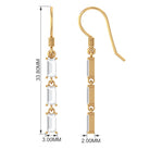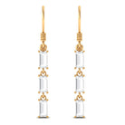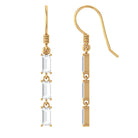 Enhance your appearance with these dazzling Moissanite Three Stone Earrings that exude prosperity. Featuring three Moissanite Stones cut in a baguette shape, these Dangle earrings are elegantly designed to dangle from your ears. Crafted from solid gold, these Moissanite earrings are perfect for lovely lady.
