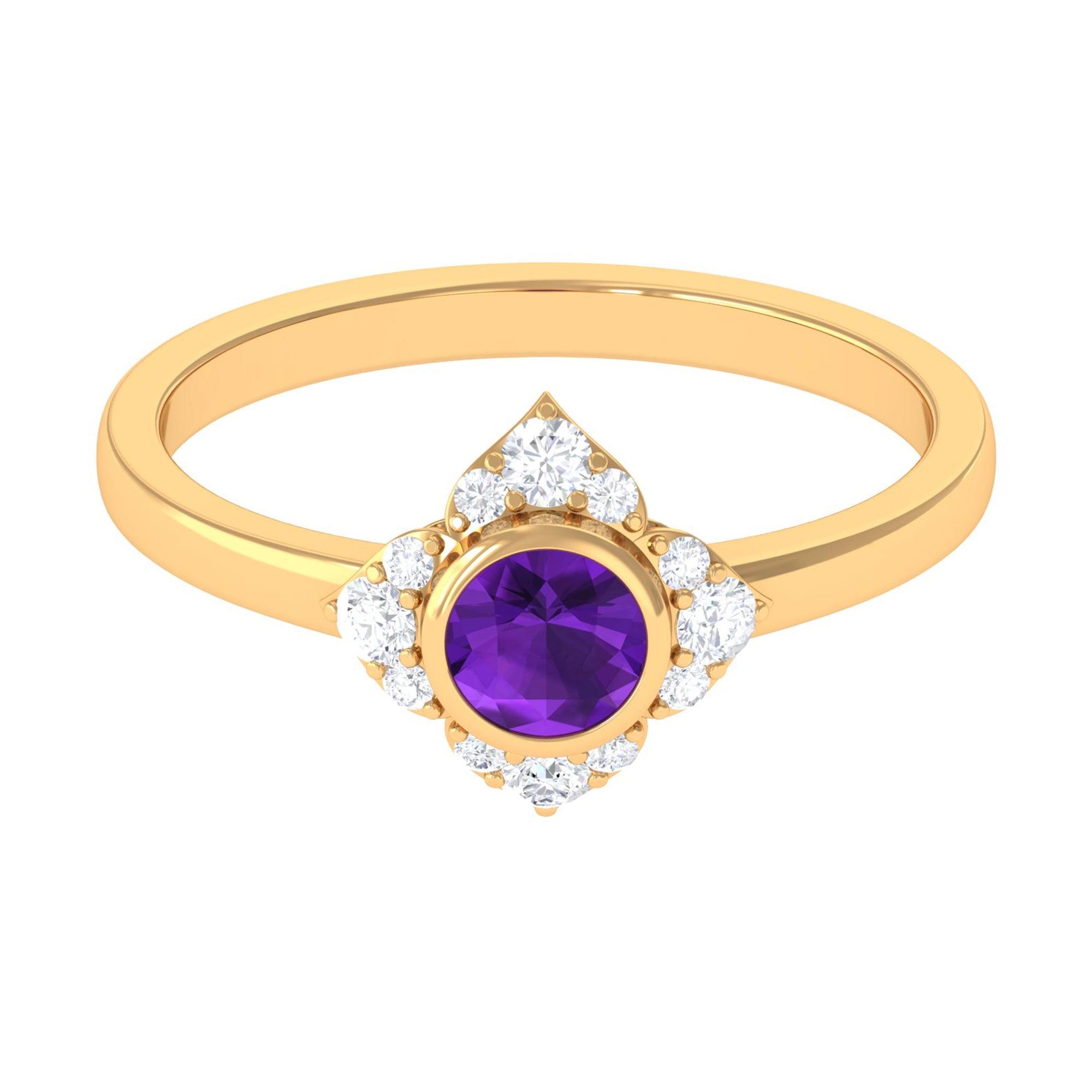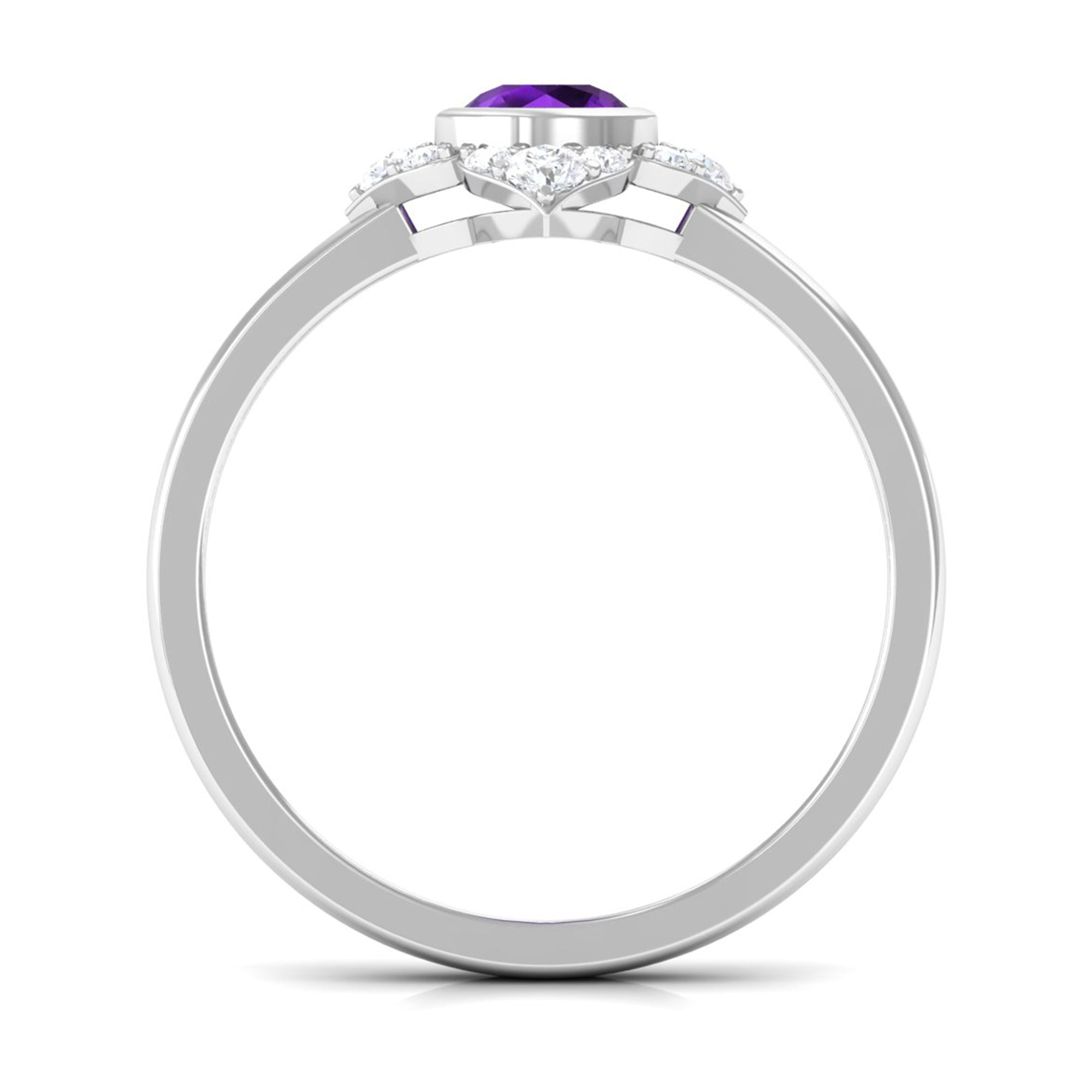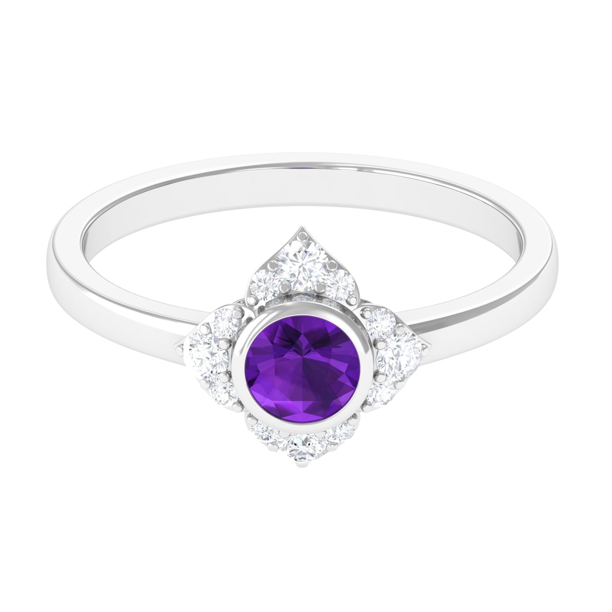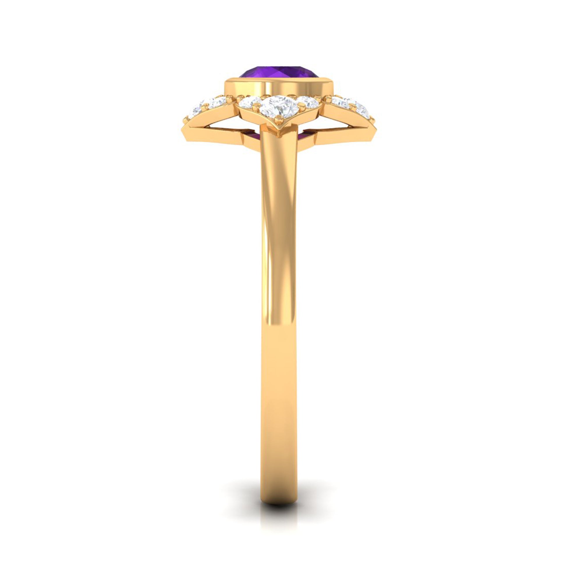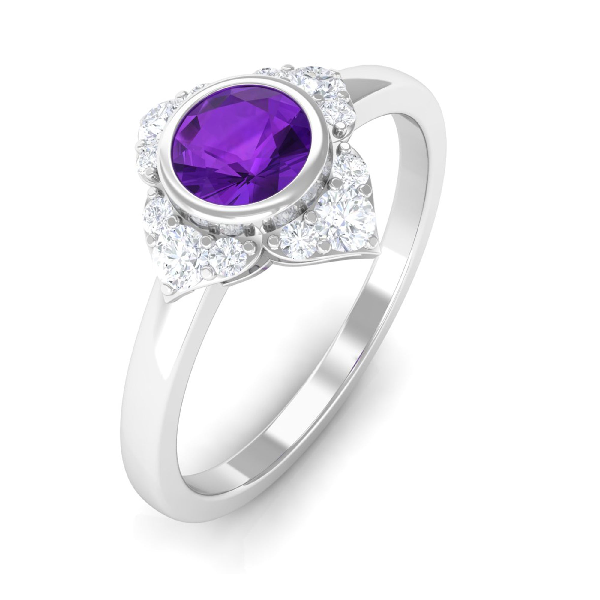 3/4 CT Bezel Set Amethyst Flower Engagement Ring with Diamond