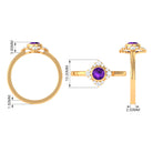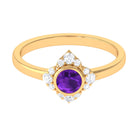 Surprise your special someone with the Floral Halo Engagement Ring, a stunning jewelry piece that is sure to capture her heart. This exquisite Flower Engagement Ring showcases a dazzling round-cut Amethyst stone set in a secure bezel setting, nestled within a beautiful floral petal design. The Amethyst stone is surrounded by a sparkling halo of round-cut Diamond, adding a touch of glamour and sophistication to this magnificent Ring. Expertly crafted from premium gold metal, this Amethyst Engagement Ring is sure to withstand the test of time. Give the gift of timeless elegance with this gorgeous Floral Halo Engagement Ring.