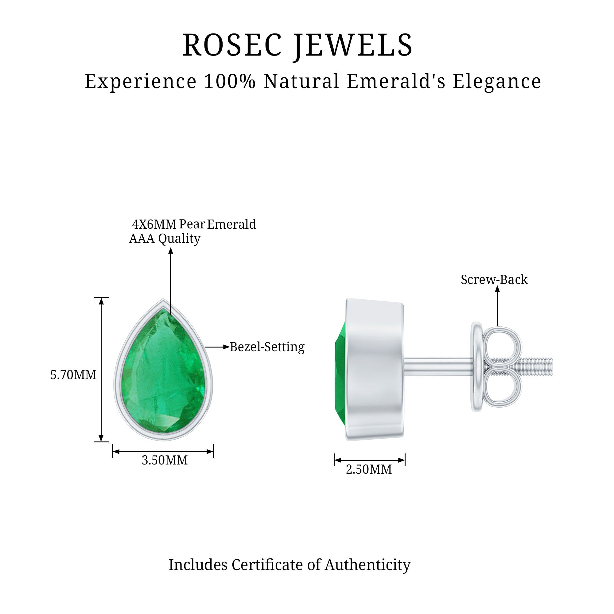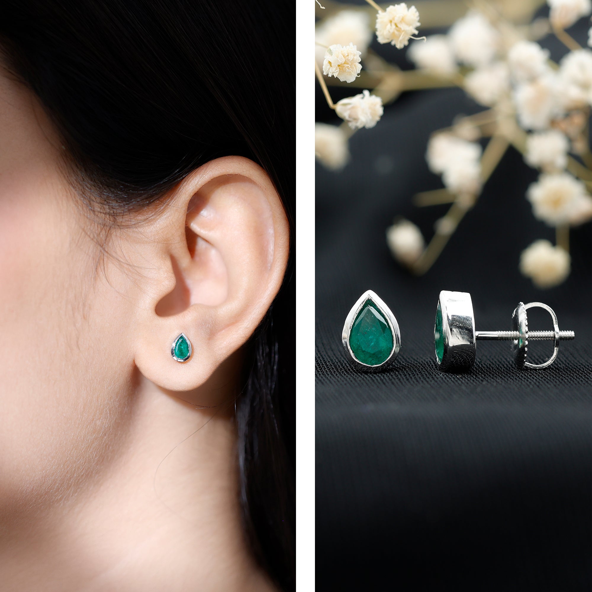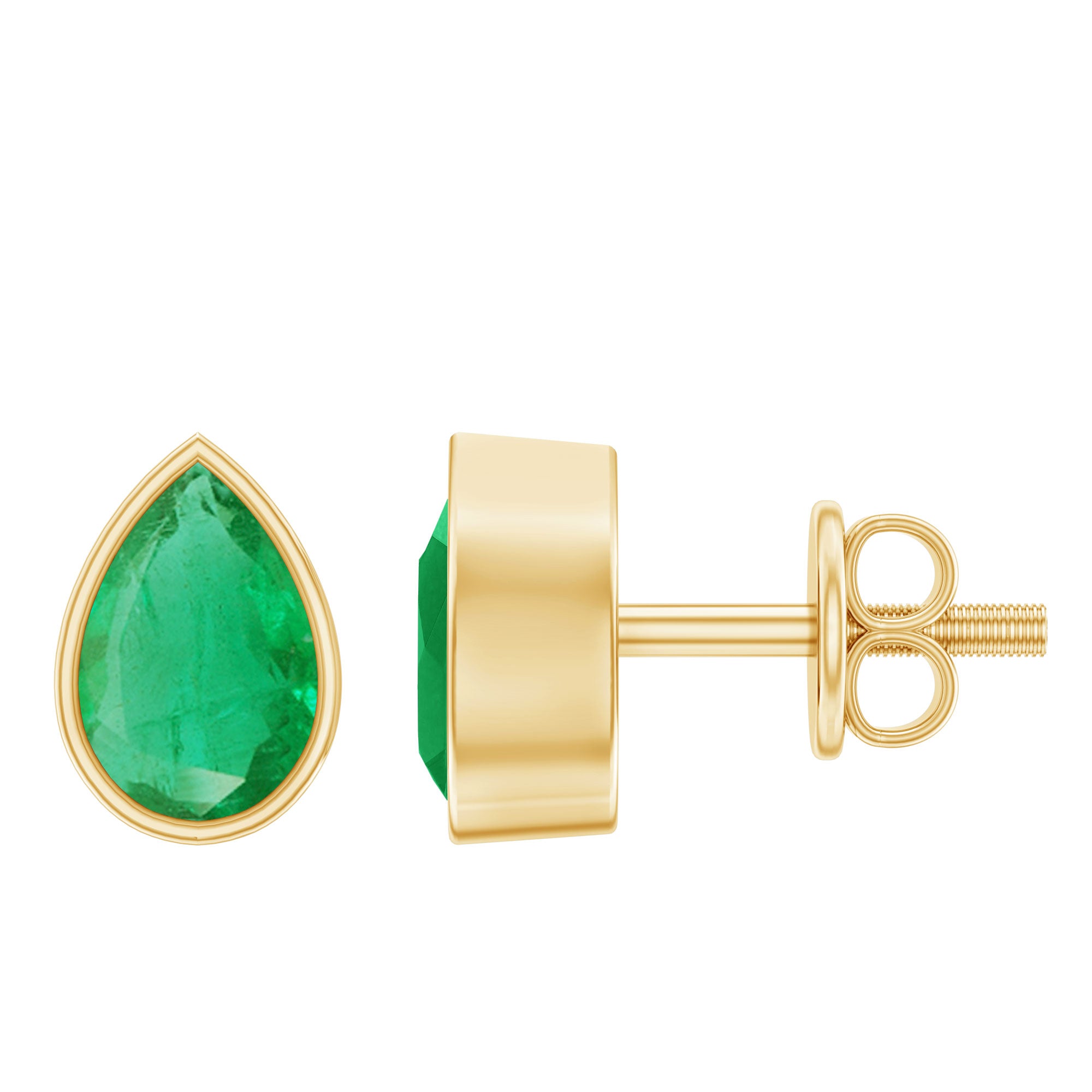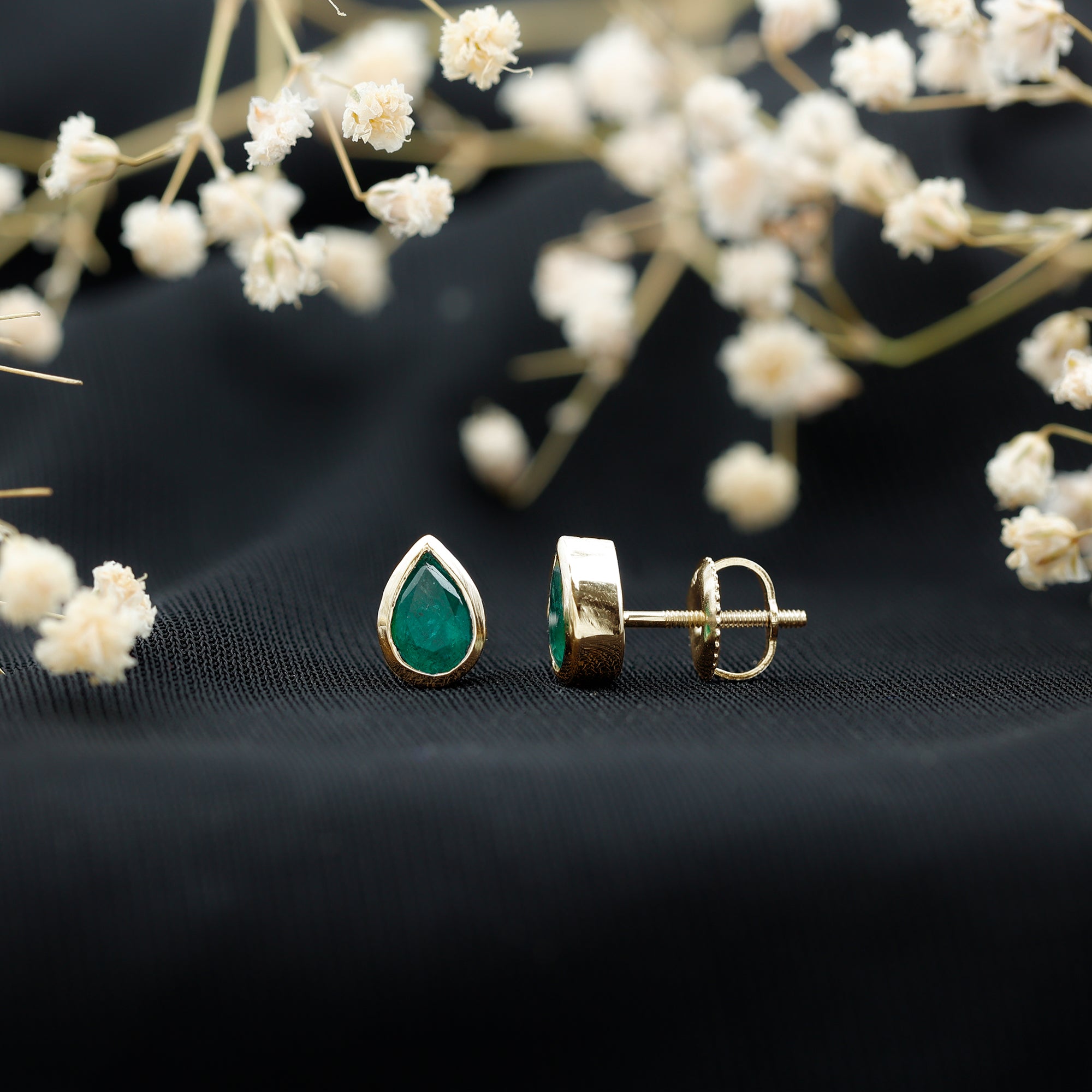 3/4 CT Bezel Set Emerald Teardrop Stud Earrings in Bezel Setting