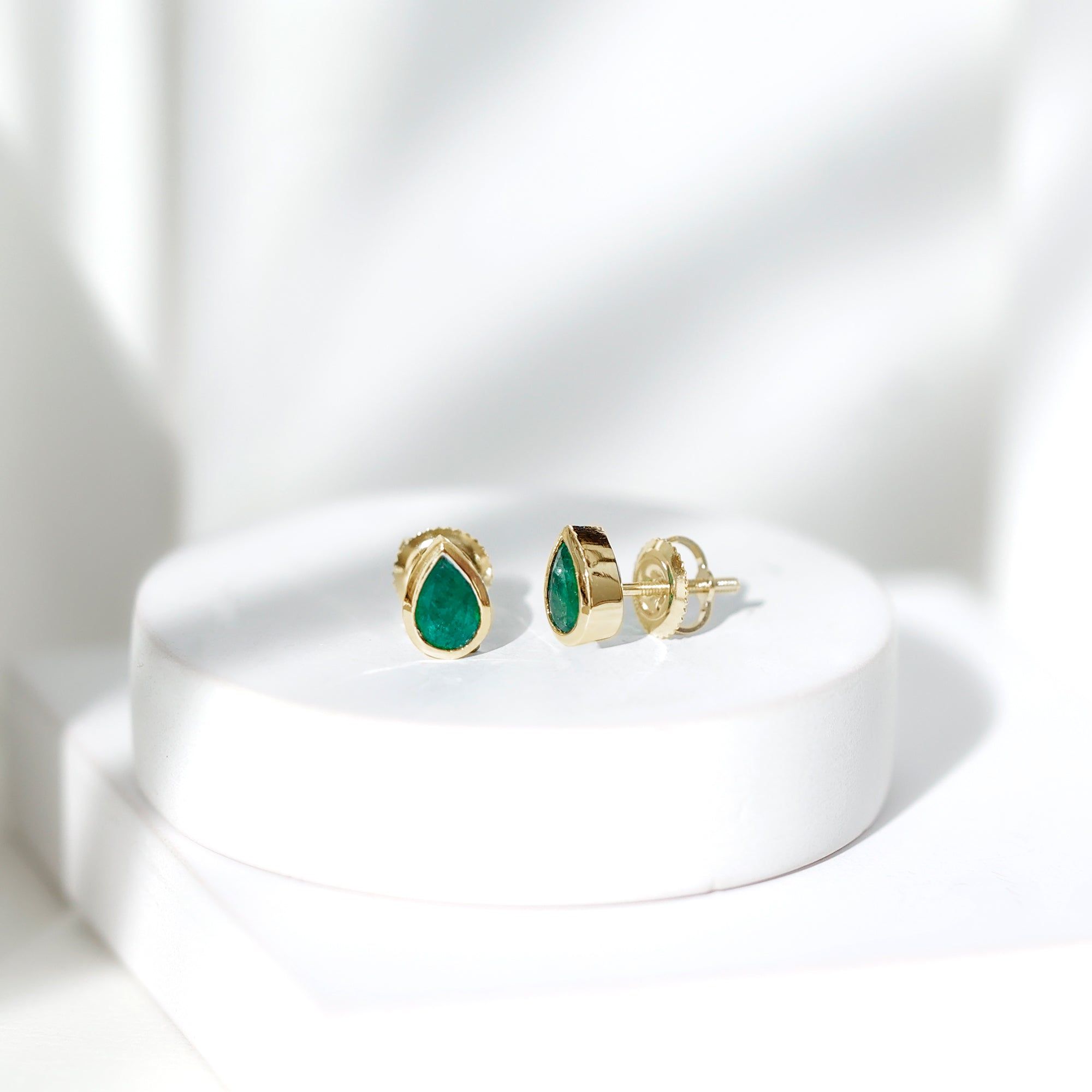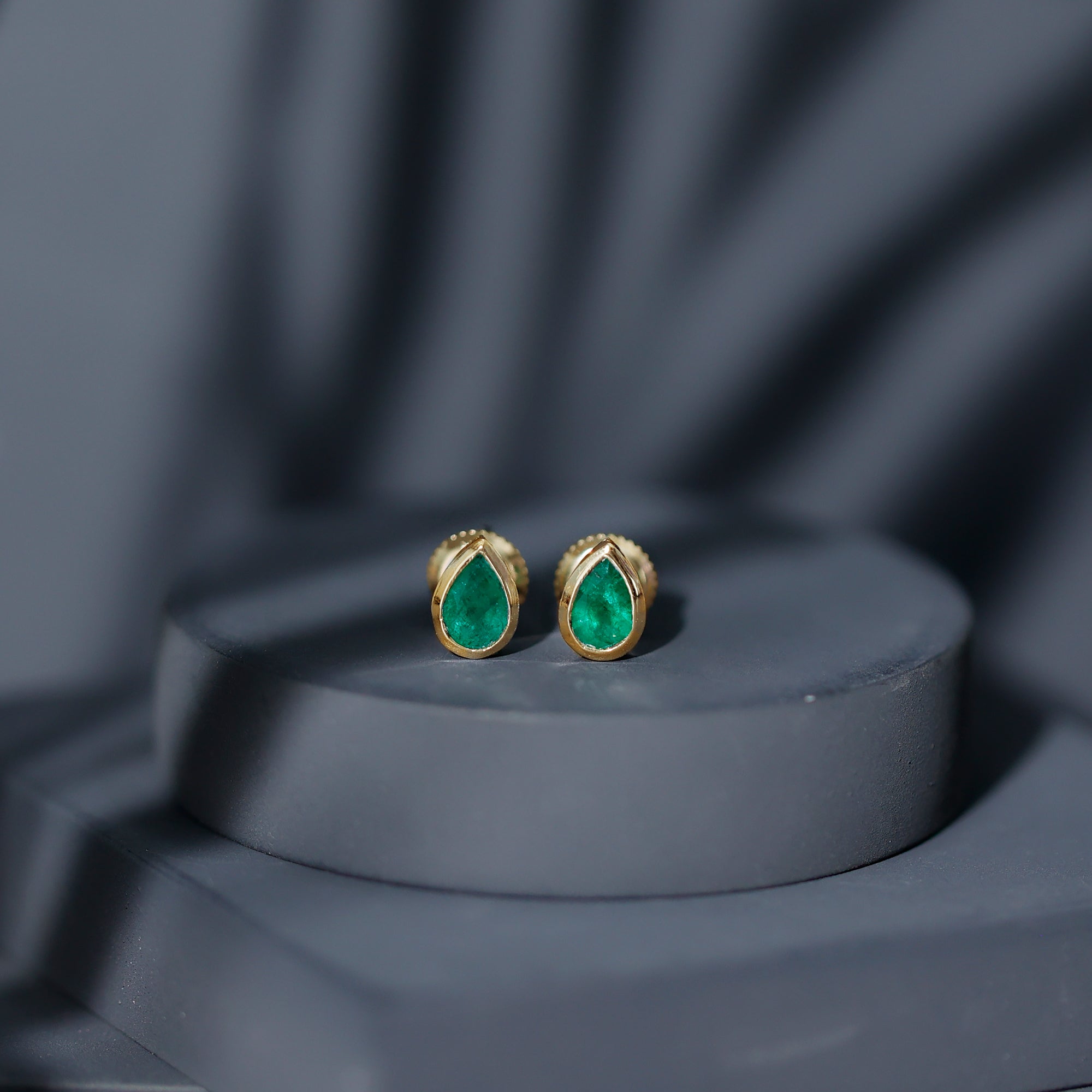 Turn a blind eye to the haters with our Minimal Stud Earrings featuring 4X6 MM Pear Cut Emerald, adorned in Solid Gold.