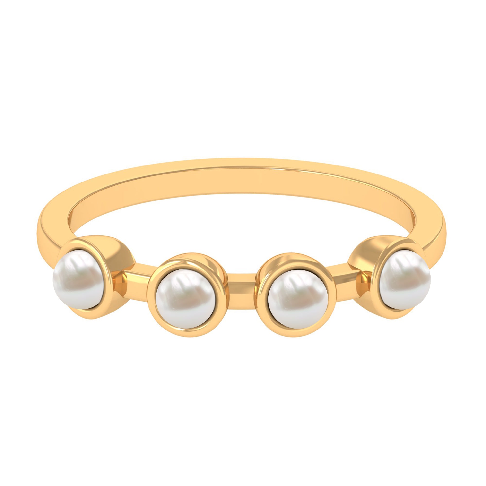 3/4 CT Bezel Set Freshwater Pearl Minimal Promise Ring