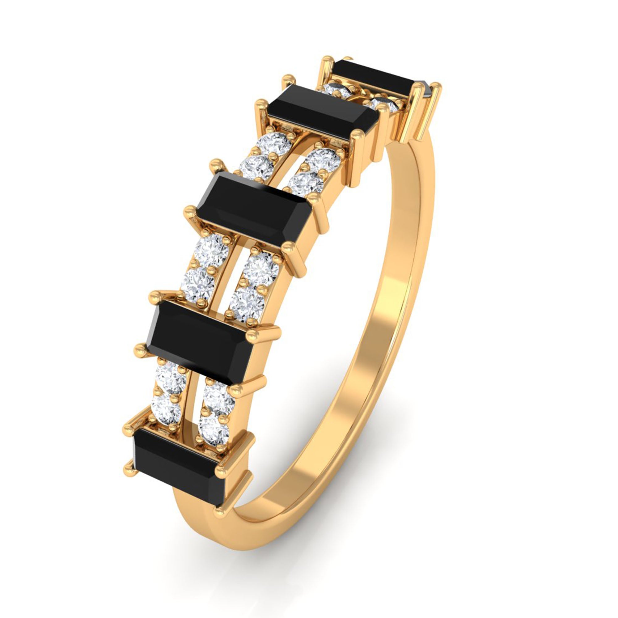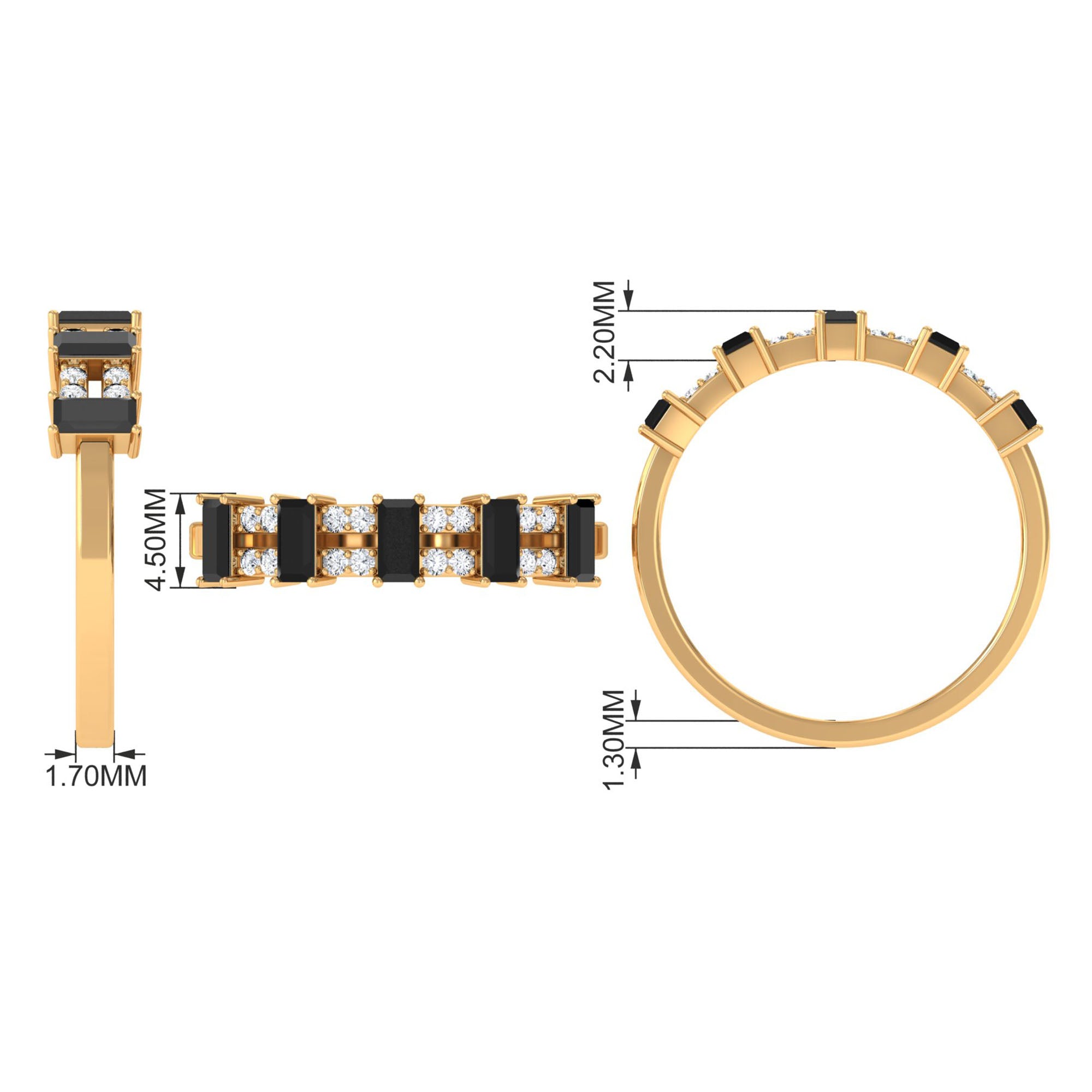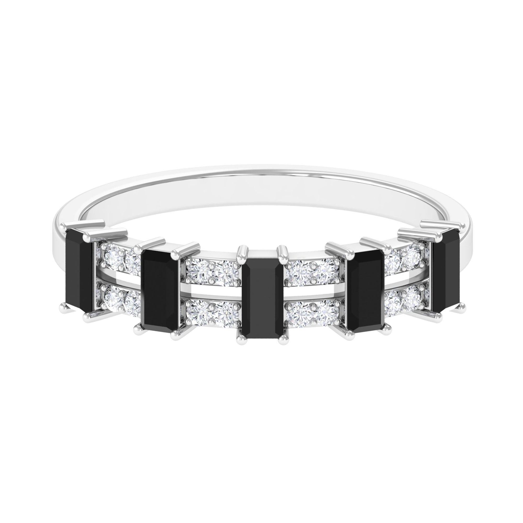 Bless your finger with this lavish and intricate Half Eternity Ring, featuring Baguette Cut Black Spinel and Round Diamond set in pair in alternative patterns to give this an enchanting look. This Wide Band Ring is an impressive choice, if your partner loves sumptuous style.
