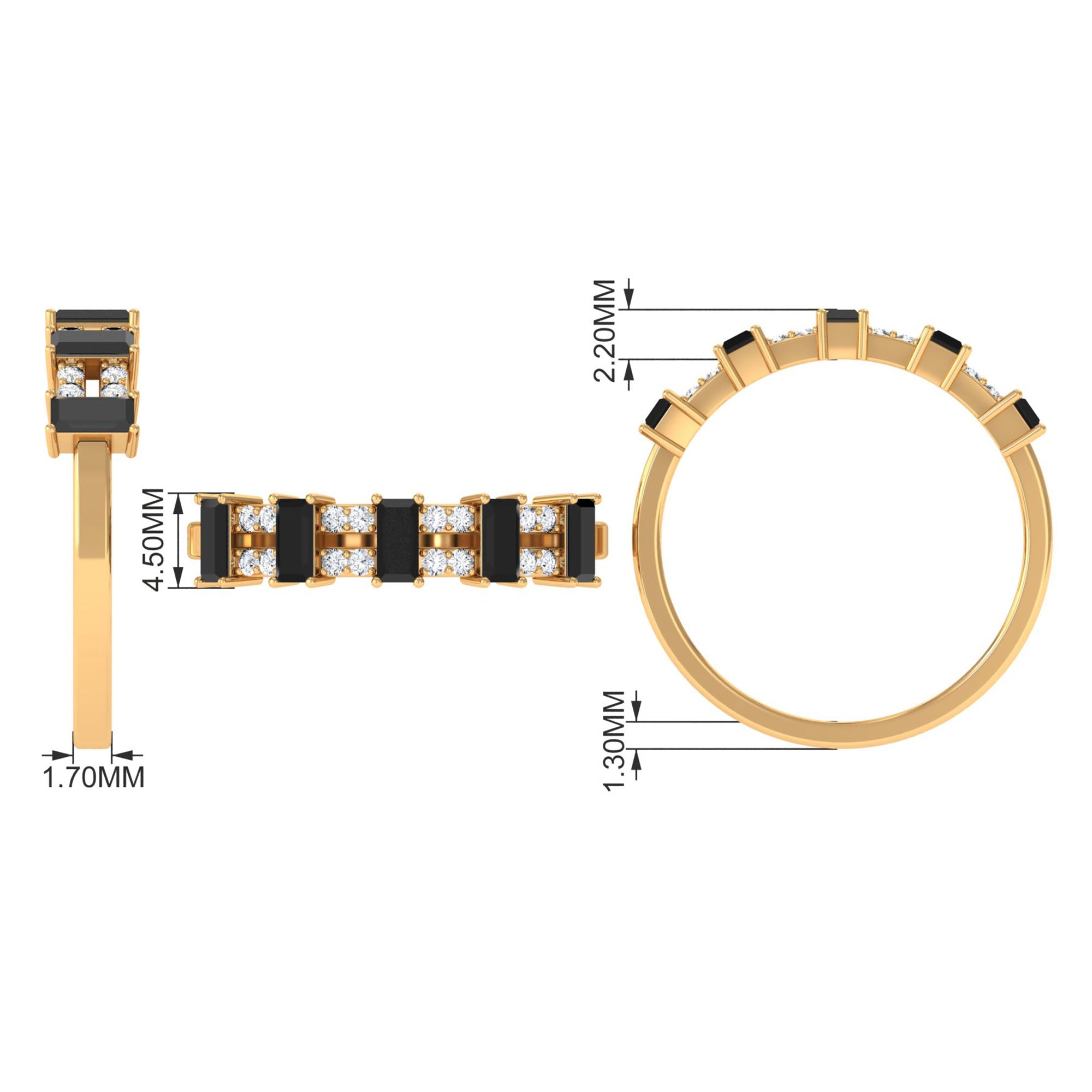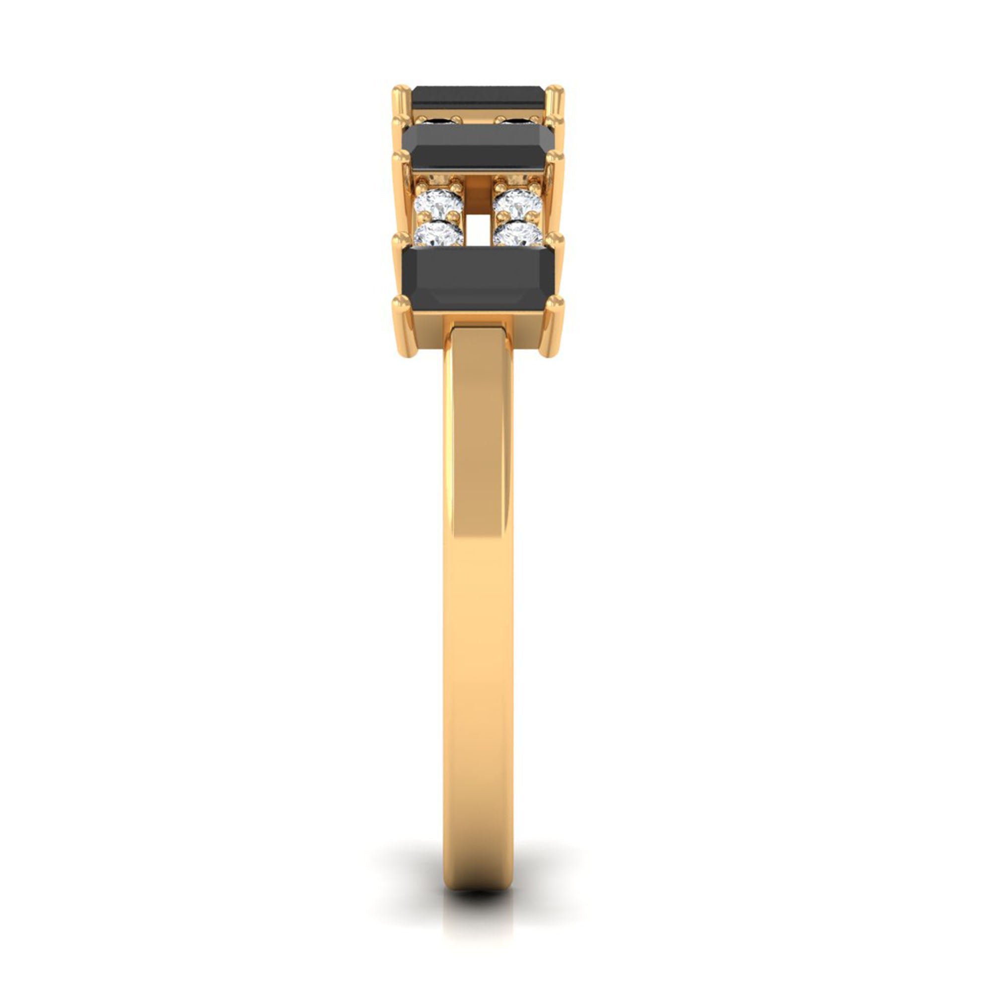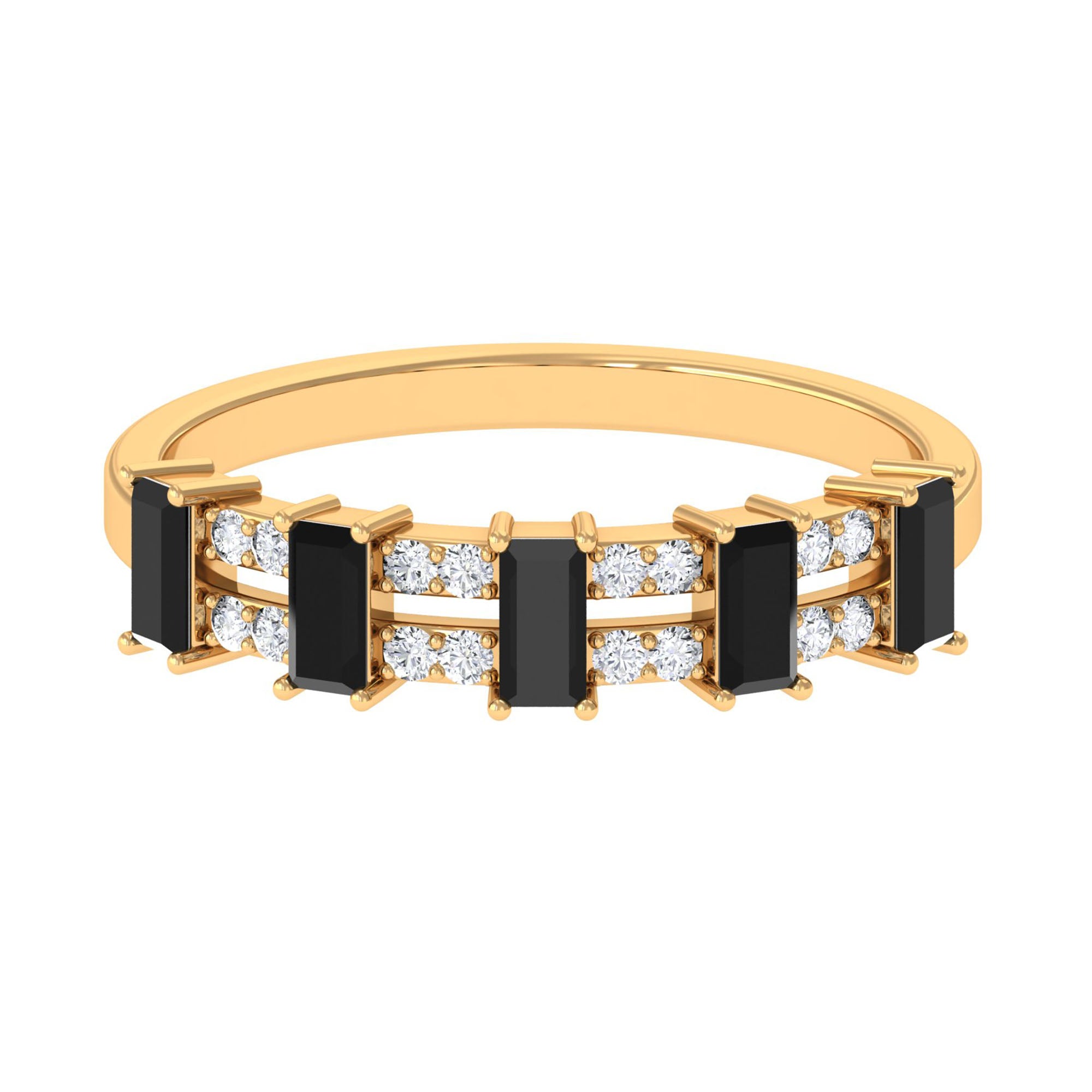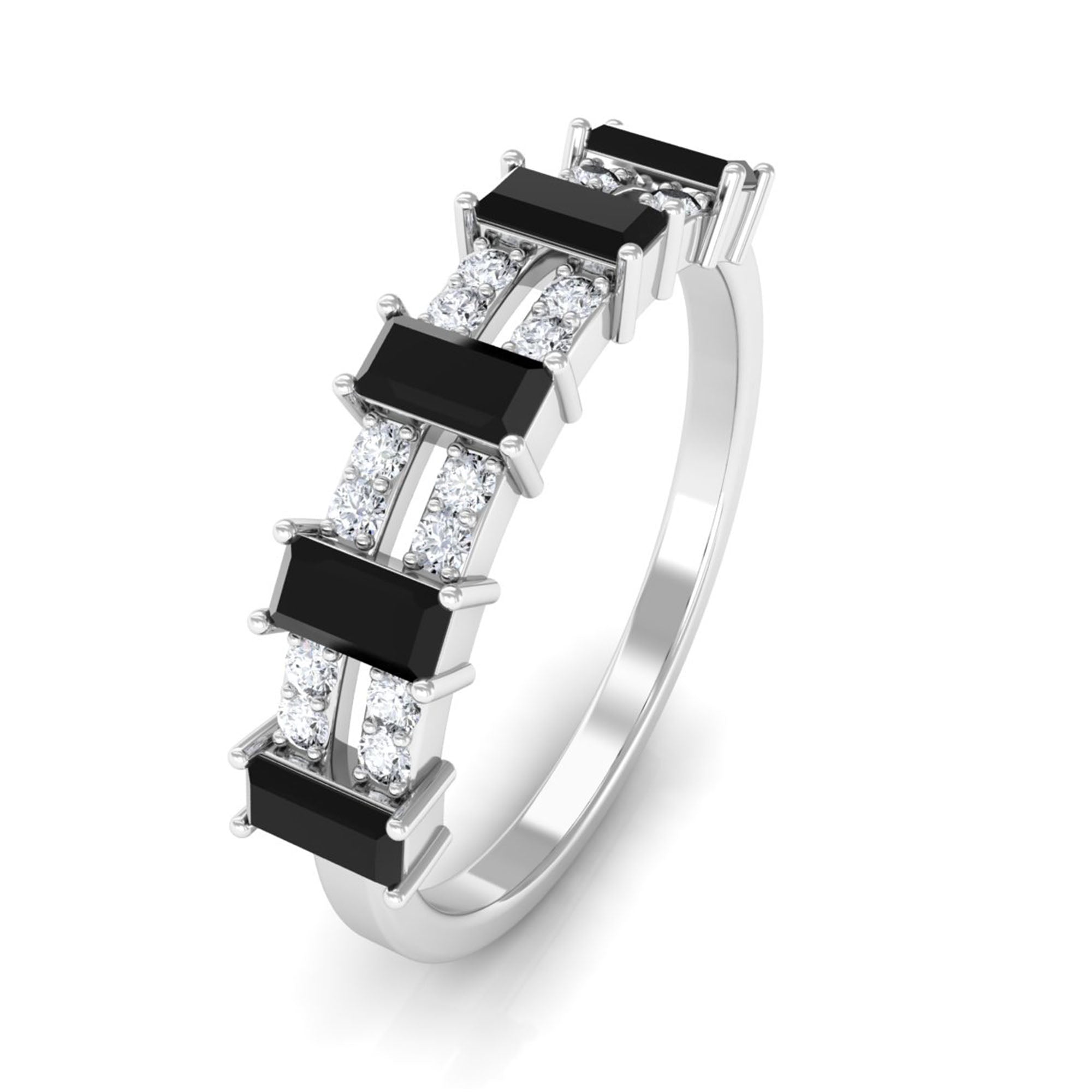 Bless your finger with this lavish and intricate Half Eternity Ring, featuring Baguette Cut Black Spinel and Round Diamond set in pair in alternative patterns to give this an enchanting look. This Wide Band Ring is an impressive choice, if your partner loves sumptuous style.