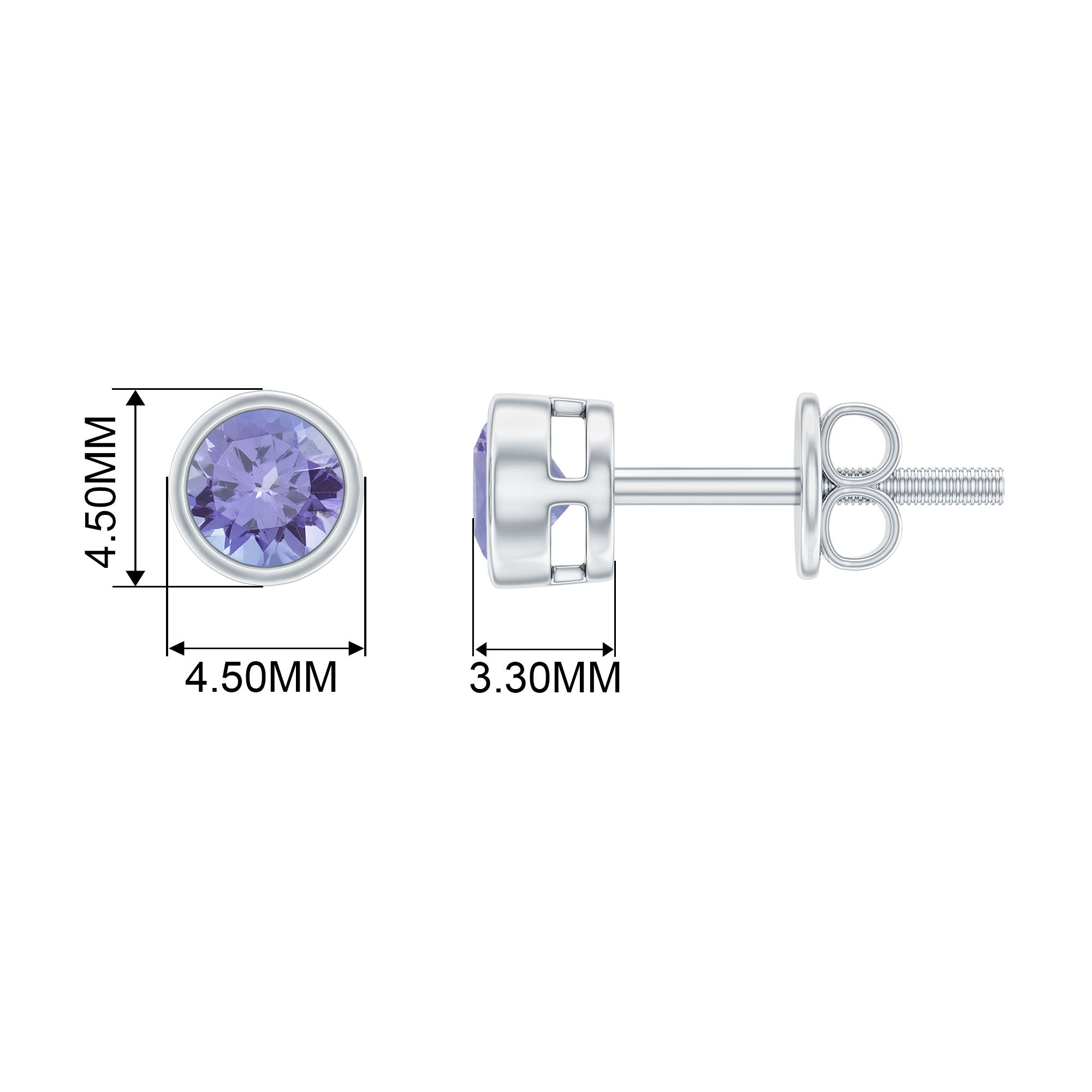 3/4 CT Blue Tanzanite Solitaire Gold Stud Earrings in Bezel Setting