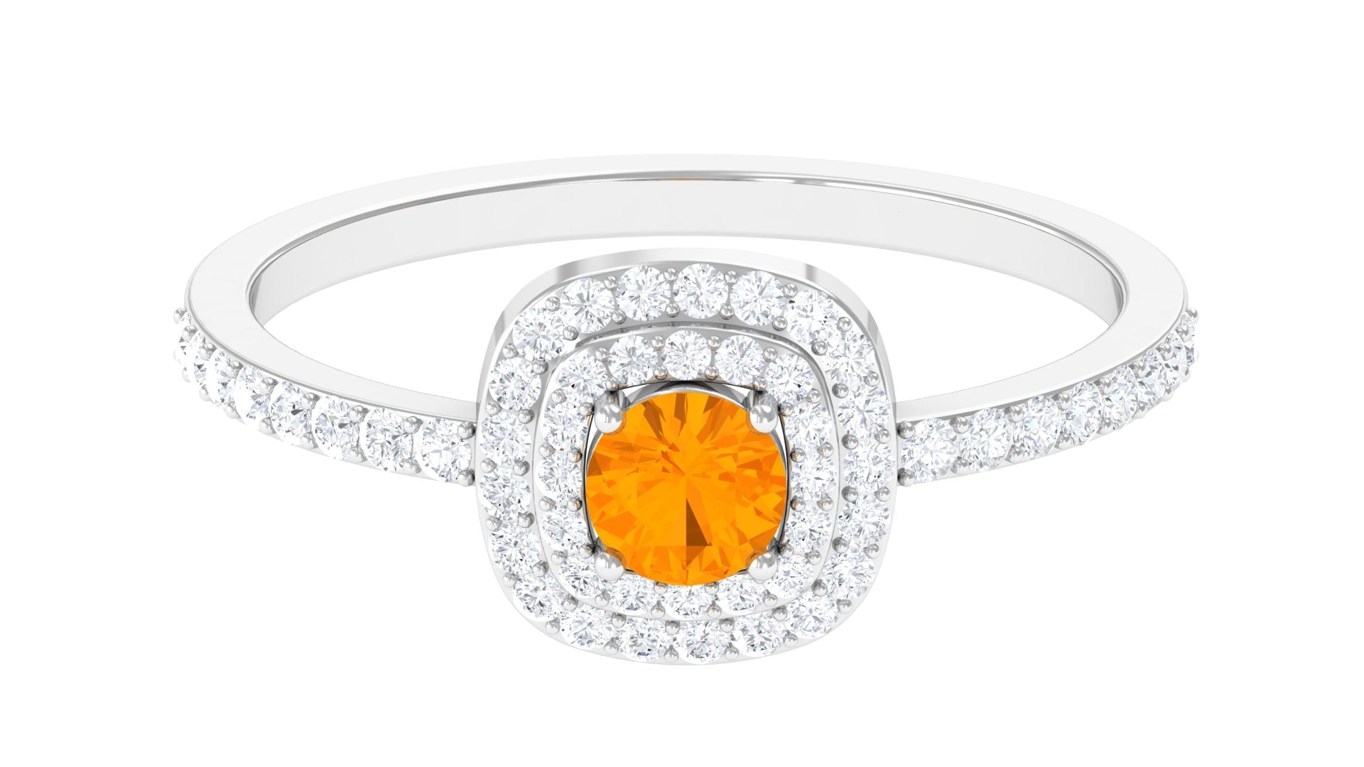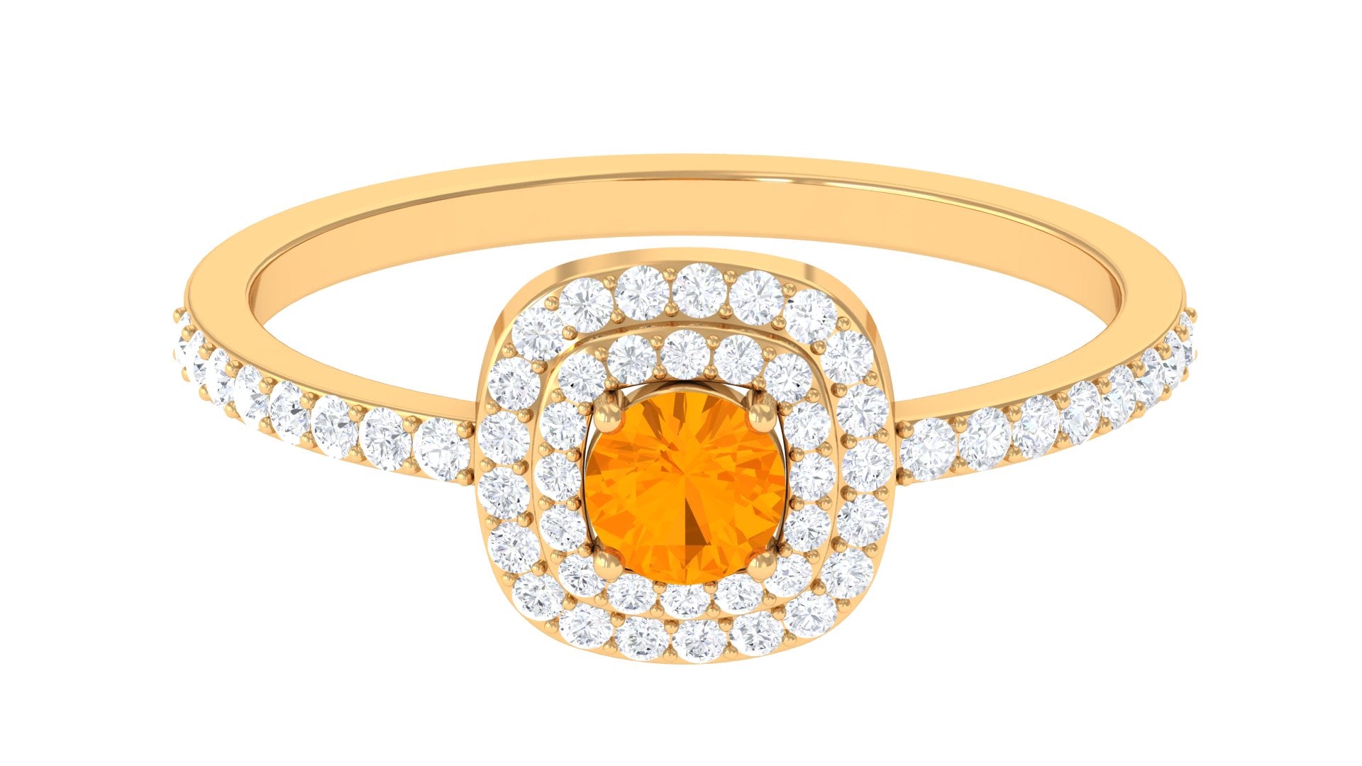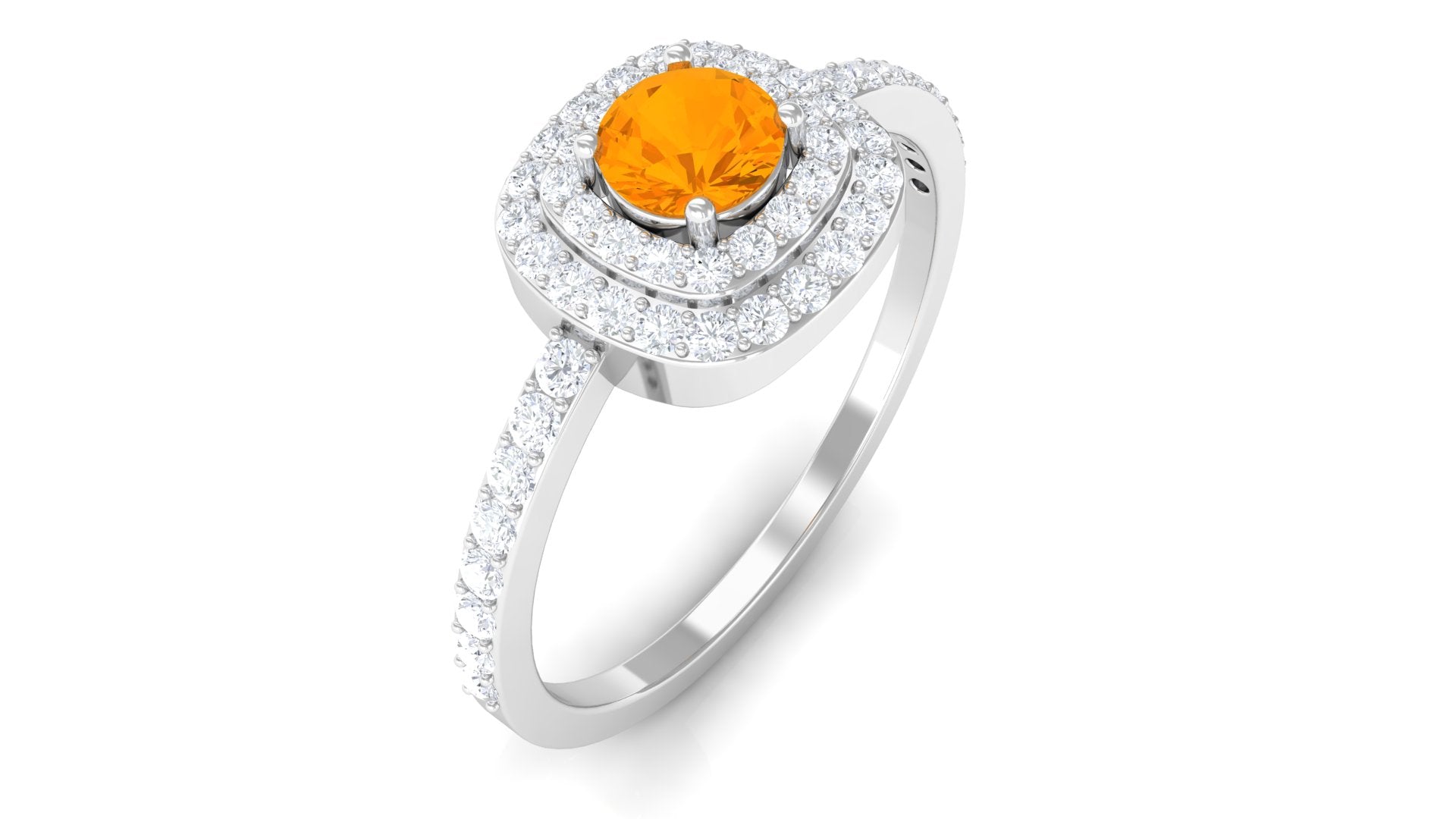 3/4 CT Classic Fire Opal Double Halo Engagement Ring with Diamond