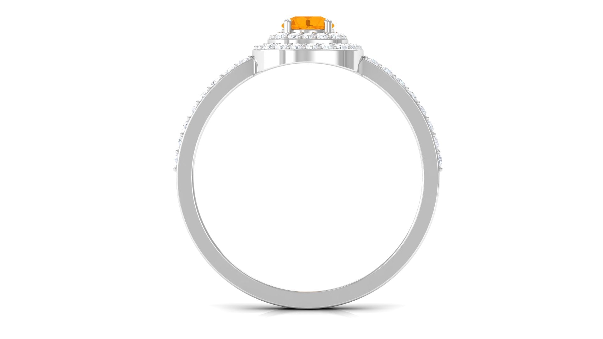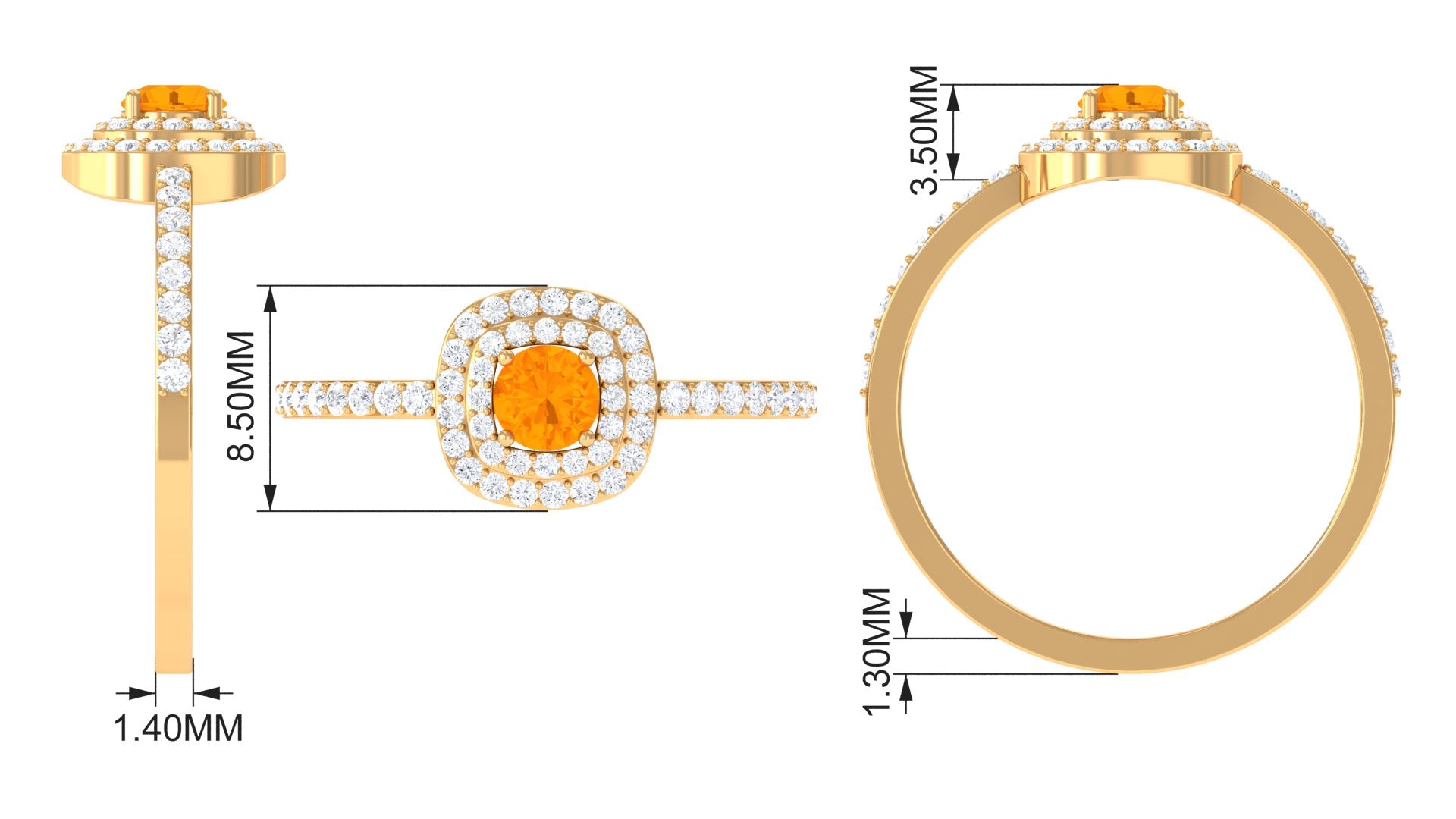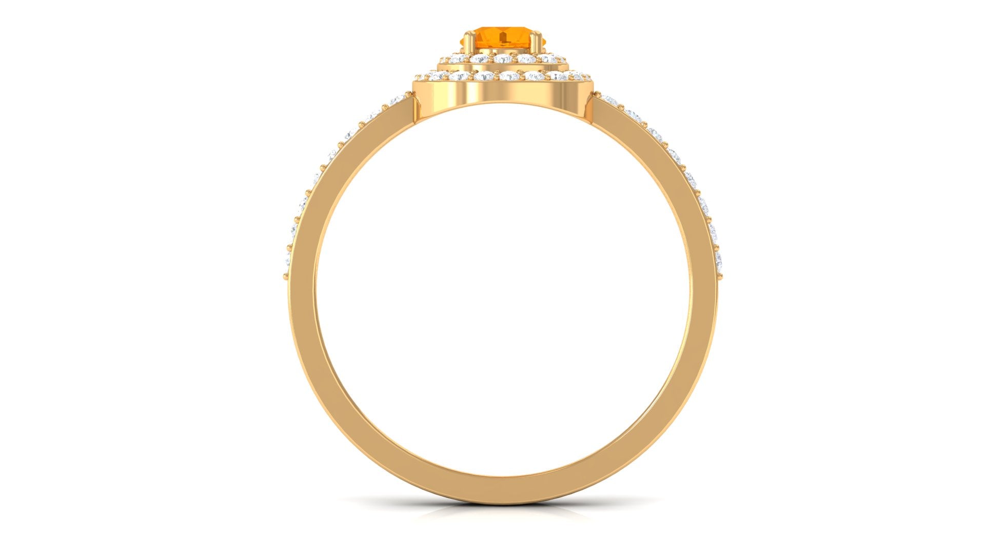 3/4 CT Classic Fire Opal Double Halo Engagement Ring with Diamond