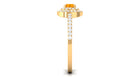 Magnificent Fire Opal Engagement Ring is handcrafted meticulously in gold for luxurious appeal. The Prong Set Fire Opal is captivating and is surely an enchanting piece of fine jewelry. The Diamond Double Halo is what makes this ring classic. Get this Fire Opal and Diamond Engagement Ring for your lady and make her feel elated.