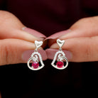 3/4 CT Created Ruby and Diamond Accent Heart Drop Earring