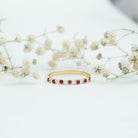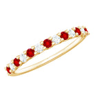 The delicate, elegant Lab Ruby Ring adds a minimalist touch when worn alone, but also pairs beautifully with other bands or serves as an engagement ring. This band ring exudes brilliance and shine, making it a perfect way to enhance your look. Featuring a vibrant hue and a mesmerizing combination of Lab Ruby and Moissanite, this Lab Ruby Stackable Ring is embellished with Round Shape Lab Created Ruby and Moissanite in a Shared Prong Setting. This unique Lab Ruby Half Eternity Ring offers a special way to express your individual style. The versatility of this Ruby Stackable Ring is designed to add a touch of sophistication to any ensemble.