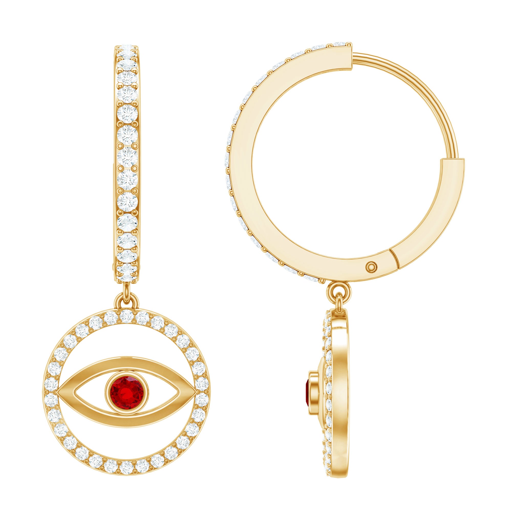 3/4 CT Created Ruby and Moissanite Evil Eye Hoop Drop Earrings