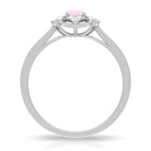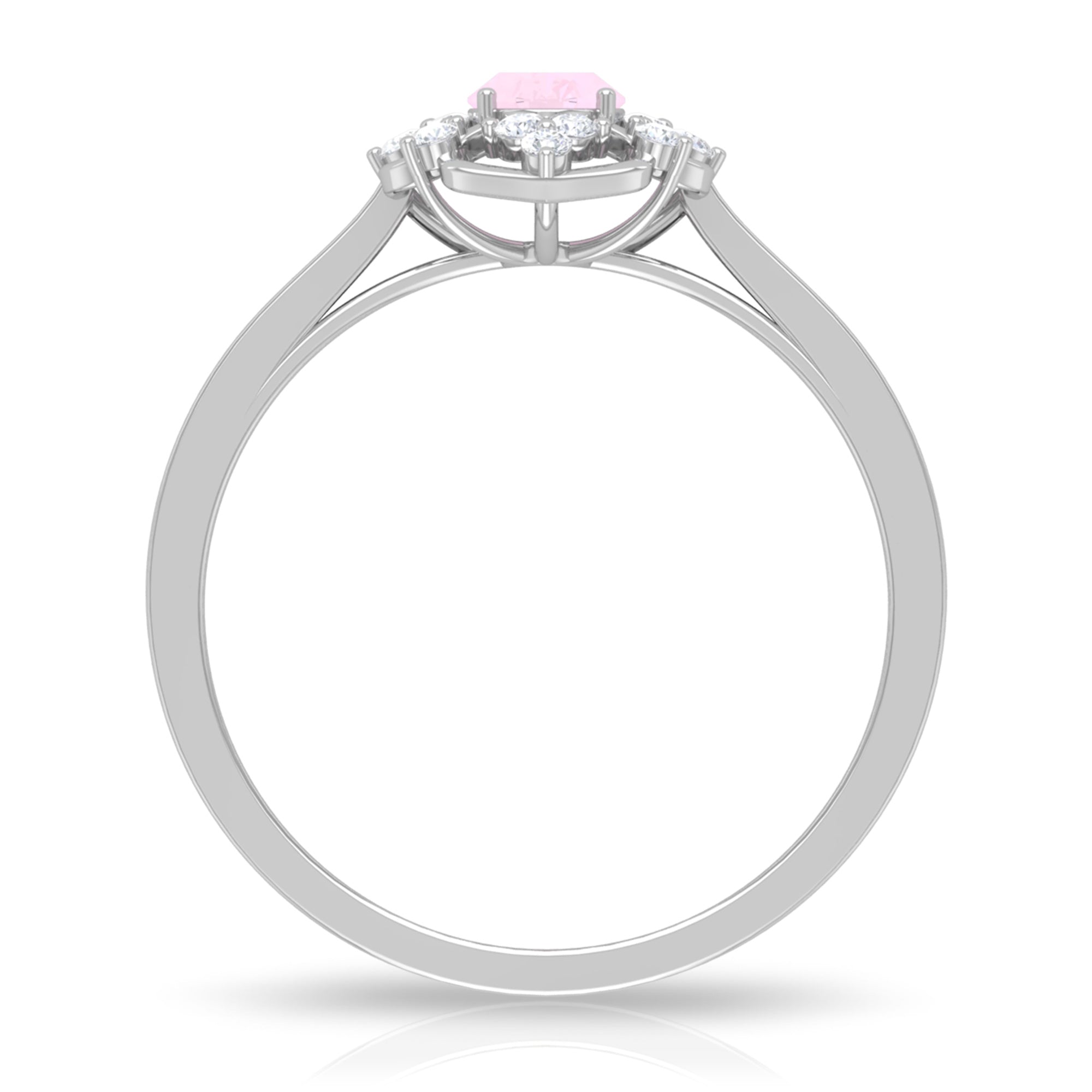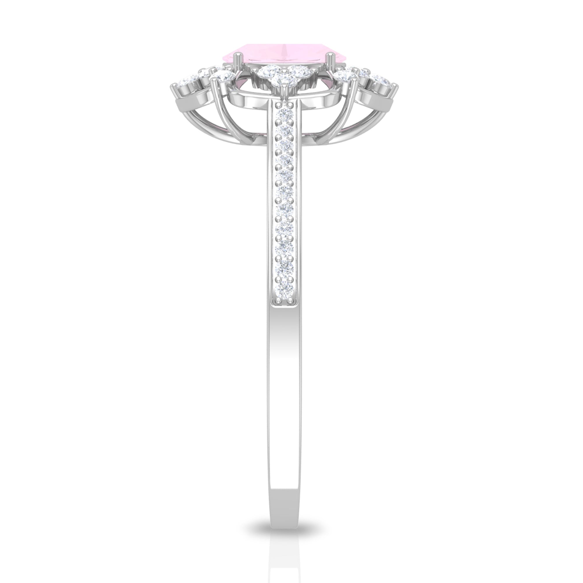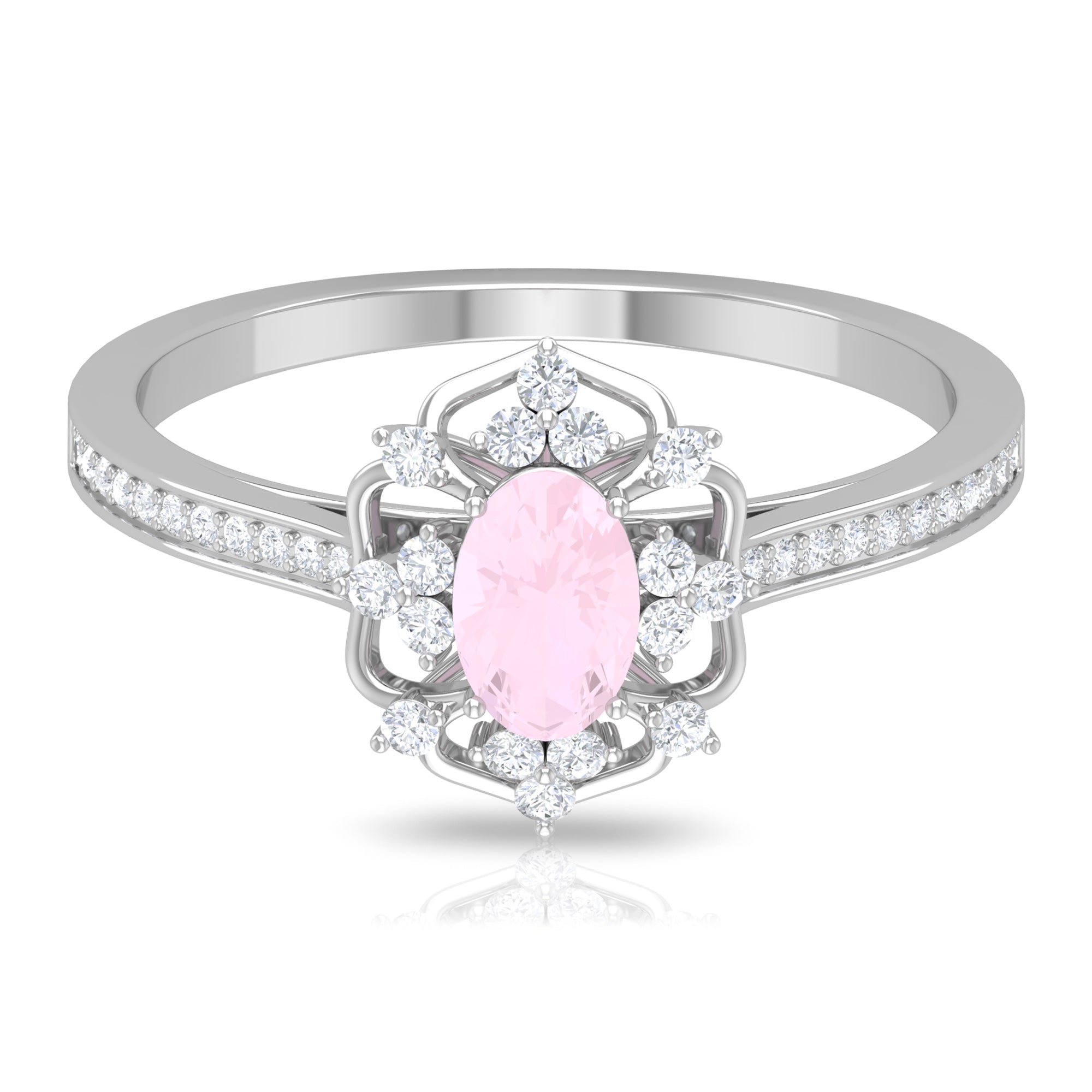 Intensify your look with this Engagement Ring is adorned with Oval Shape Rose Quartz set as a solitaire in a prong setting and Round Shape Diamond accent in a prong setting. This Estate Engagement Ring is mounted in solid gold.