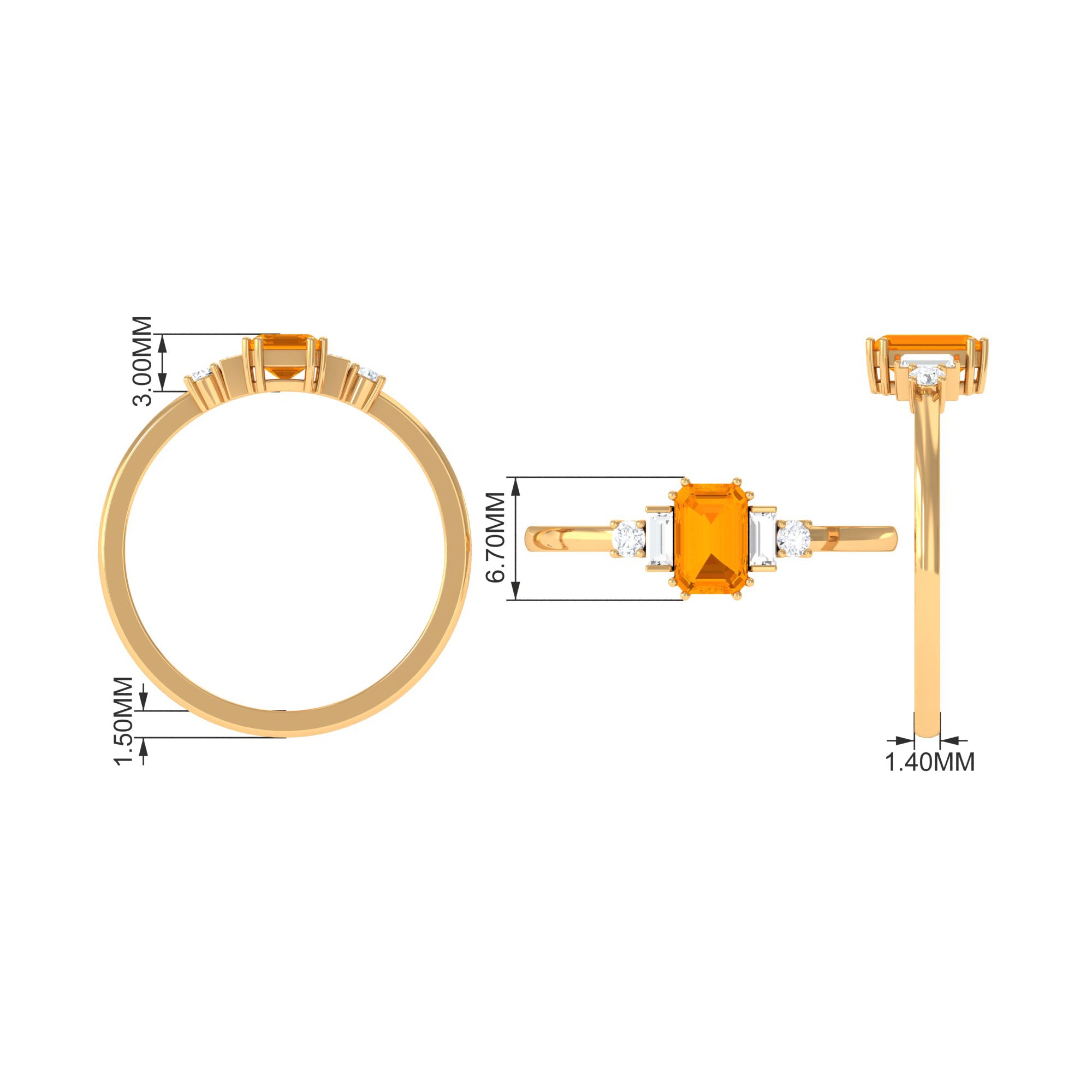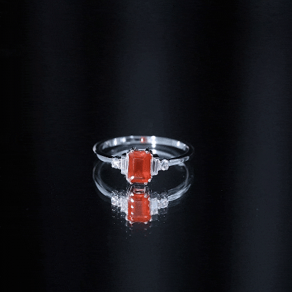 You will be able to add a captivating appeal to your look by adding a Fire Opal Engagement Ring. An Emerald Cut Fire Opal decorates the center of this Solitaire Engagement Ring. The side of the ring is studded with a Baguette and Round Diamond. A luxurious option for a special occasion, this October Birthstone Ring is made with gold metal.