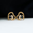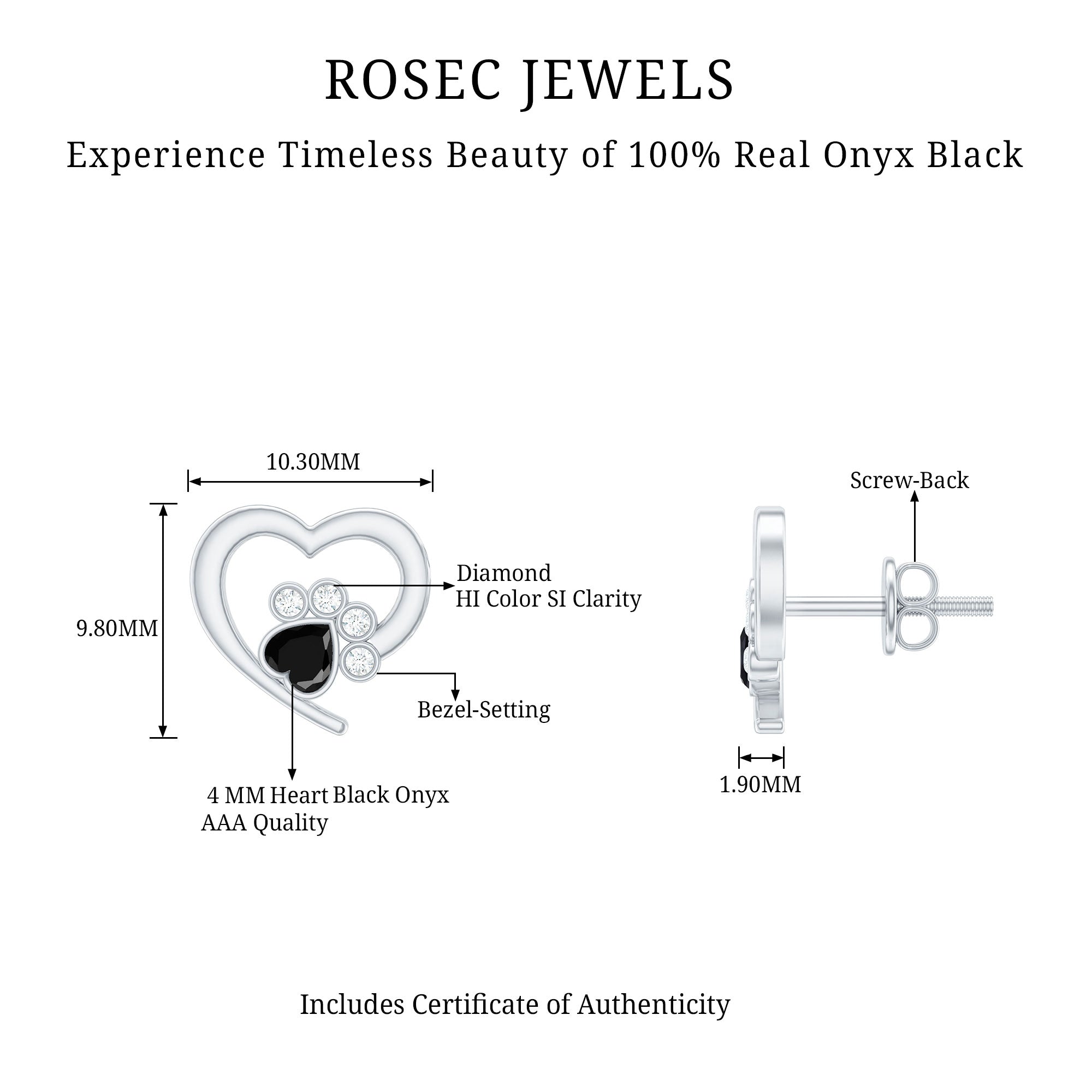 3/4 CT Heart Shape Black Onyx and Diamond Paw Stud Earrings