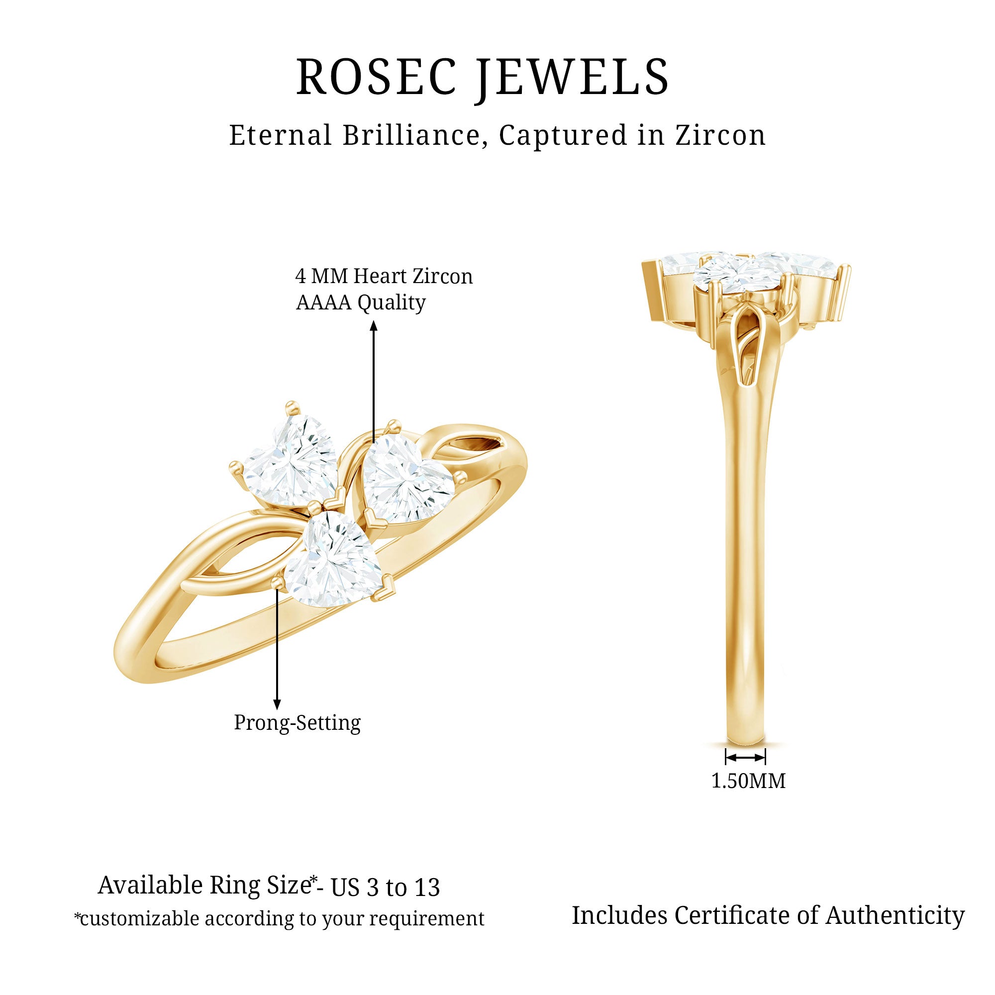 3/4 CT Heart Shape Zircon Three Stone Gold Ring