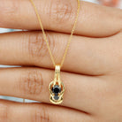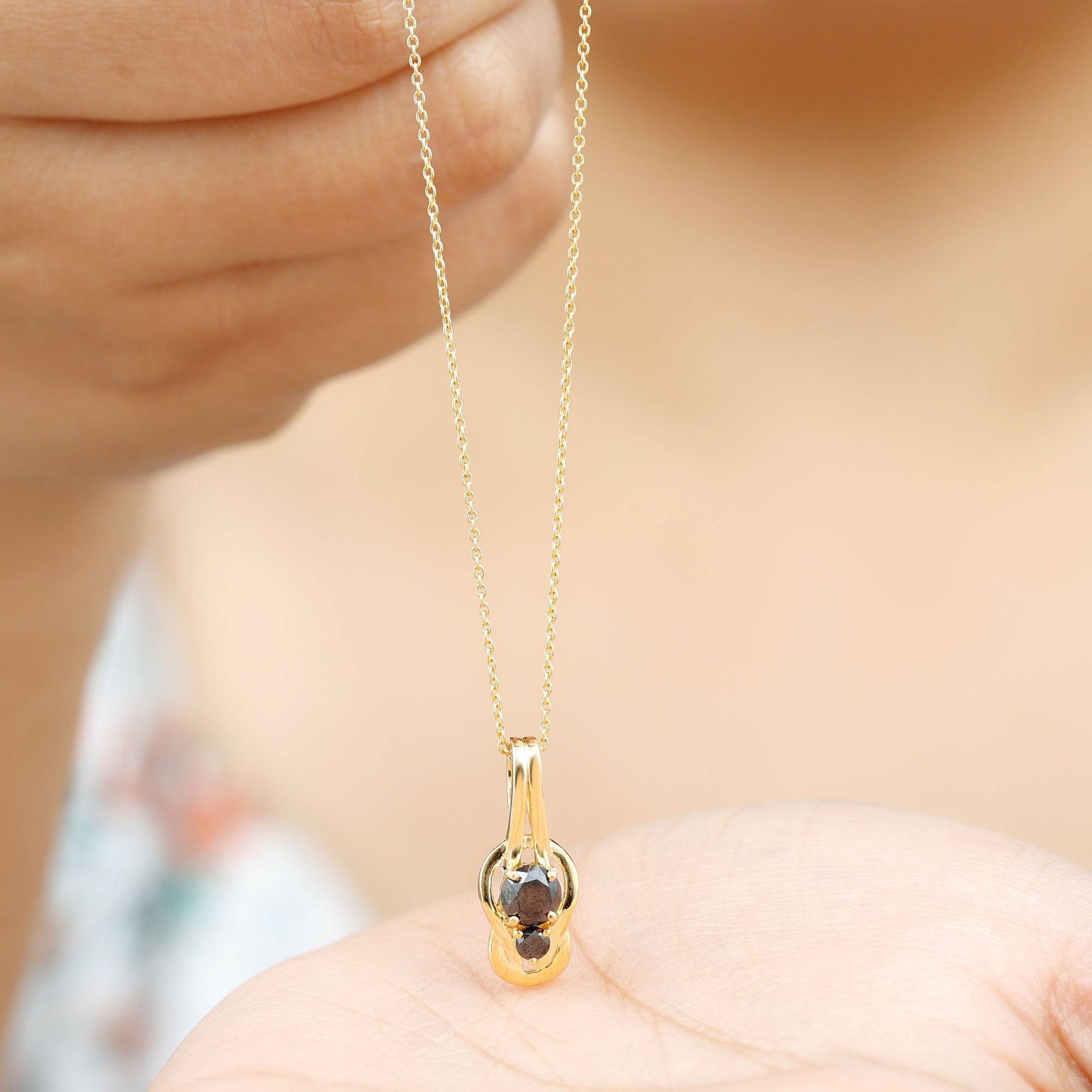 This Unique Style Infinity Knot Pendant is embellished with two Round Shape Black Diamond Gemstone is set in a Prong Setting, crafted in a Solid Gold Metal.