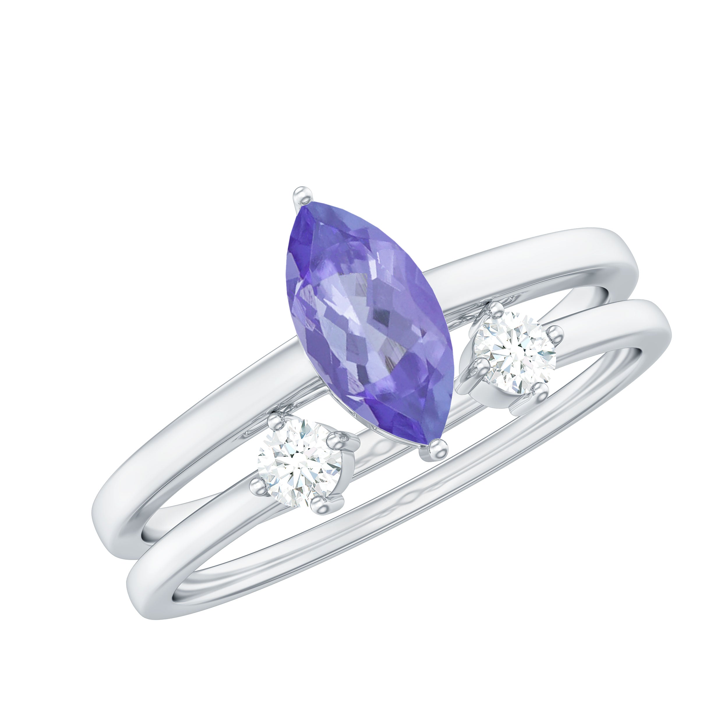 3/4 CT Marquise Cut Tanzanite Simple Solitaire Ring Set with Diamond