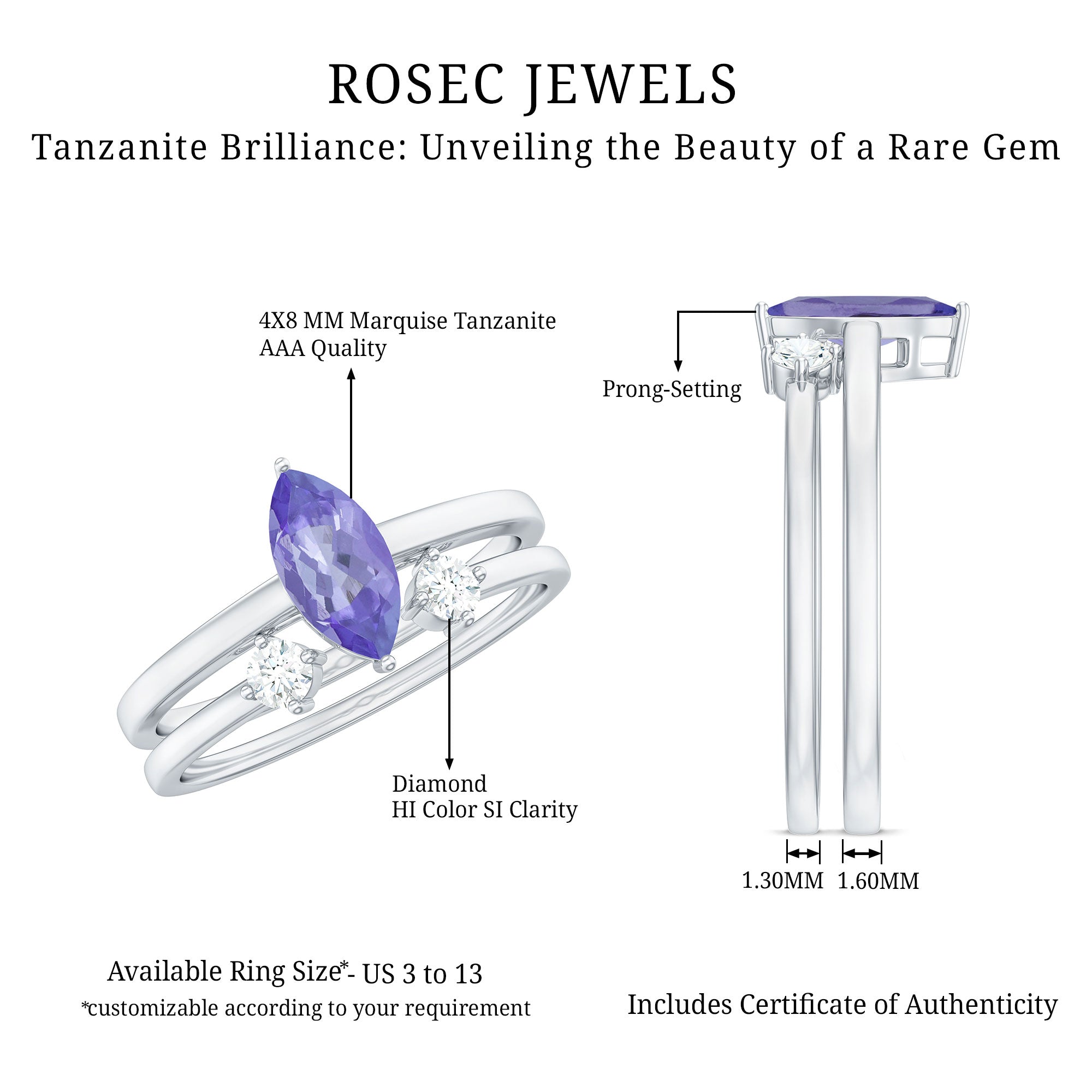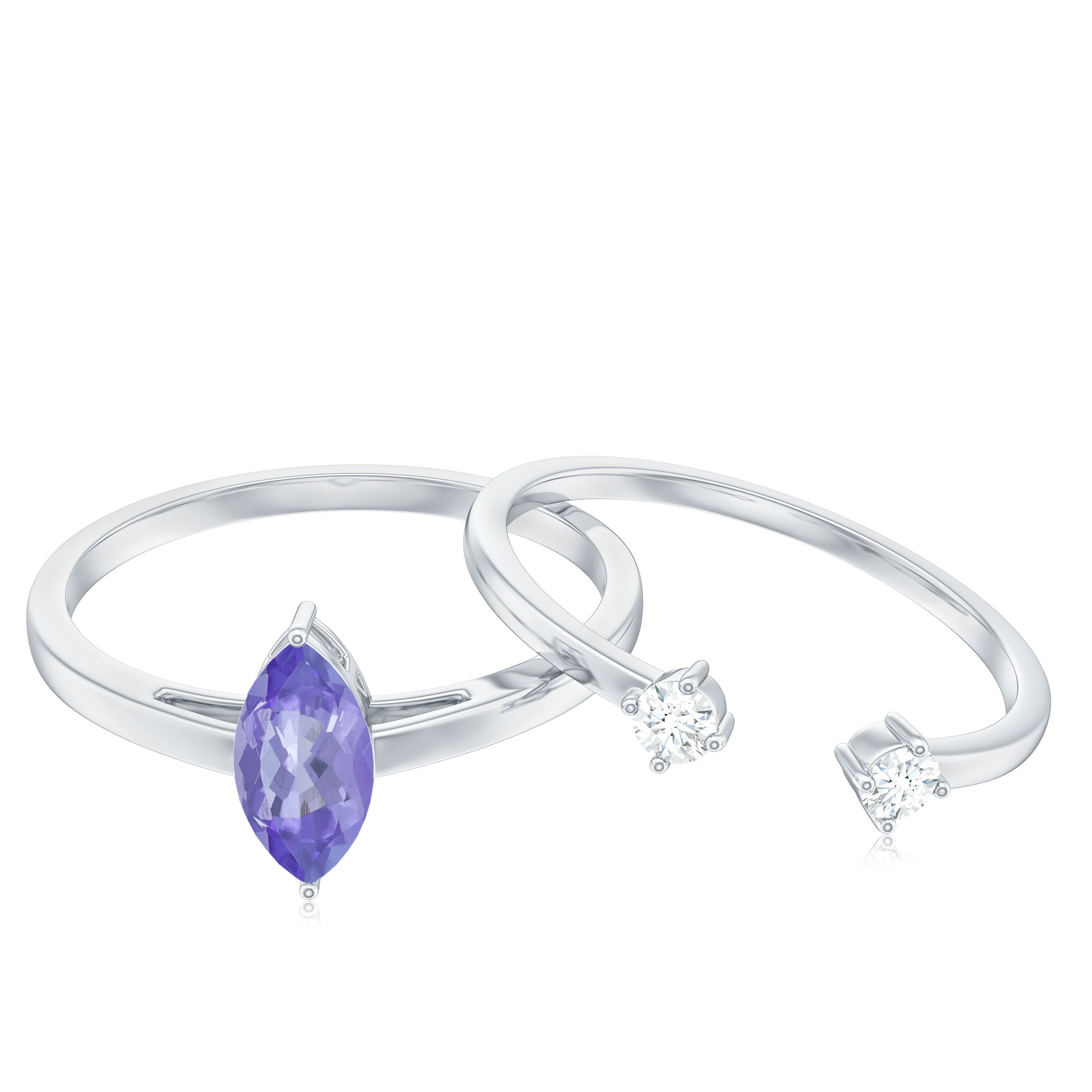 She will be over the top of the world when you present this Tanzanite Ring Set. Adorned with Marquise Cut Tanzanite in Prong Setting with Diamond on Solitaire Ring Set. Glitter her attire when you slip on this Simple Tanzanite Ring Set.