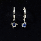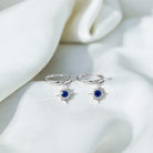 3/4 CT Milgrain Bezel Set Blue Sapphire Sunburst Drop Hoop Earrings for Women