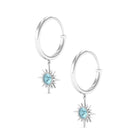 3/4 CT Milgrain Bezel Set Sky Blue Topaz Sunburst Drop Hoop Earrings