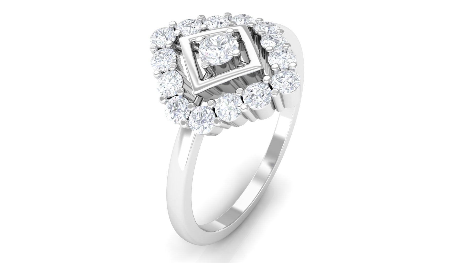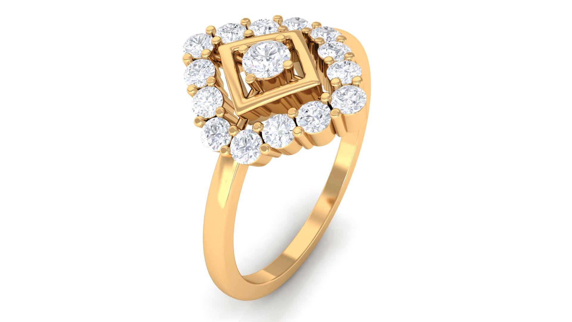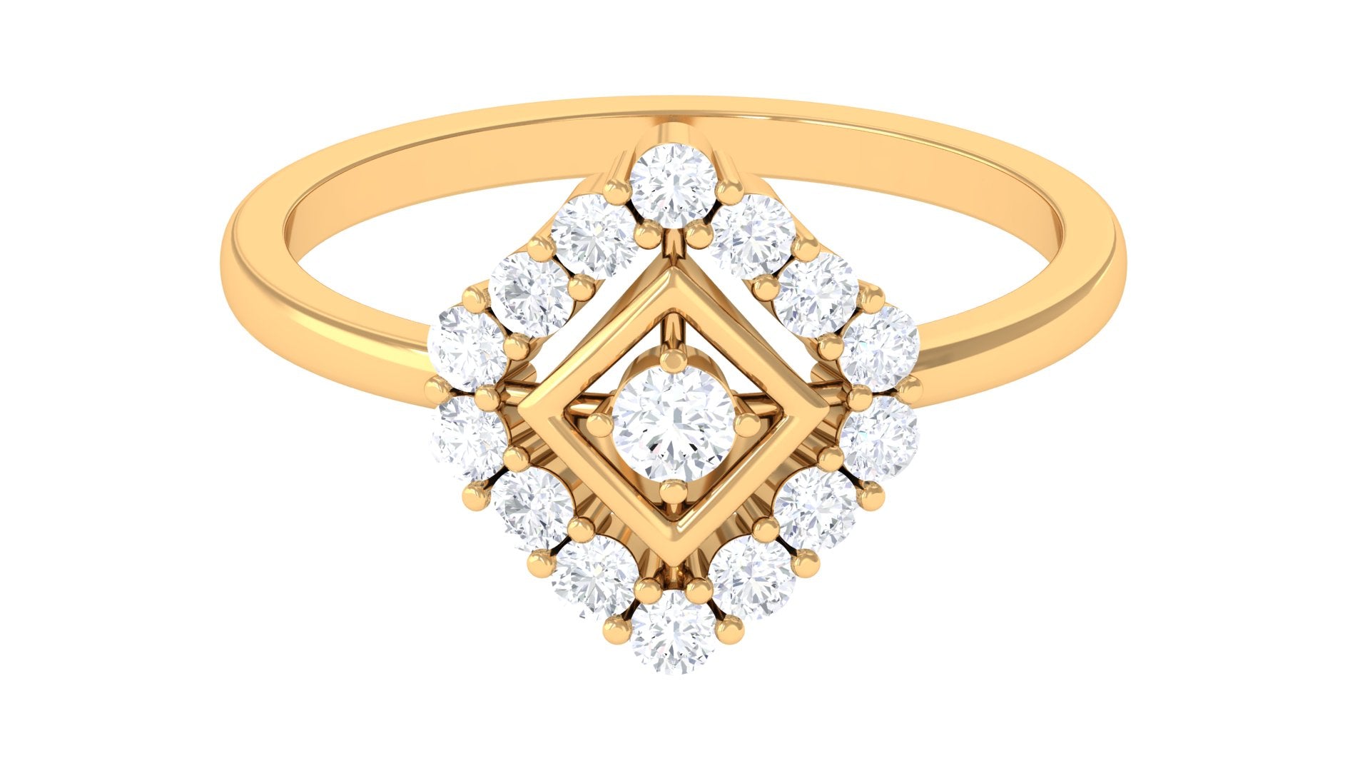 Propose to her with this lovely Promise Ring. At the center, Round Cut Diamond set in Prong Setting. Surrounded by a frame set with shimmering Round Diamonds, this ring truly becomes breath-taking. Polished to a brilliant shine, shell adore this ring as much as she does you.