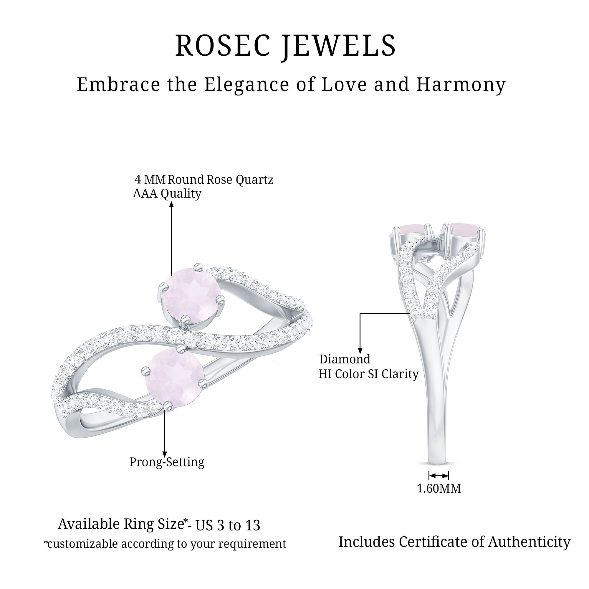 3/4 CT Minimal Rose Quartz and Diamond Engagement Ring