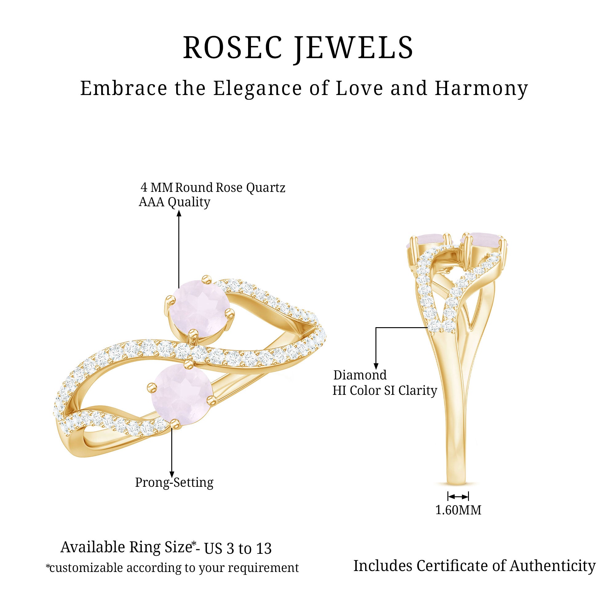 Flaunt Your Style with this Minimal Engagement Ring is crafted in solid gold which is embellished with Round Shape Rose Quartz and Diamond in a prong setting. This Gold Engagement Ring is available in solid gold.